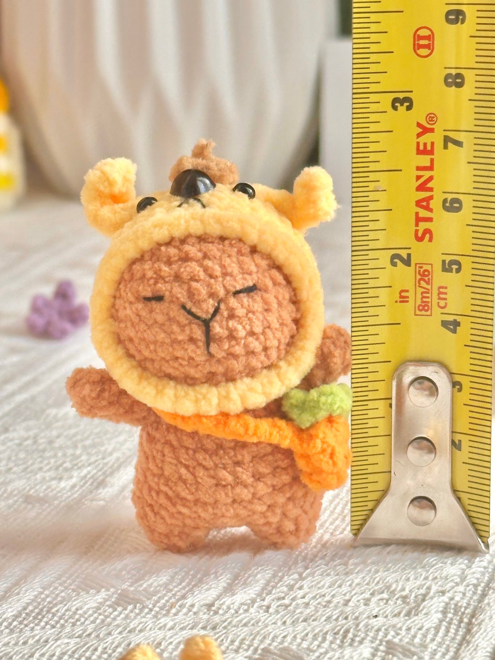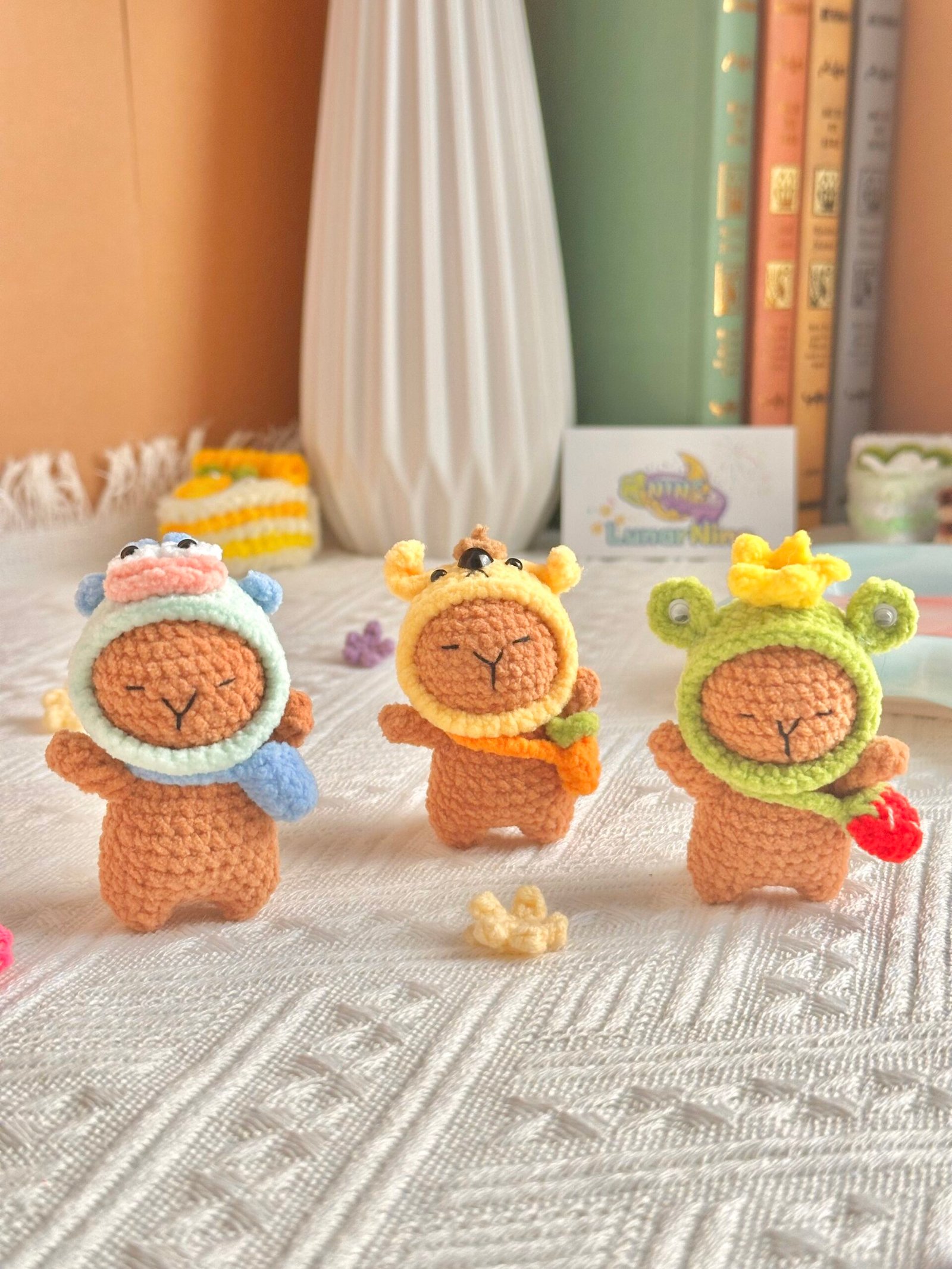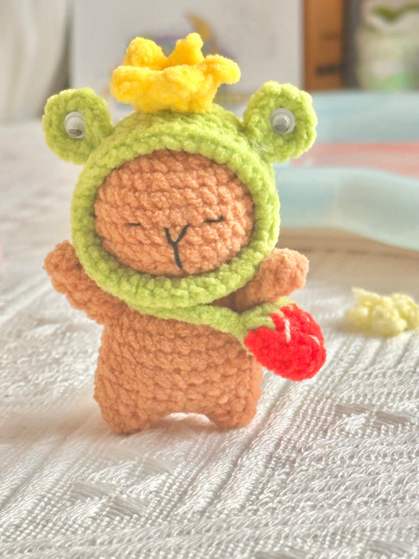 Say hello to this charming capybara with a twist — this adorable handmade doll carries a tiny turtle on its back! Lovingly crocheted with soft yarn and stuffed with cotton, this unique design brings double the cuteness in one cuddly piece. It’s the perfect gift for animal lovers or a delightful addition to any crochet collection.