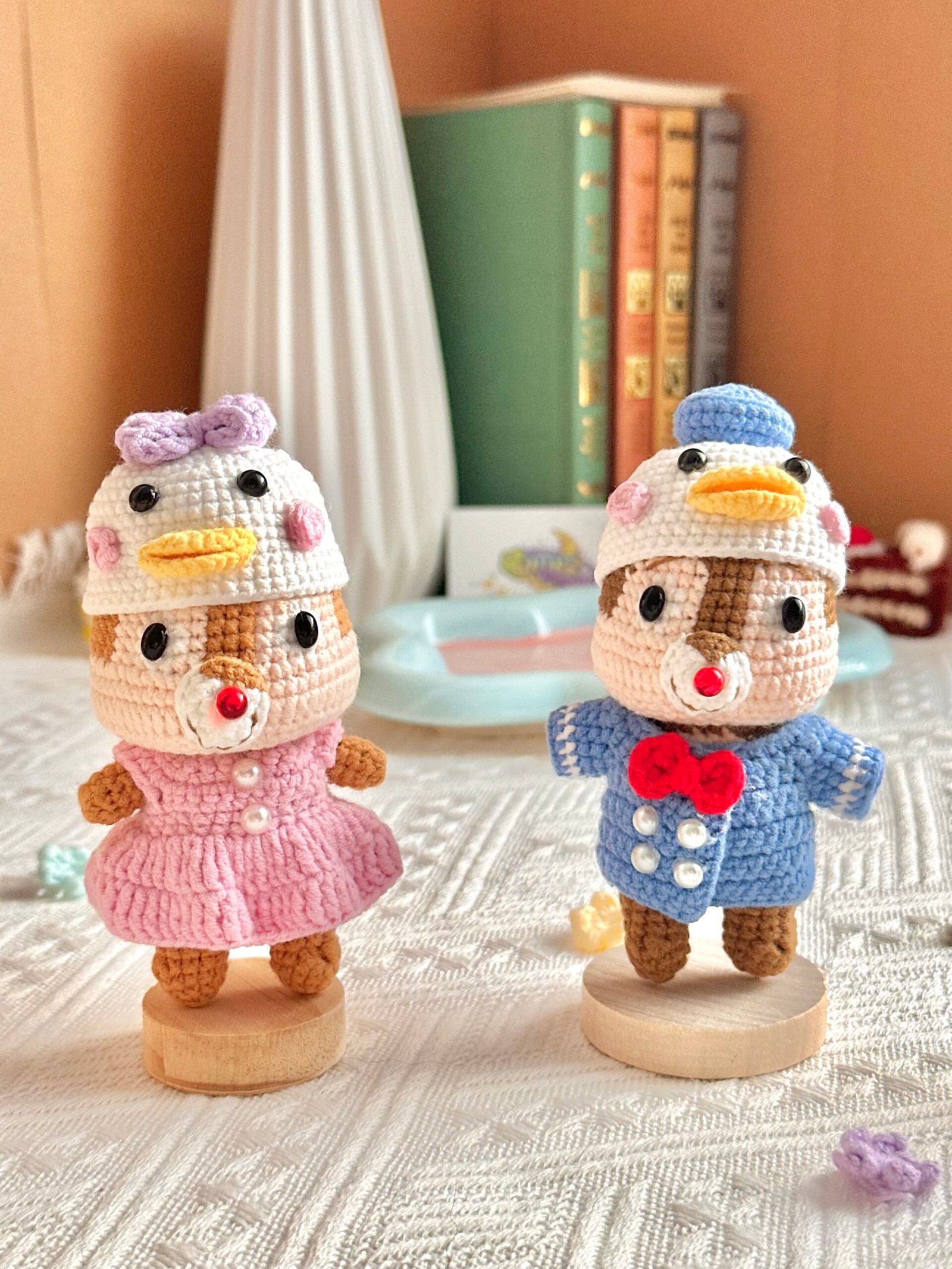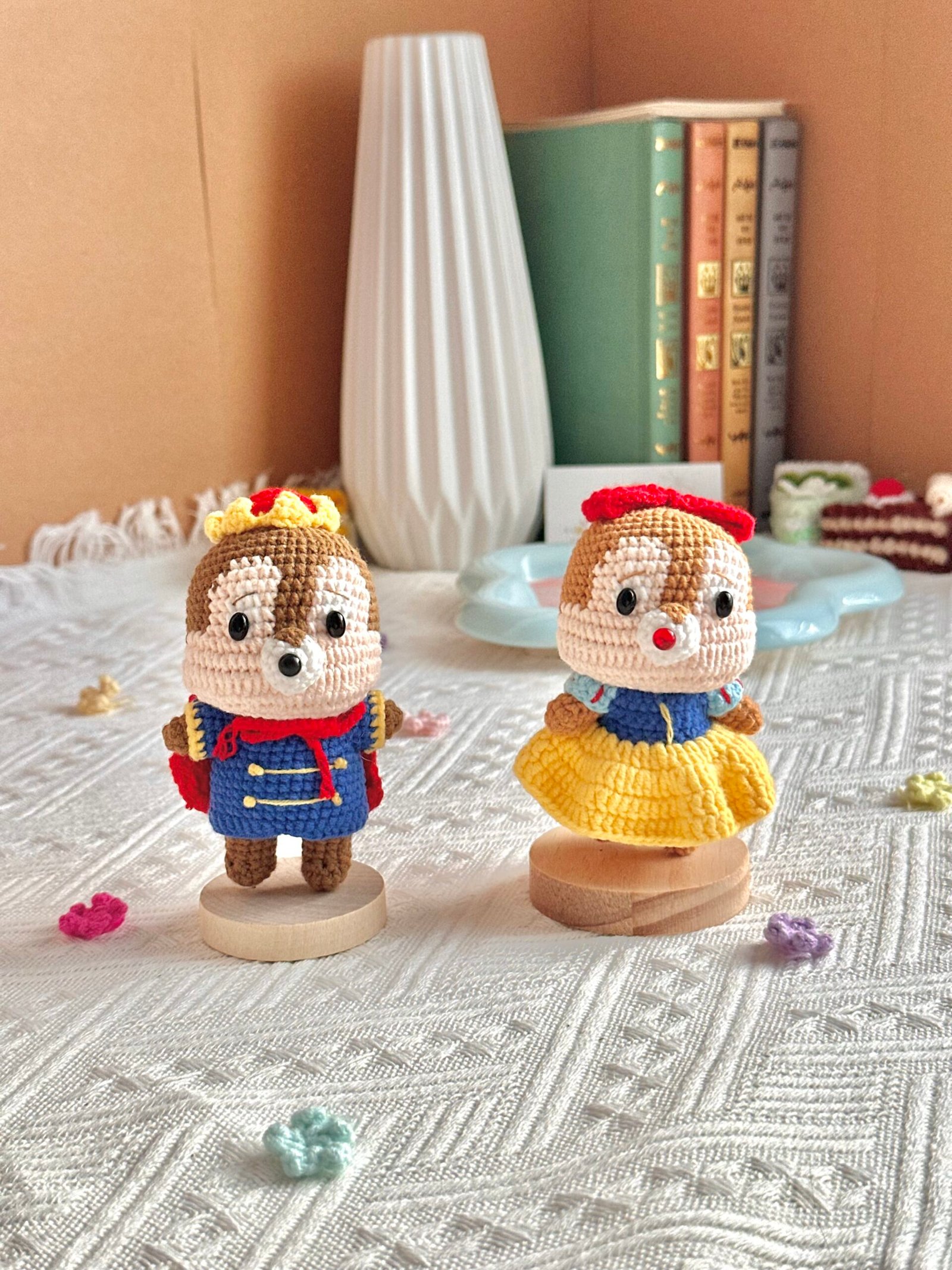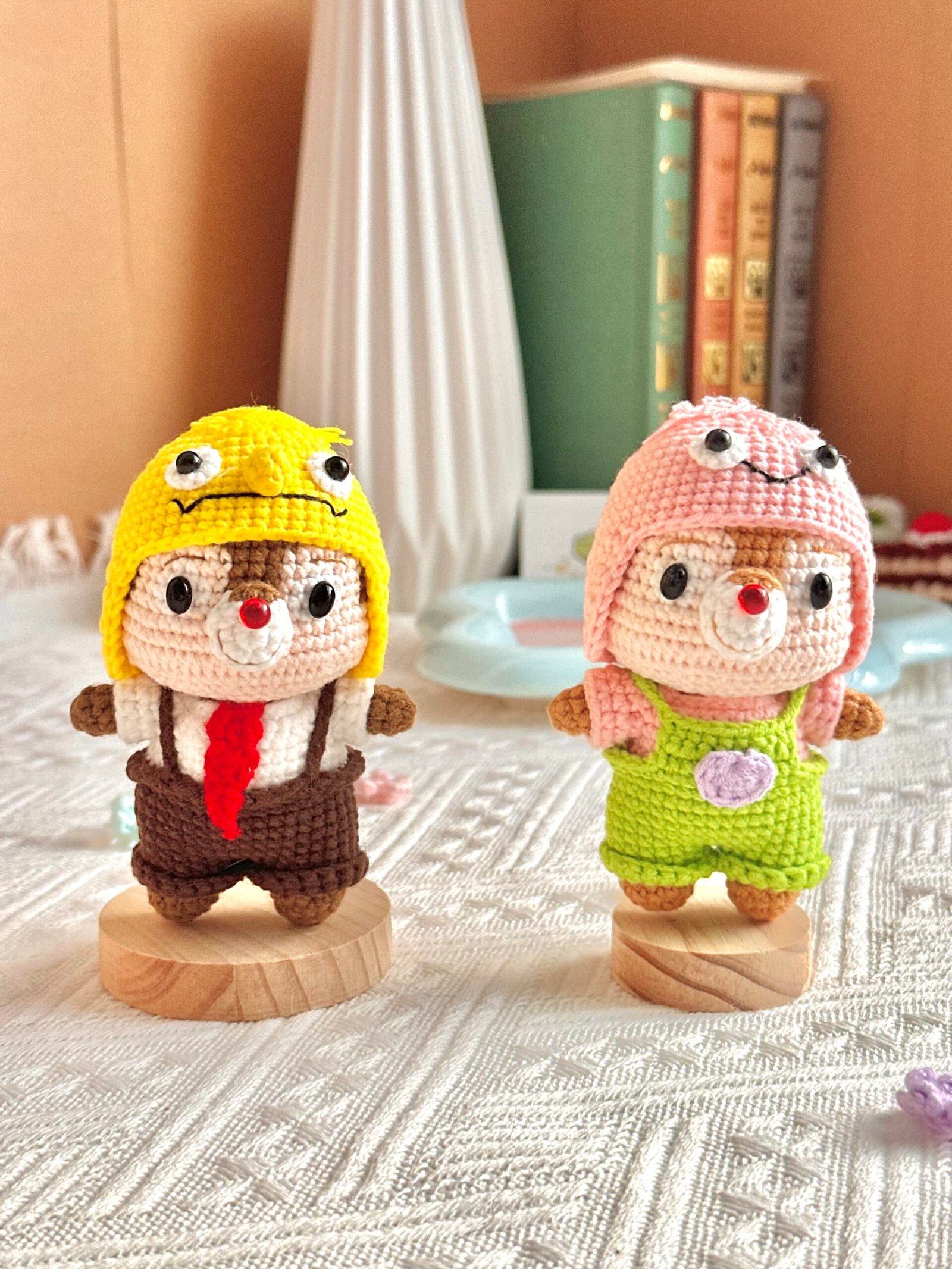 Fall in love with these irresistibly cute Chip and Dale-style crochet dolls, dressed in fun and playful themes! Whether it’s the underwater fun of SpongeBob & Patrick, the classic charm of a royal Prince & Princess, or the timeless magic of Donald & Daisy, each pair is handcrafted with soft yarn and filled with plush cotton for a cuddly finish.