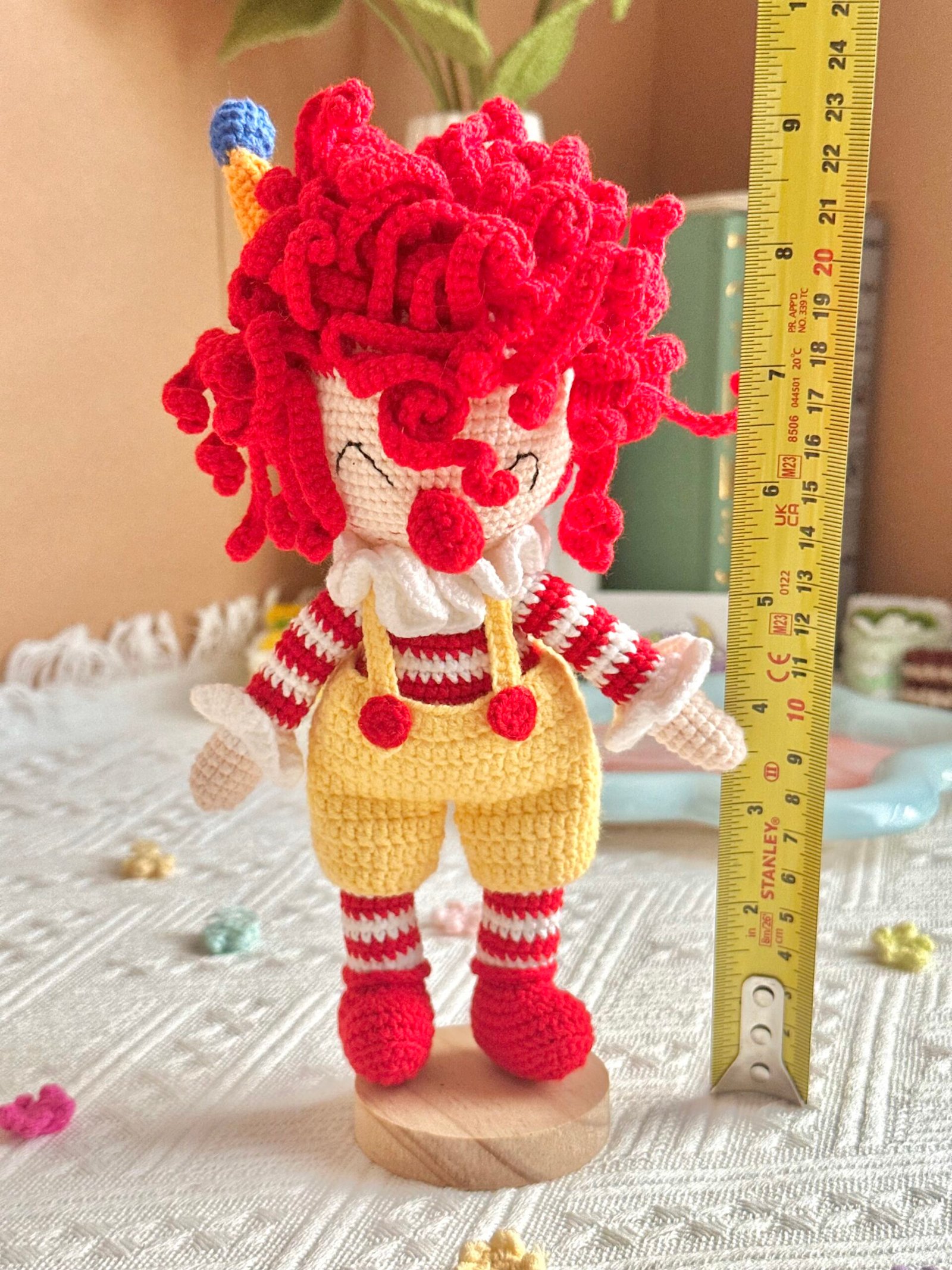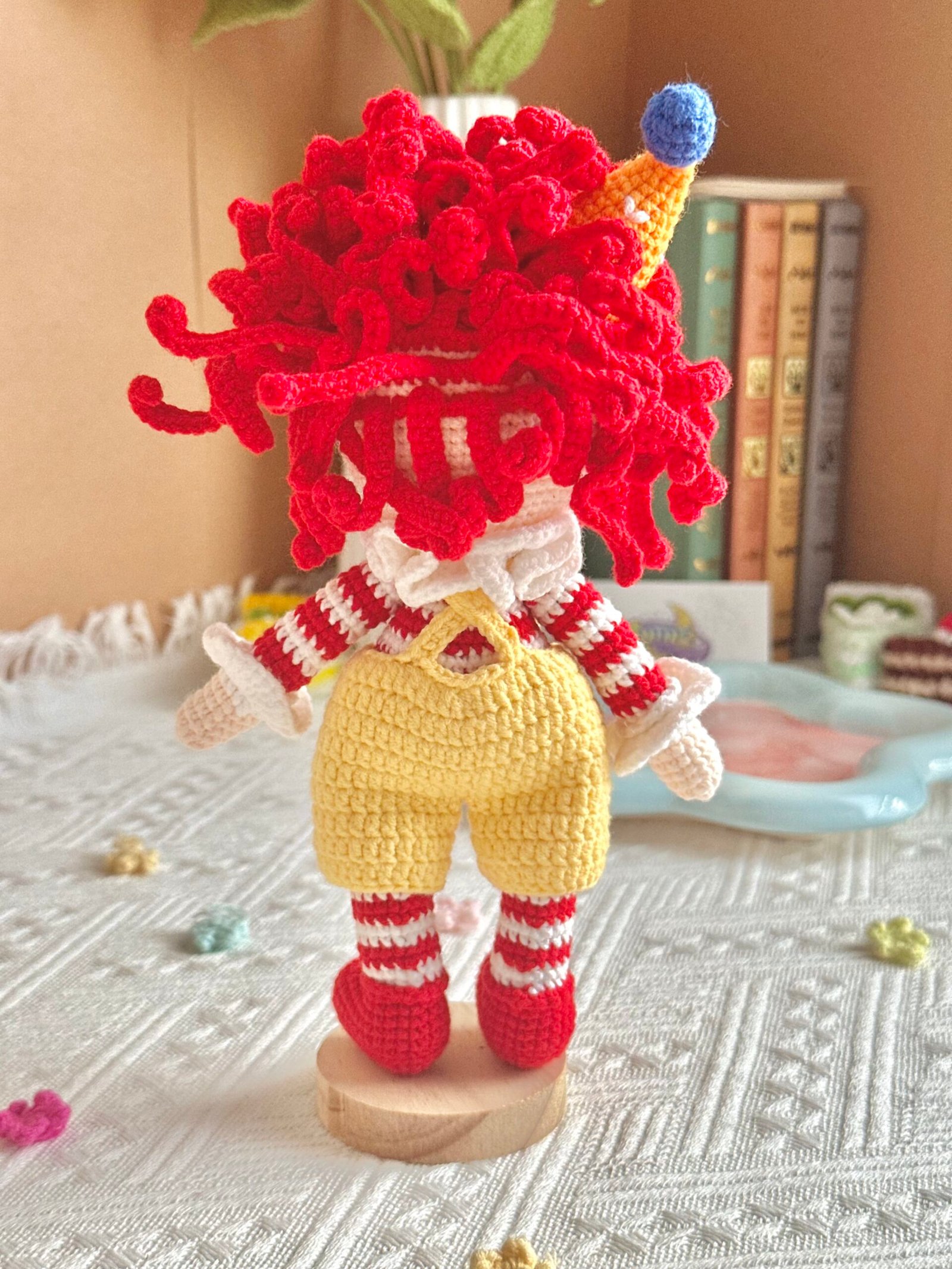 Bring home the fun and whimsy of the Crochet Clown McDonald’s doll — a handmade tribute to the beloved fast-food mascot! With his signature red wig, bright yellow outfit, and cheery face, this crochet doll captures the playful spirit of the classic character that has delighted generations.
