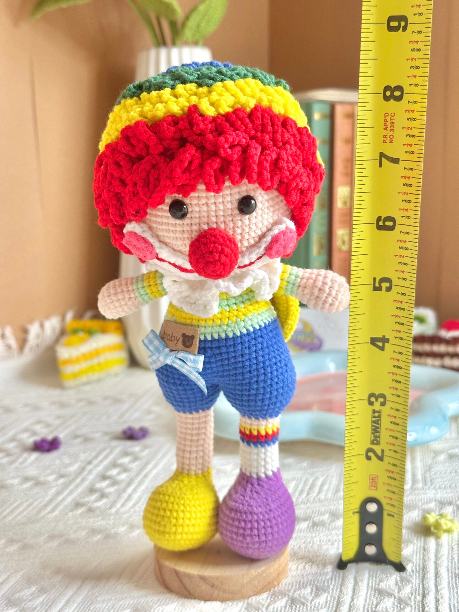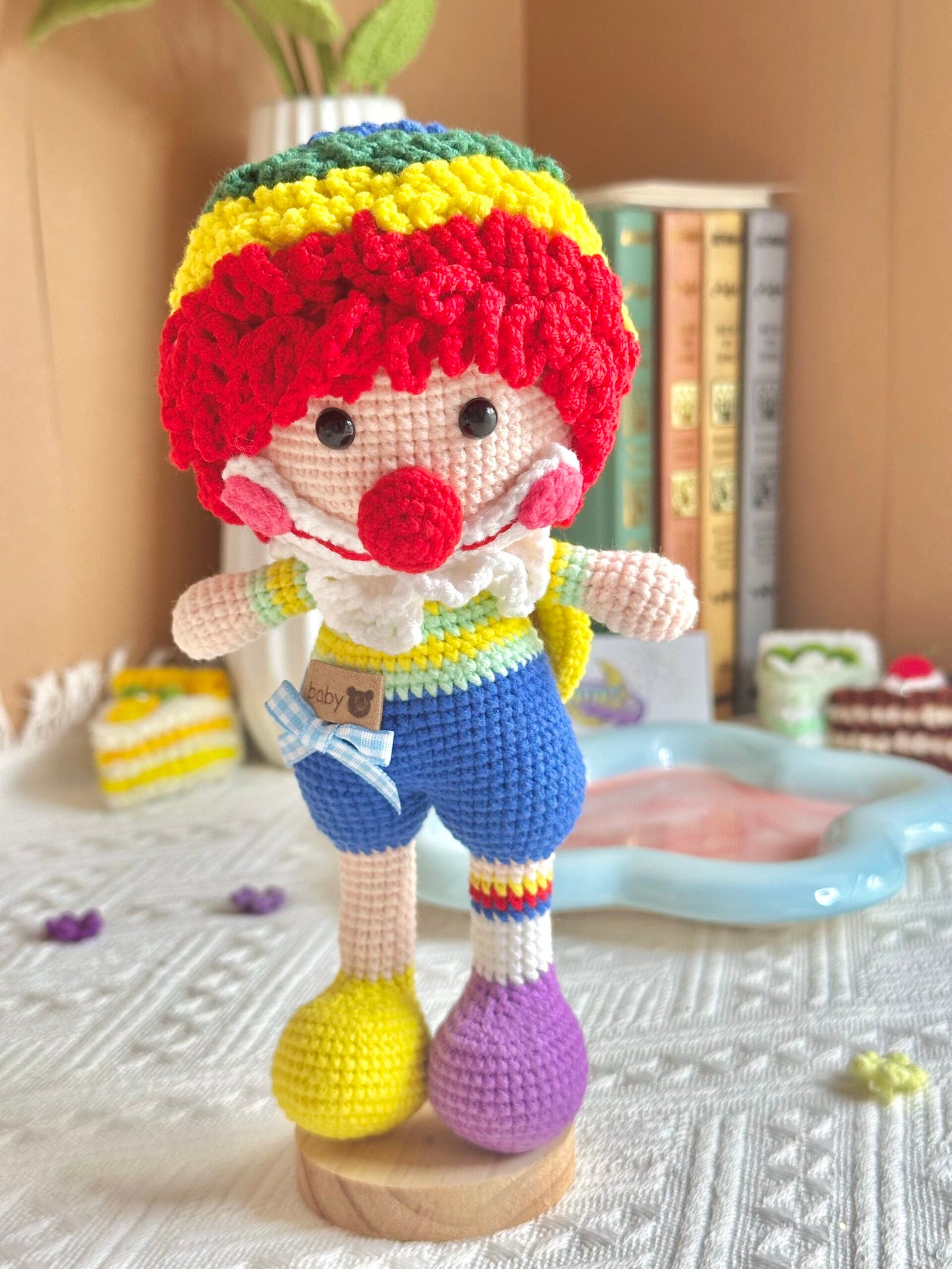 Each clown is meticulously crocheted by hand, ensuring every detail is full of personality and one-of-a-kind character.