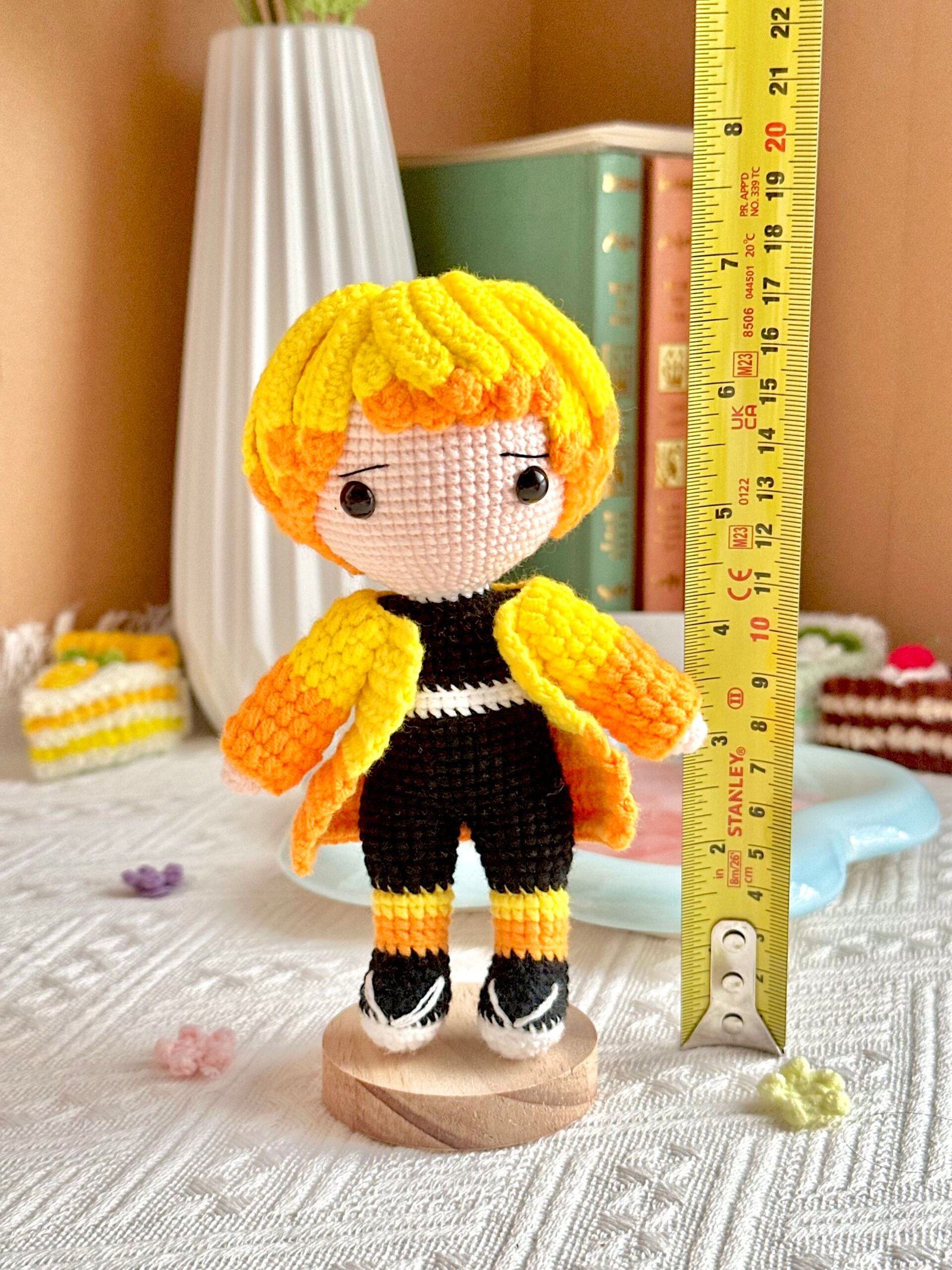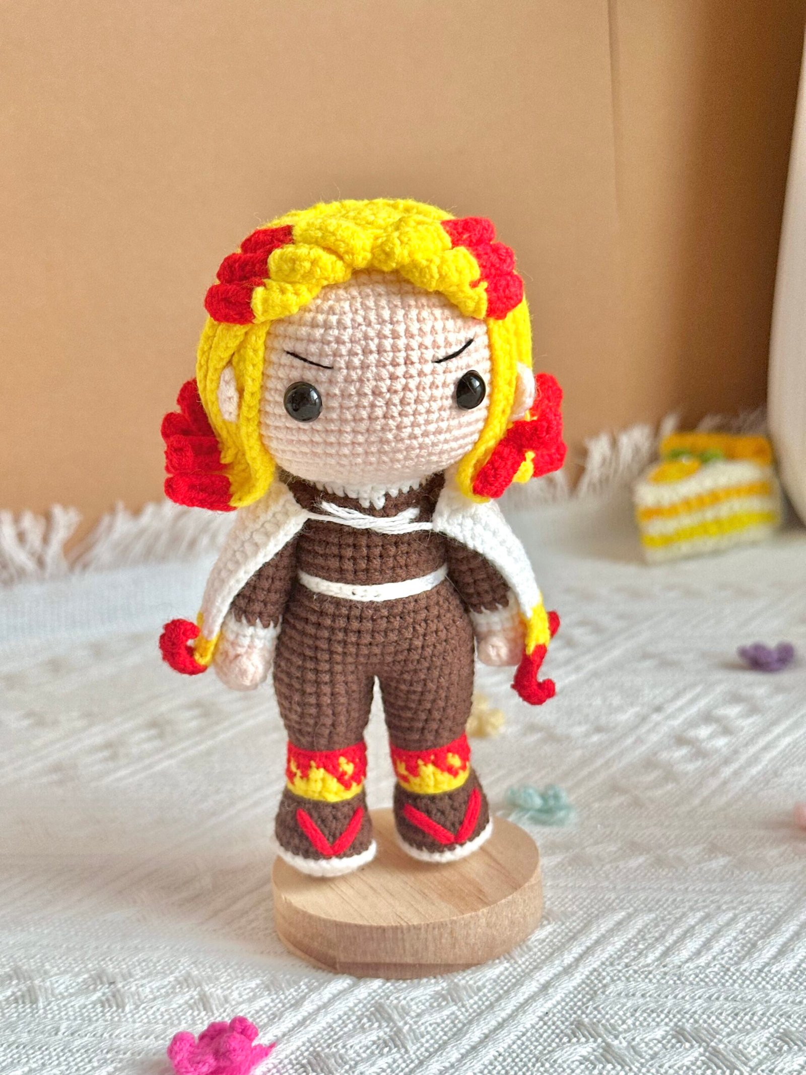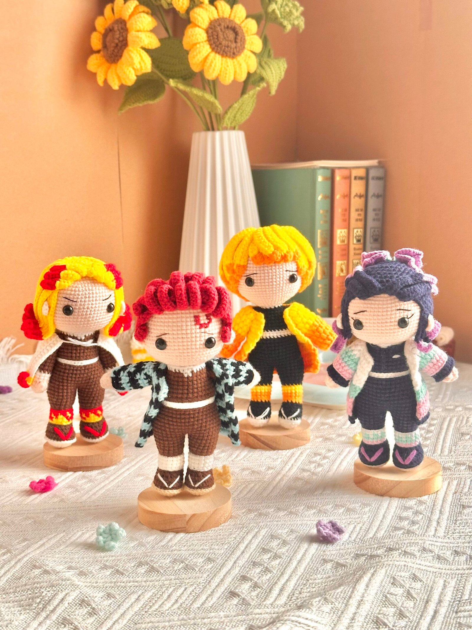 Step into the world of Demon Slayer with this vibrant set of large, handcrafted standing dolls! Featuring iconic characters — from Tanjiro’s determined gaze to Nezuko’s sweet expression and Kyojuro’s fiery presence — each piece is made entirely by hand with soft yarn, fine details, and plush cotton filling.
