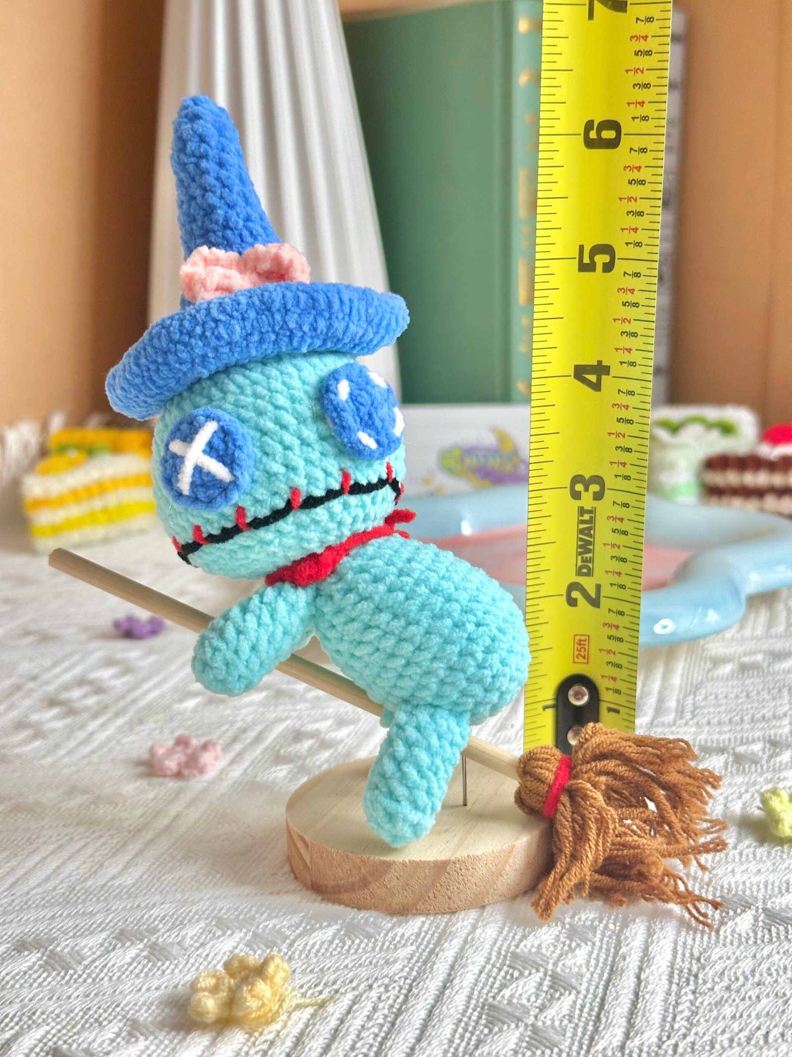 Meet Flying Scrump, a handmade version of Lilo’s beloved ragdoll with an extra magical twist — tiny wings! With its mismatched button eye, stitched smile, and soft little wings, this crochet doll brings a dash of quirky charm and heartfelt nostalgia. It’s perfect for fans of whimsical characters and unique, handcrafted collectibles.