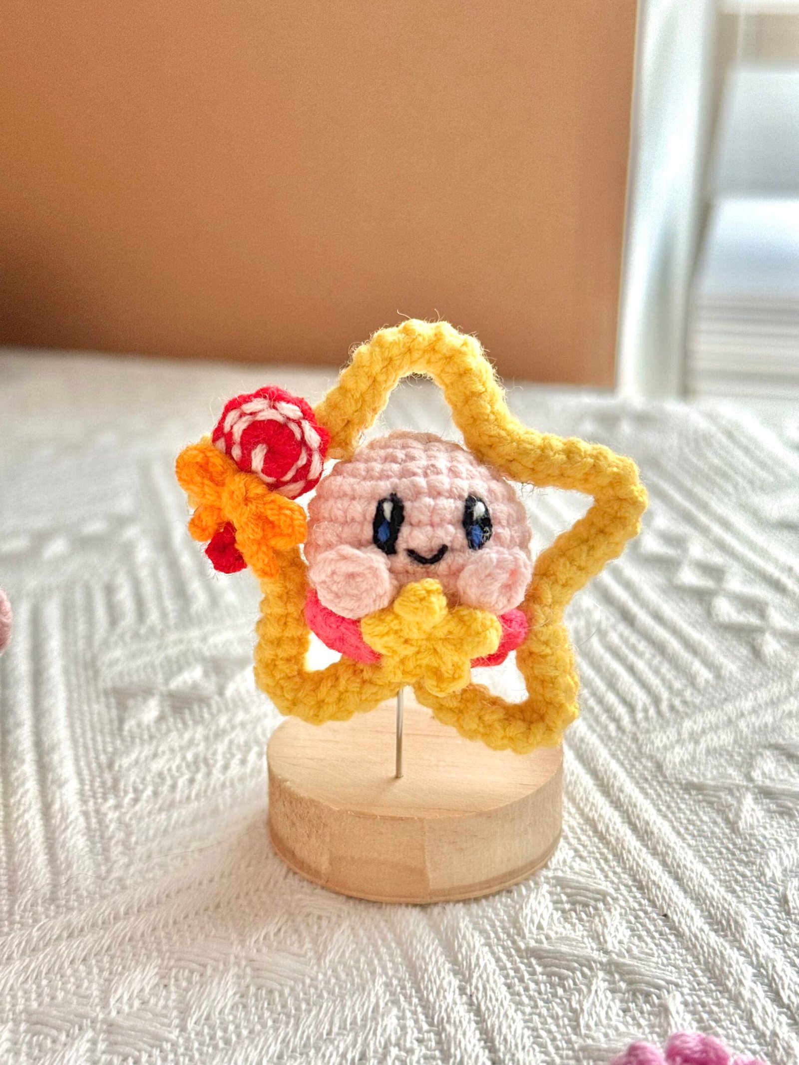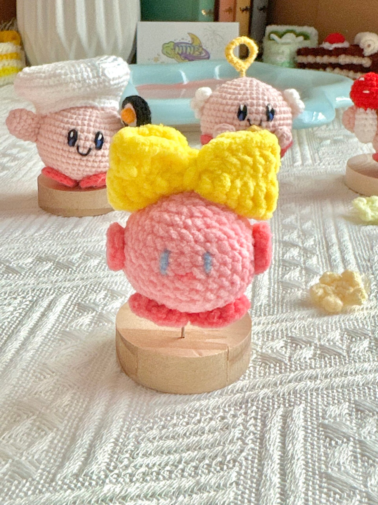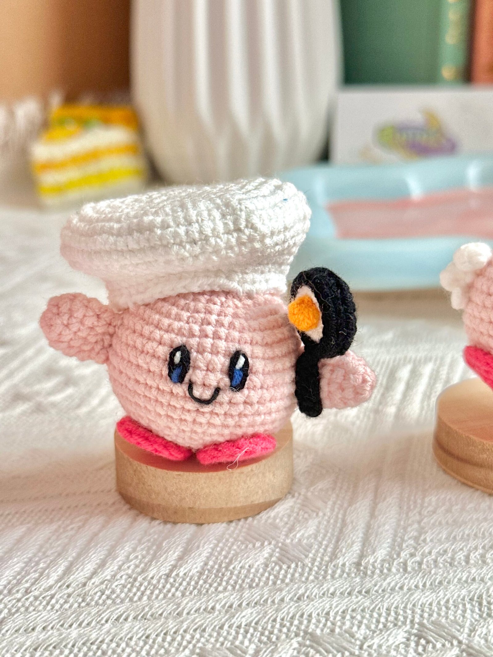 Dive into the adorable world of Kirby with this handcrafted crochet set featuring multiple fun and creative designs! From a chef’s hat to angel wings, each Kirby is styled with a unique twist while still capturing the lovable roundness of the iconic pink hero. Made entirely by hand using soft yarn and premium cotton stuffing, every doll in this set is full of charm, color, and personality.