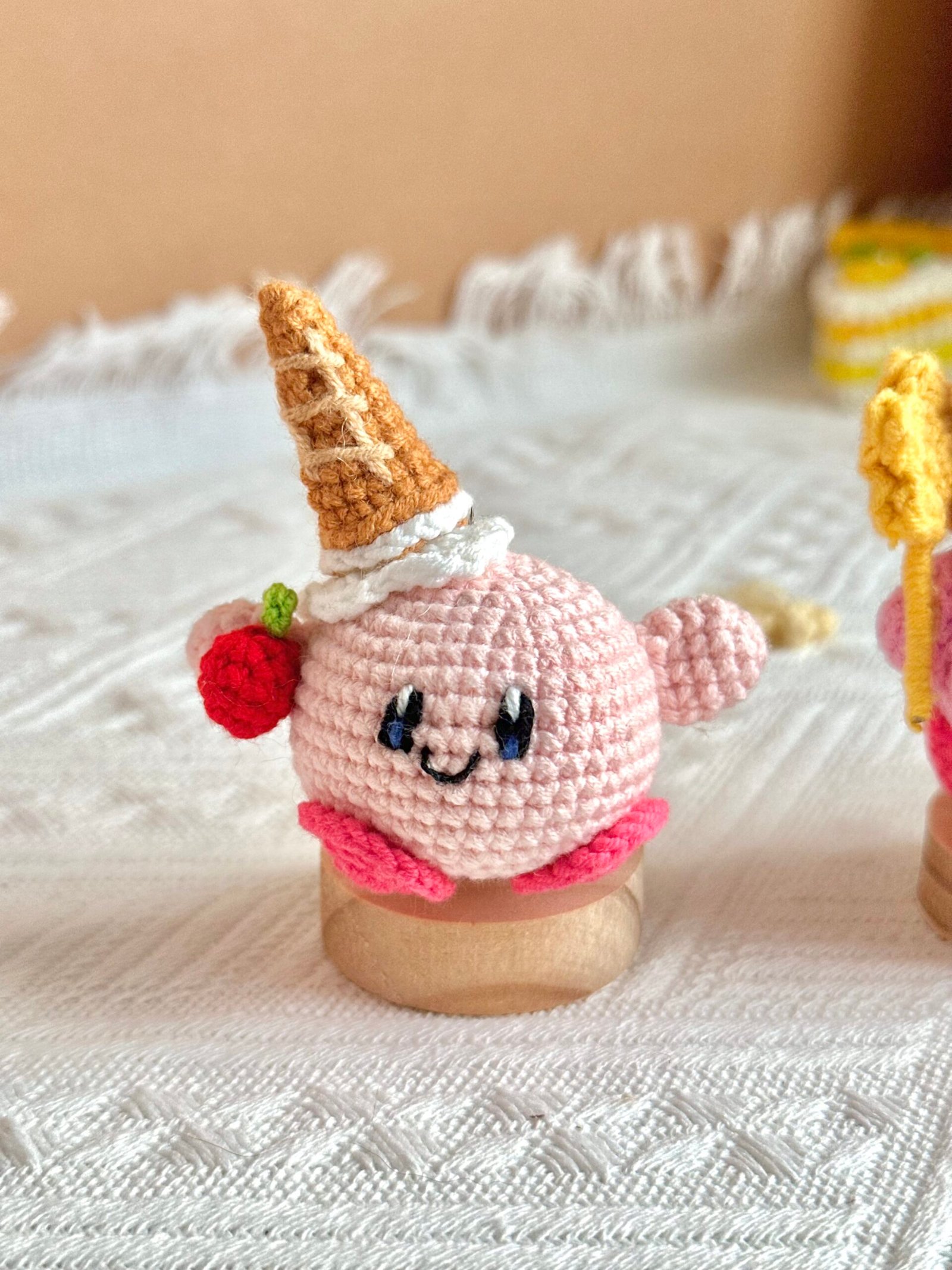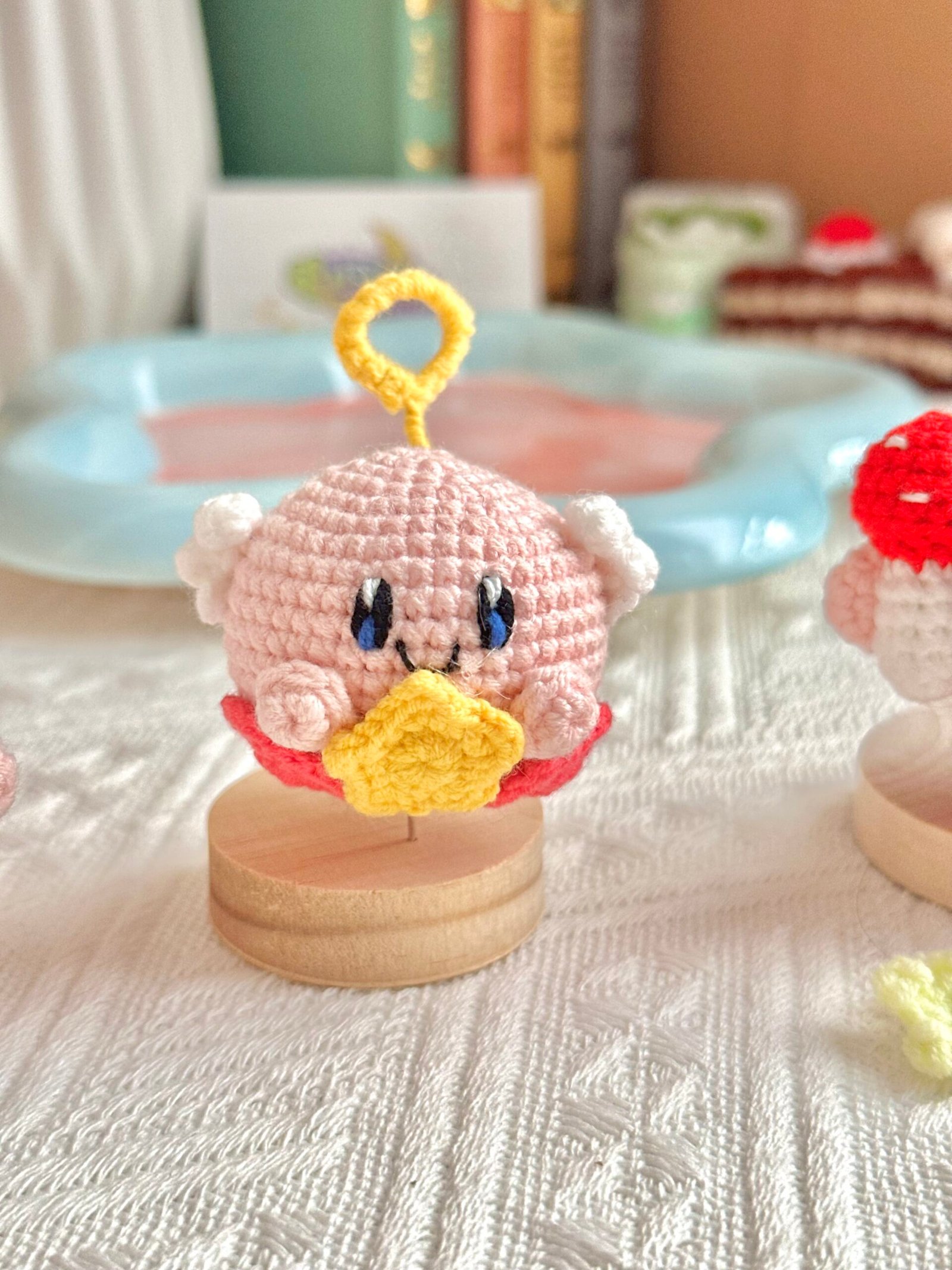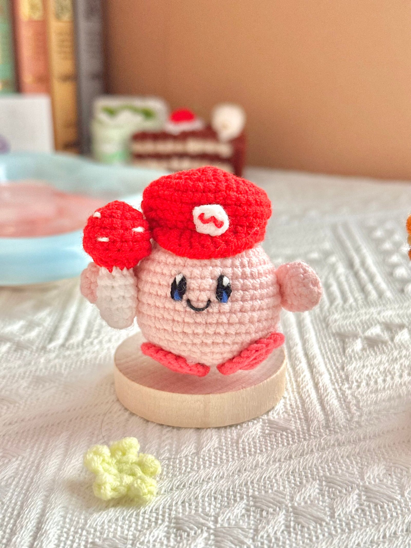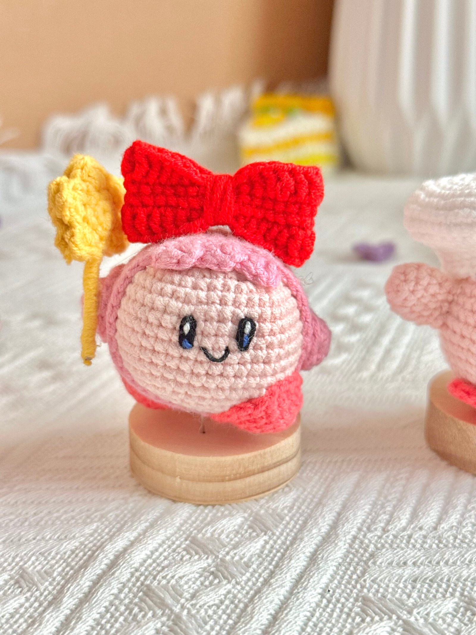 Dive into the adorable world of Kirby with this handcrafted crochet set featuring multiple fun and creative designs! From a chef’s hat to angel wings, each Kirby is styled with a unique twist while still capturing the lovable roundness of the iconic pink hero. Made entirely by hand using soft yarn and premium cotton stuffing, every doll in this set is full of charm, color, and personality.