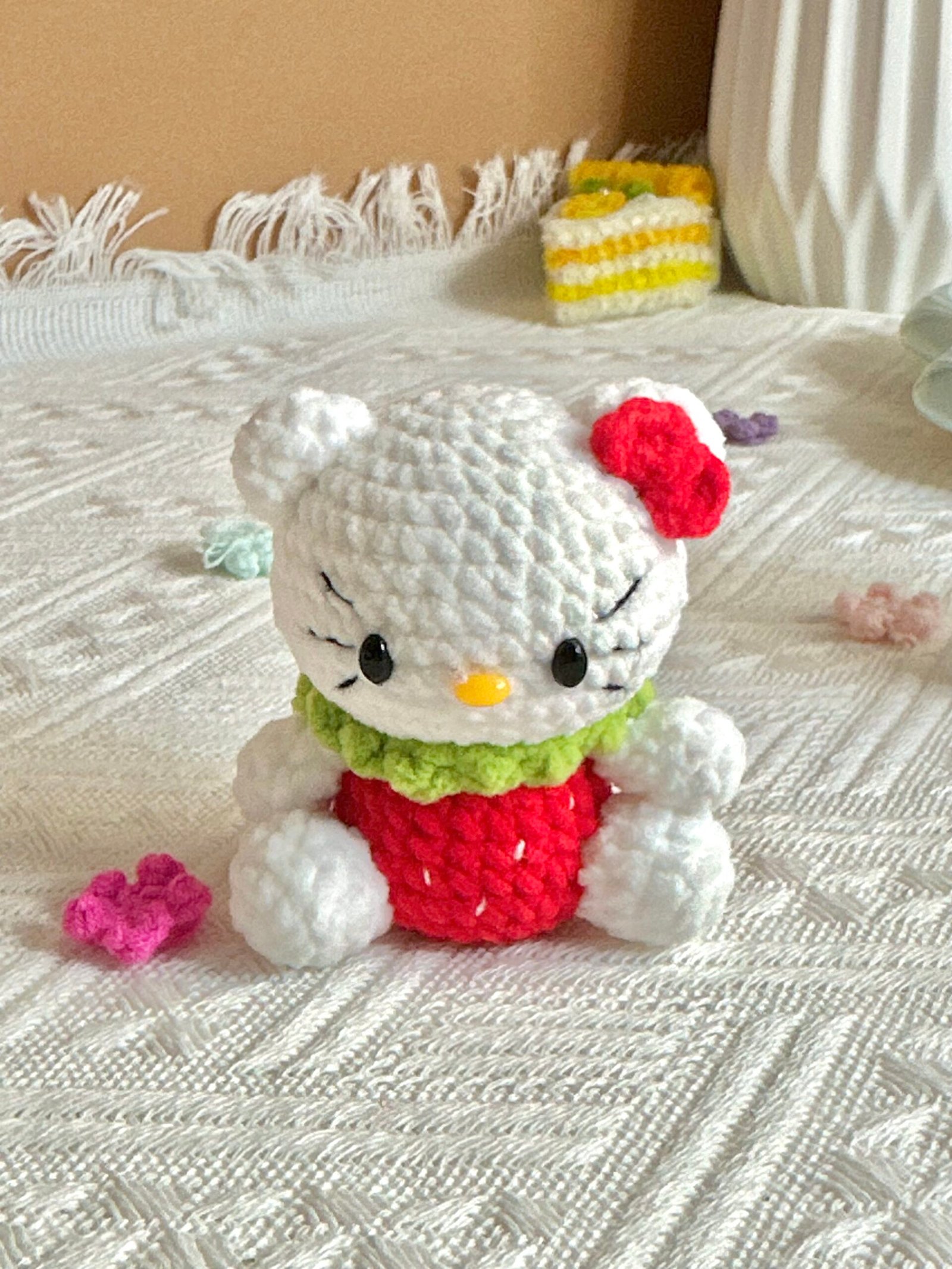 Kitty 1 is a sweet and soft crochet doll inspired by the iconic cuteness of Hello Kitty. From her signature bow to her gentle expression, every detail is lovingly handmade using cozy yarn and plush cotton stuffing. This doll is perfect for collectors, kawaii lovers, or as a thoughtful gift for someone special.