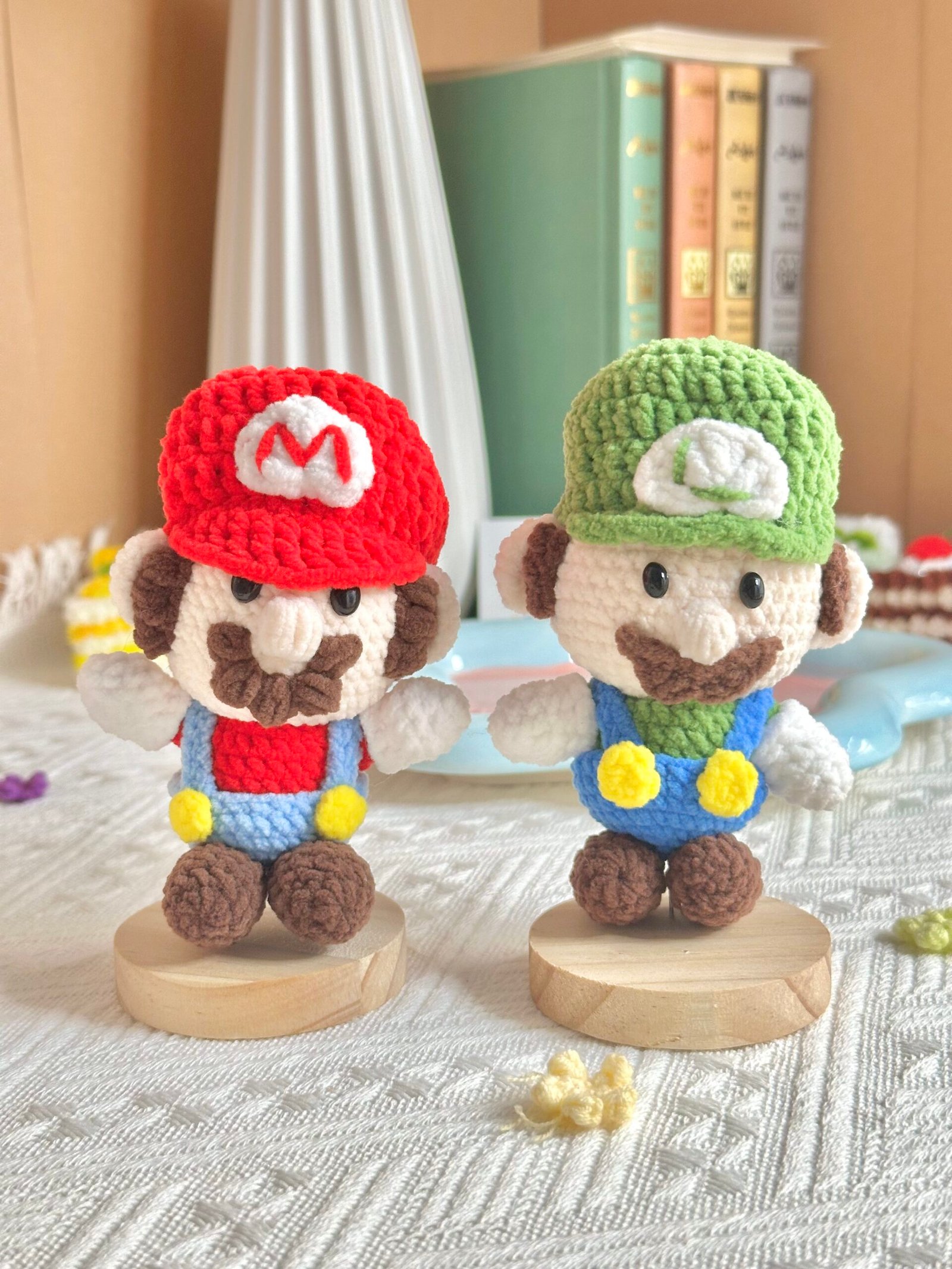 Jump into nostalgia with this handcrafted Mario & Luigi crochet doll set! Every detail — from Mario’s red cap to Luigi’s green overalls — is made entirely by hand using soft yarn and plush cotton stuffing. This duo is perfect for video game lovers, collectors, or fans of the classic Nintendo world.