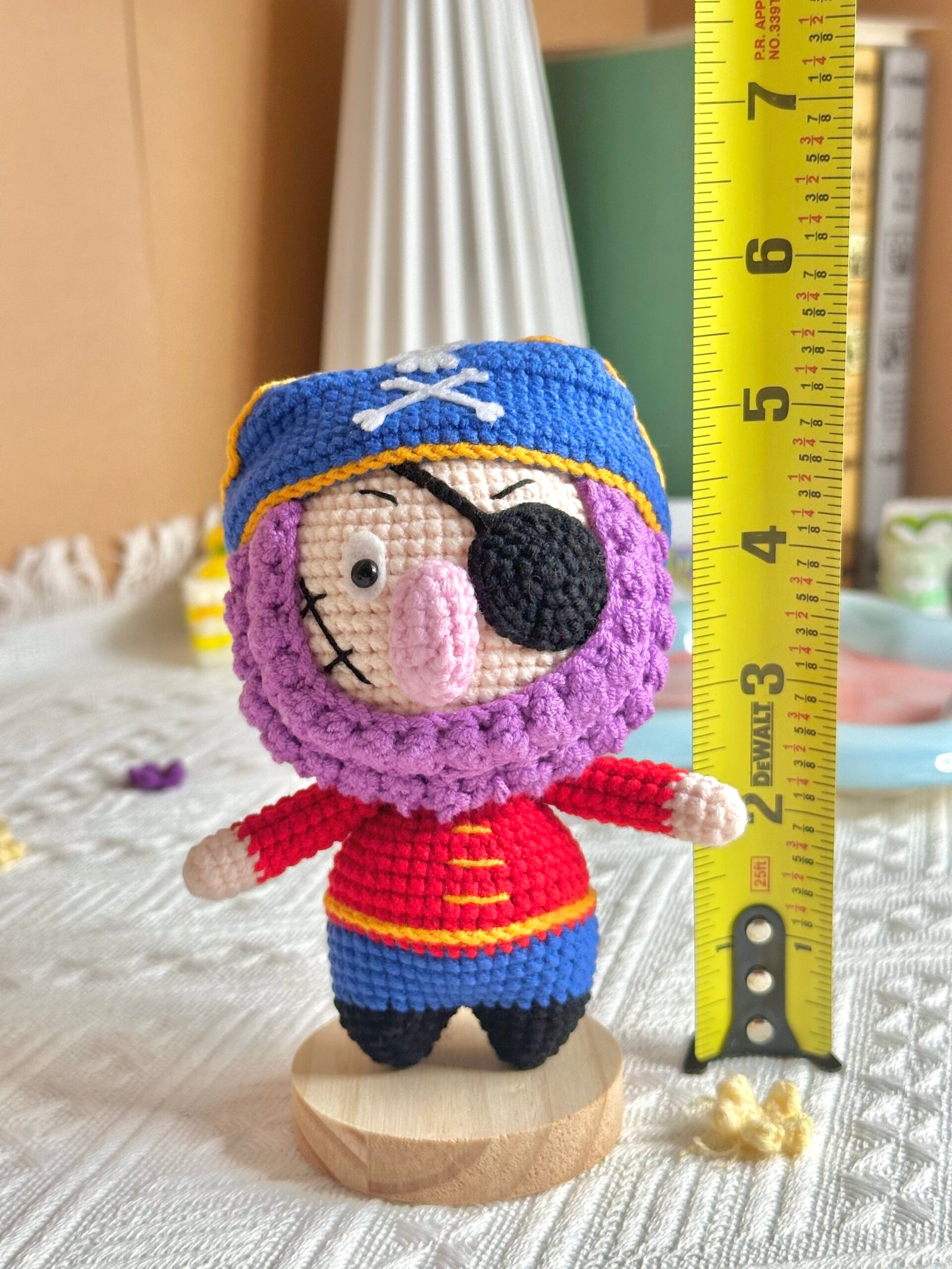 Ahoy, matey! Meet the Crochet Pirate Captain — complete with a tricorn hat, eye patch, and sea-worthy swagger. This charming handmade doll is full of adventure and personality, making it the perfect gift for little explorers, pirate fans, or collectors who love a touch of nautical flair.