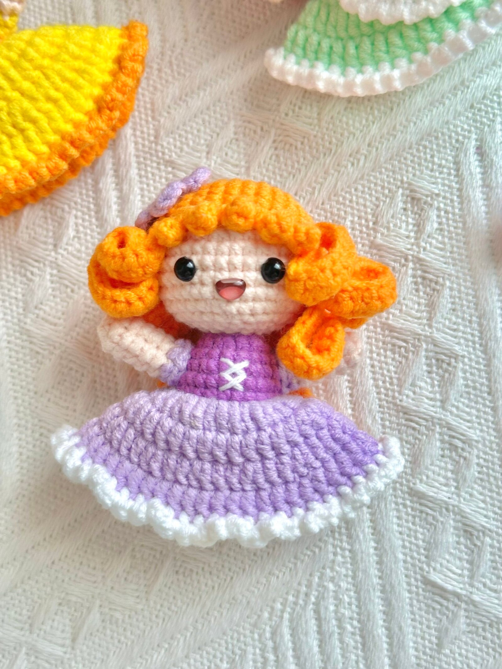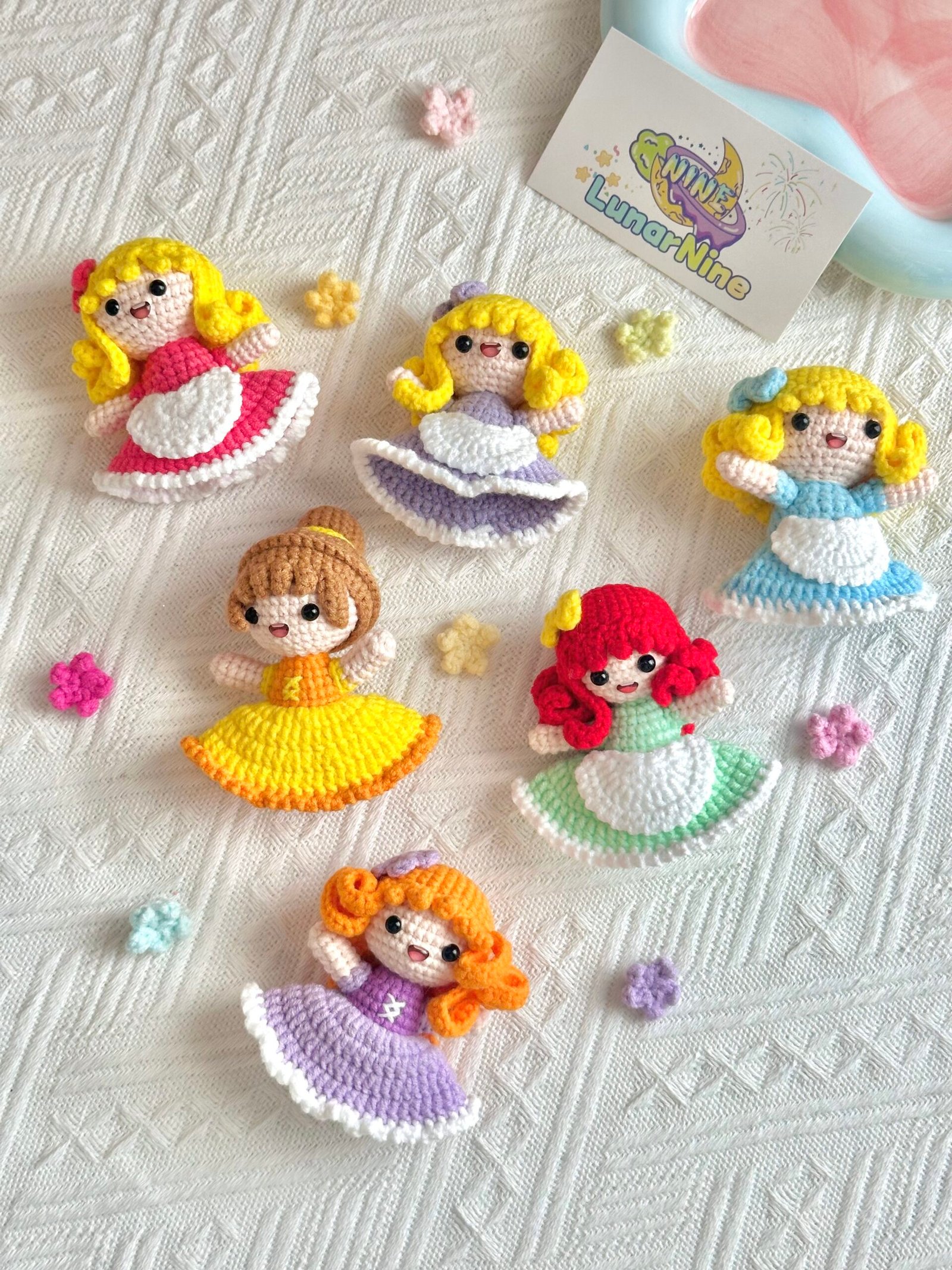 These beautifully handcrafted princess dolls bring your favorite royal characters to life with delicate details and soft textures. From their flowing dresses to their graceful expressions, each one is crocheted with love and care using quality yarn and cotton stuffing. A perfect gift for dreamers, collectors, or anyone who loves a touch of enchantment.