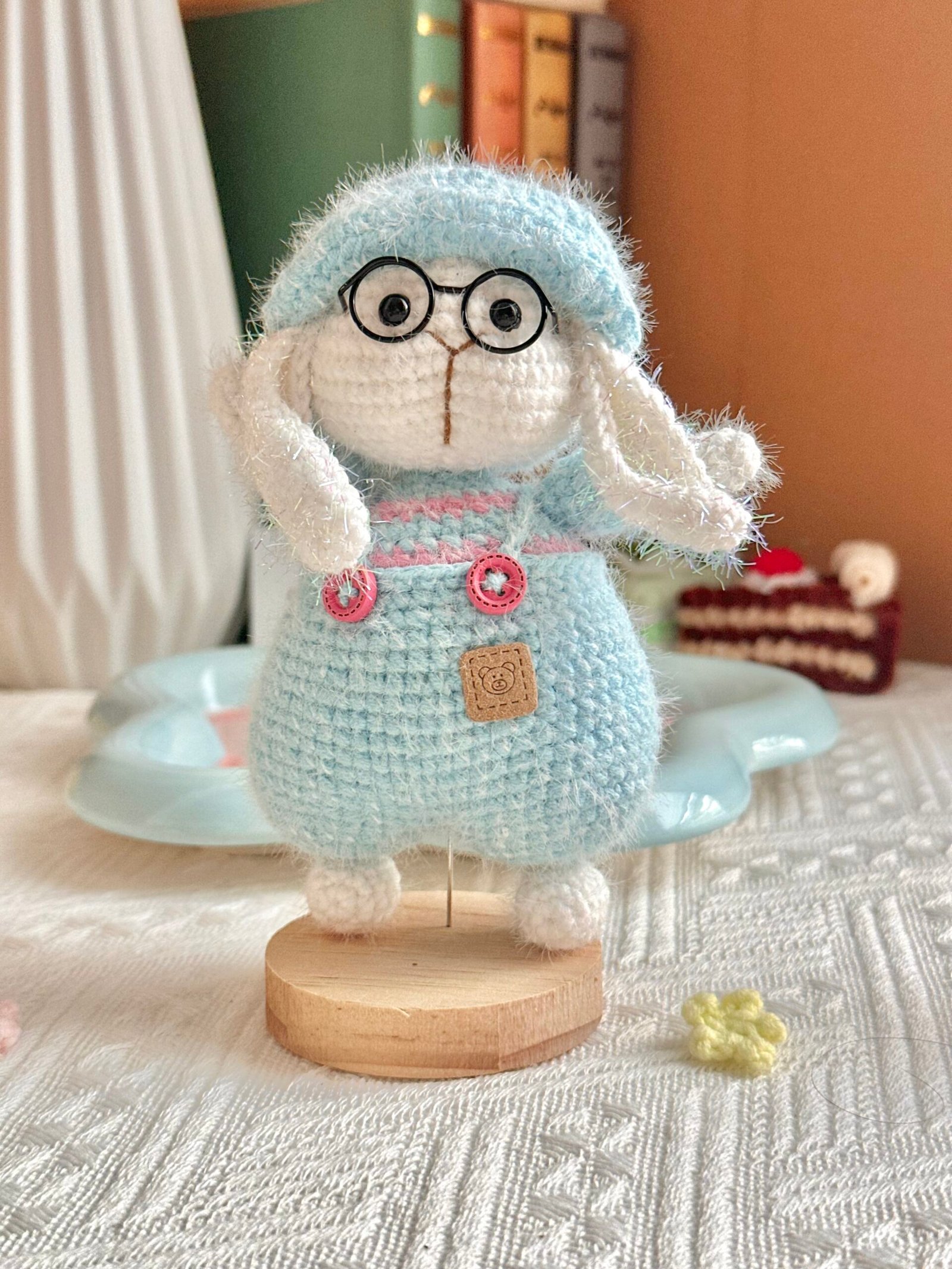 Each rabbit is carefully crocheted by hand, taking a full day to complete — ensuring quality and one-of-a-kind character in every doll.