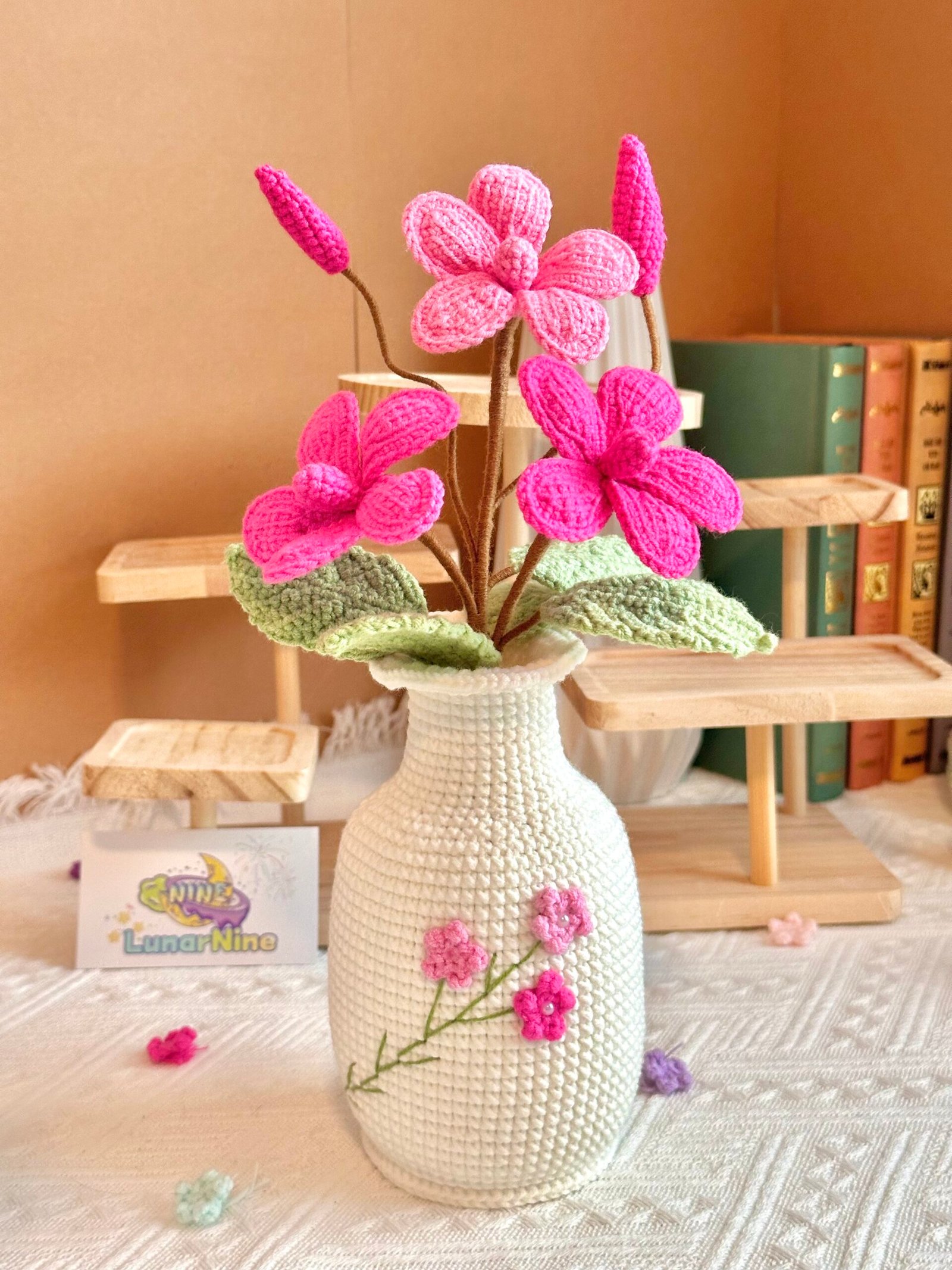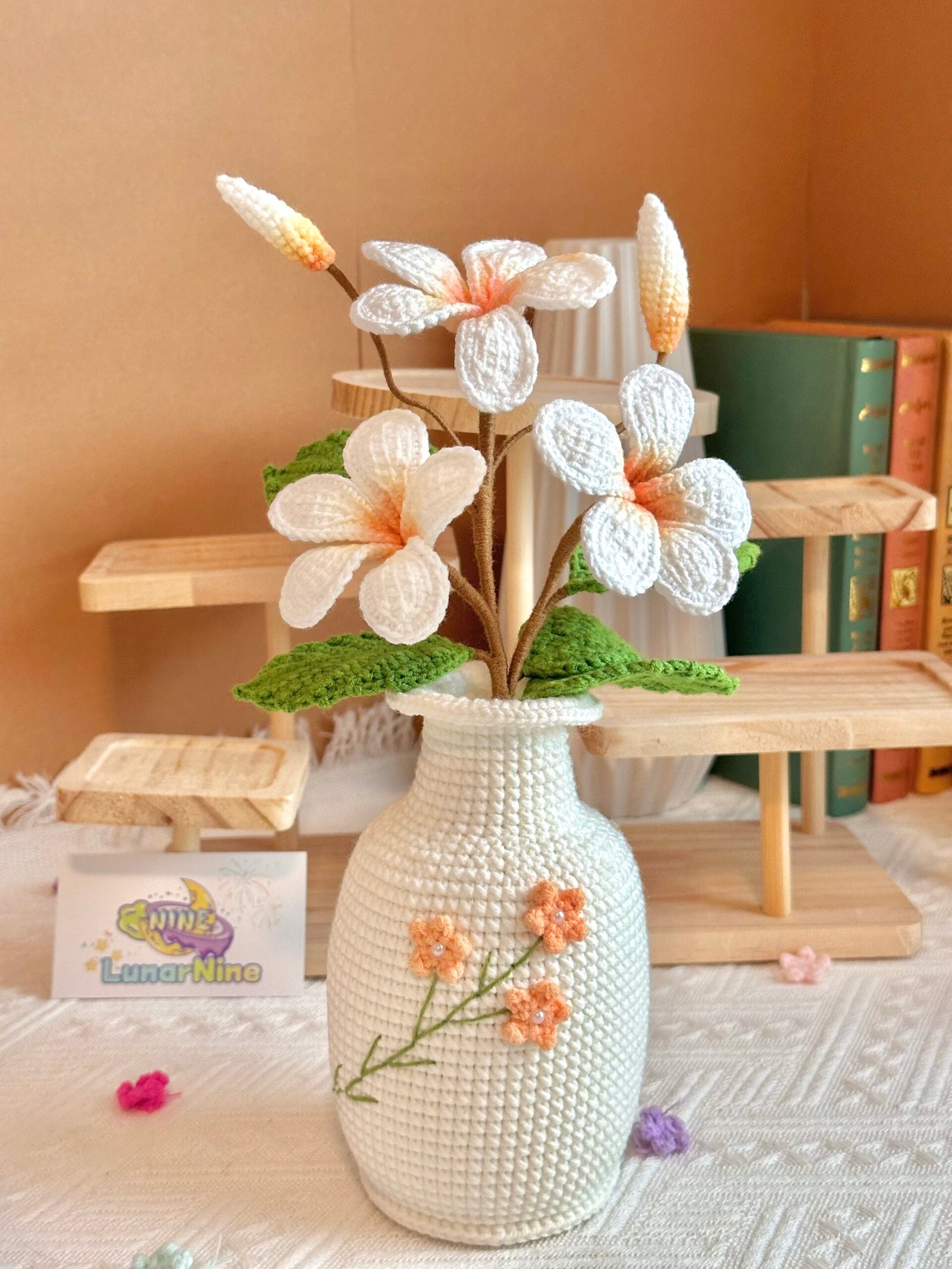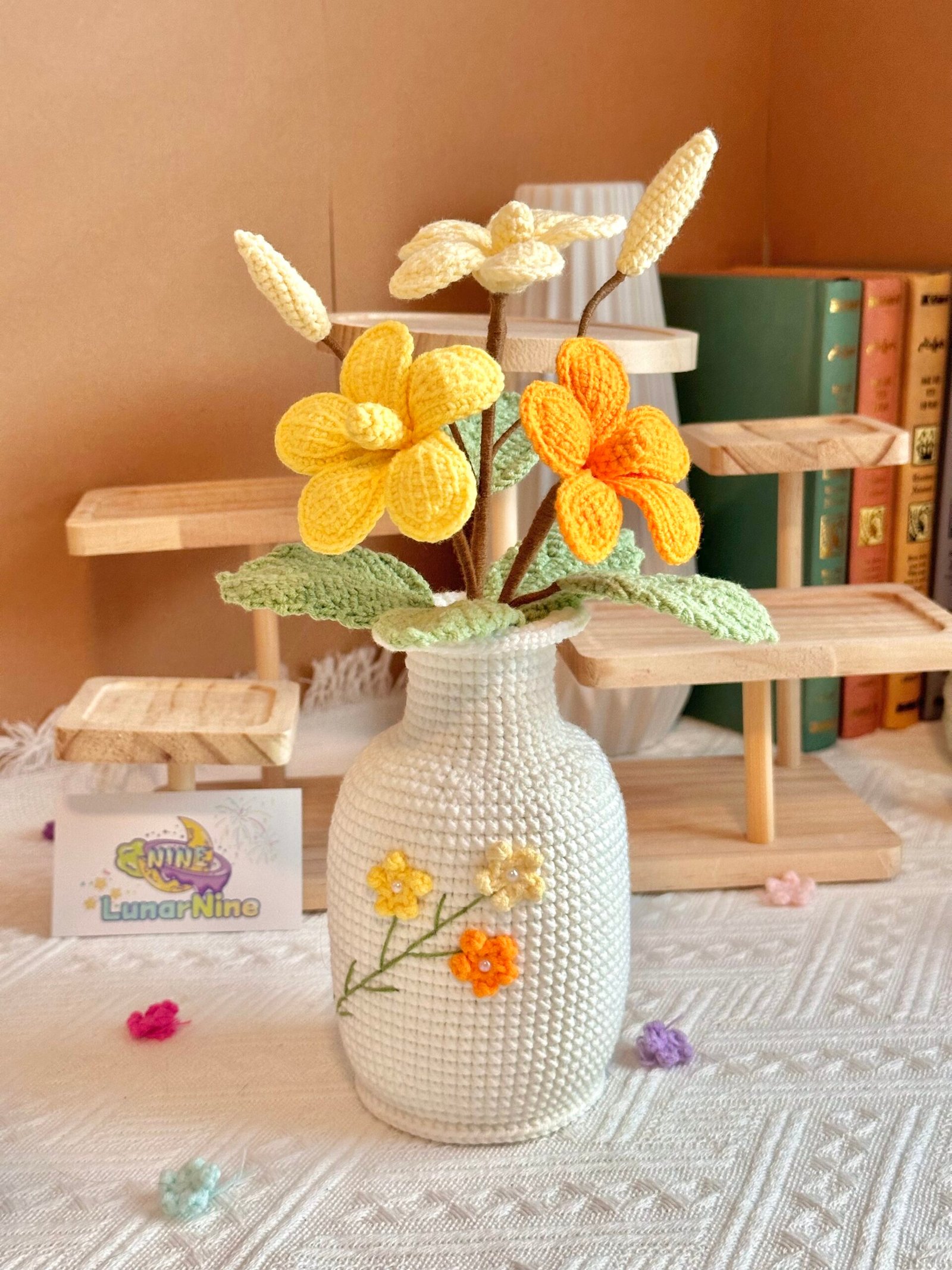 Bring a breeze of tropical beauty into your space with this Crochet Frangipani Arrangement in a Large Vase. Each bloom is carefully crocheted to capture the soft, rounded petals and delicate charm of real frangipani flowers — symbols of peace, renewal, and natural beauty.