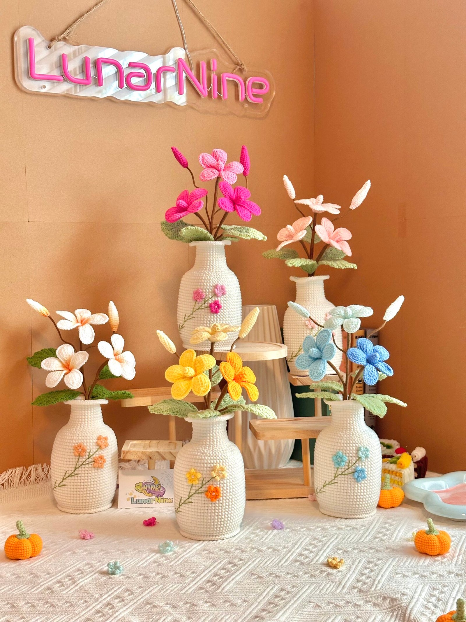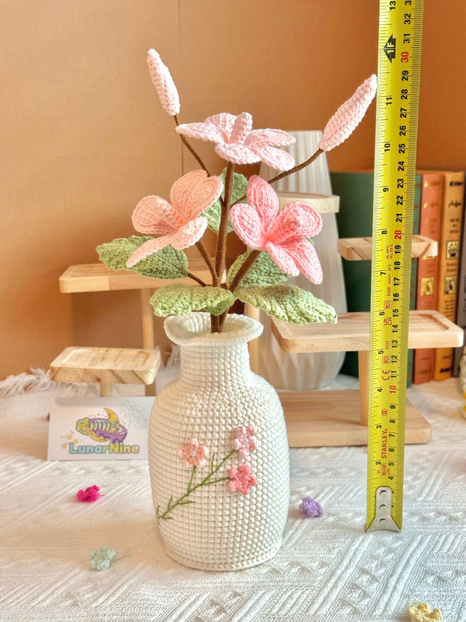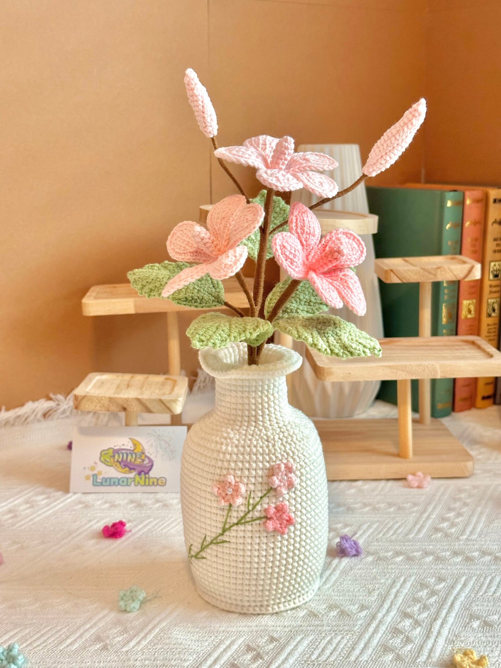 Bring a breeze of tropical beauty into your space with this Crochet Frangipani Arrangement in a Large Vase. Each bloom is carefully crocheted to capture the soft, rounded petals and delicate charm of real frangipani flowers — symbols of peace, renewal, and natural beauty.