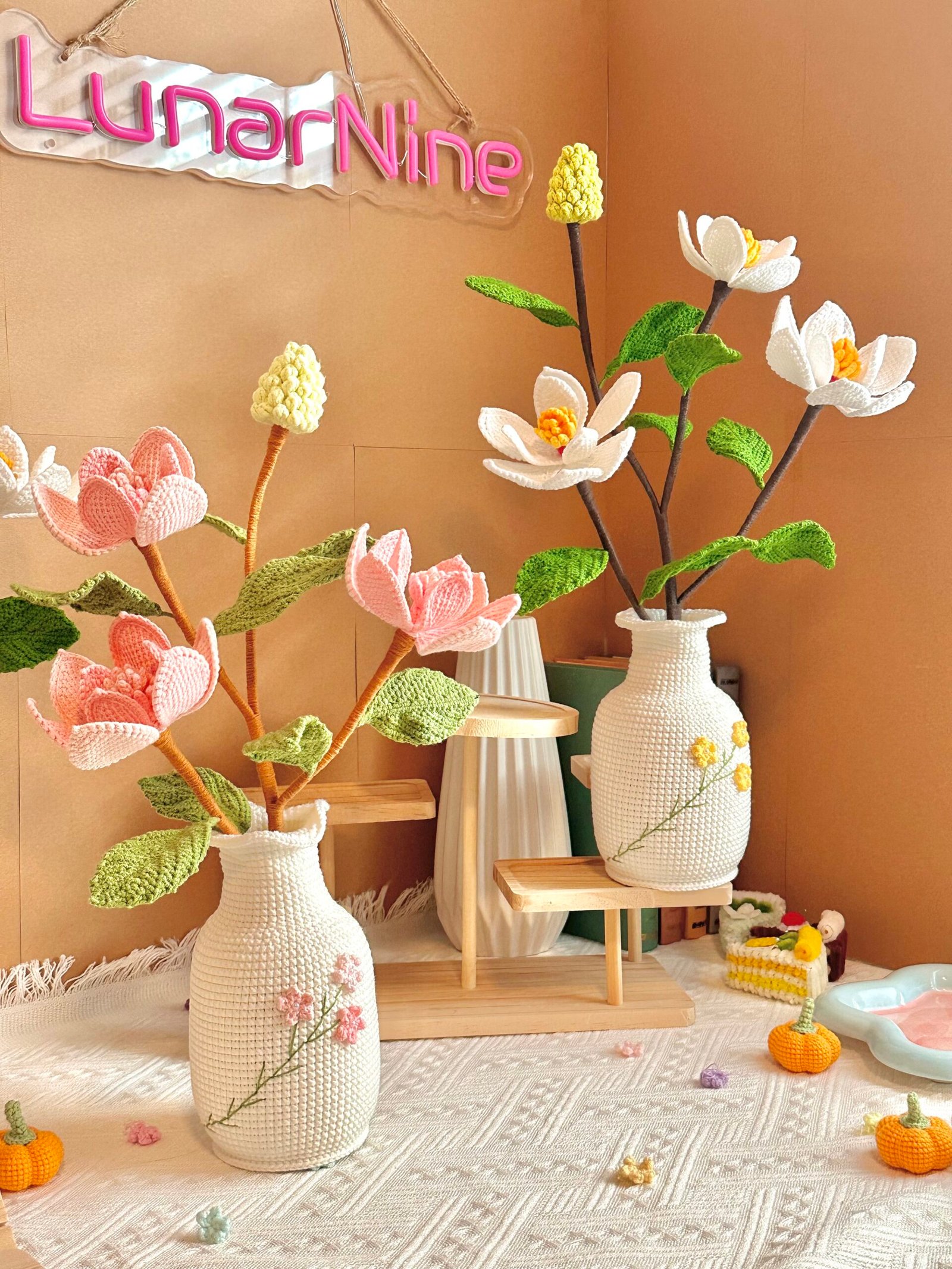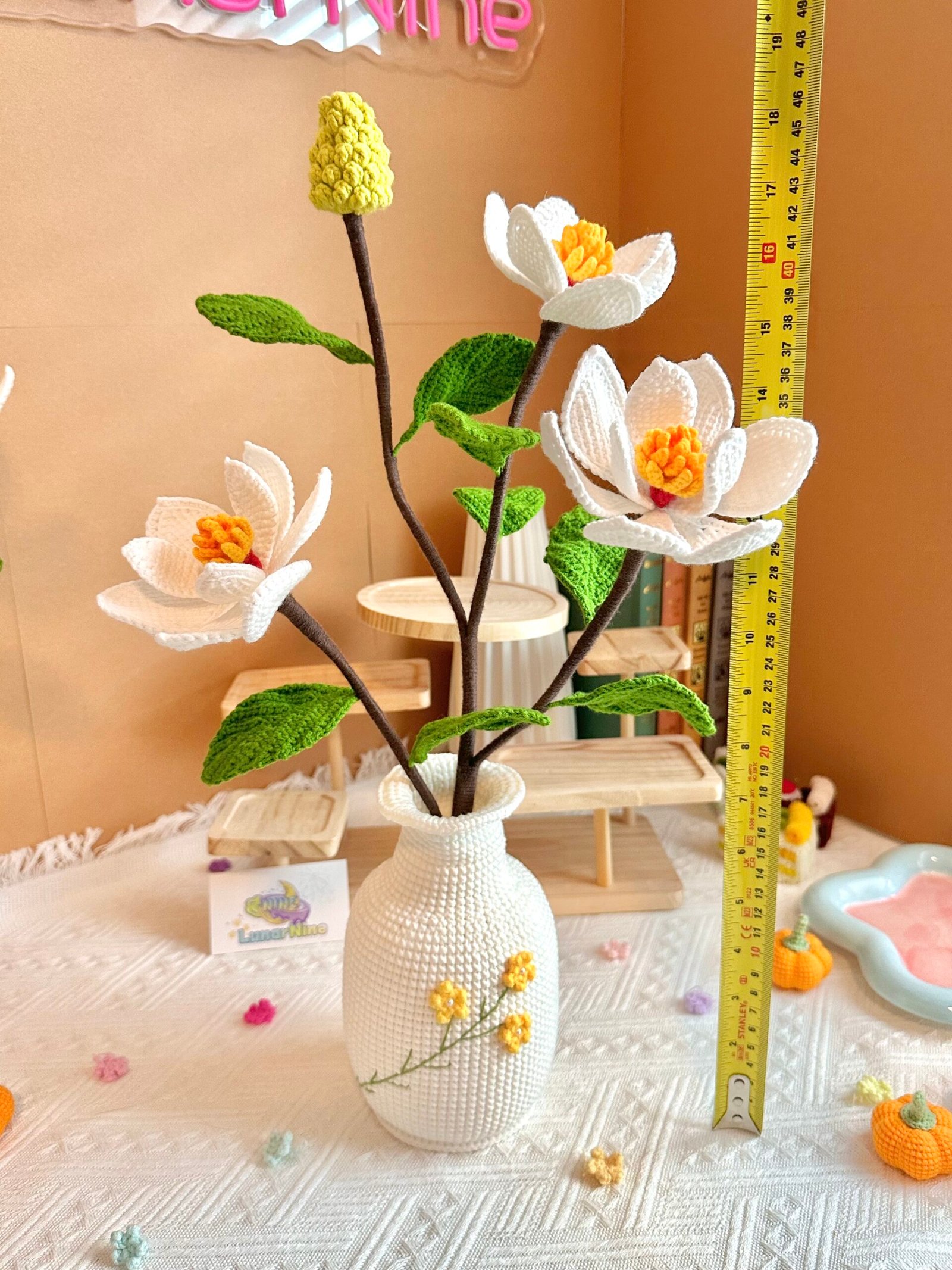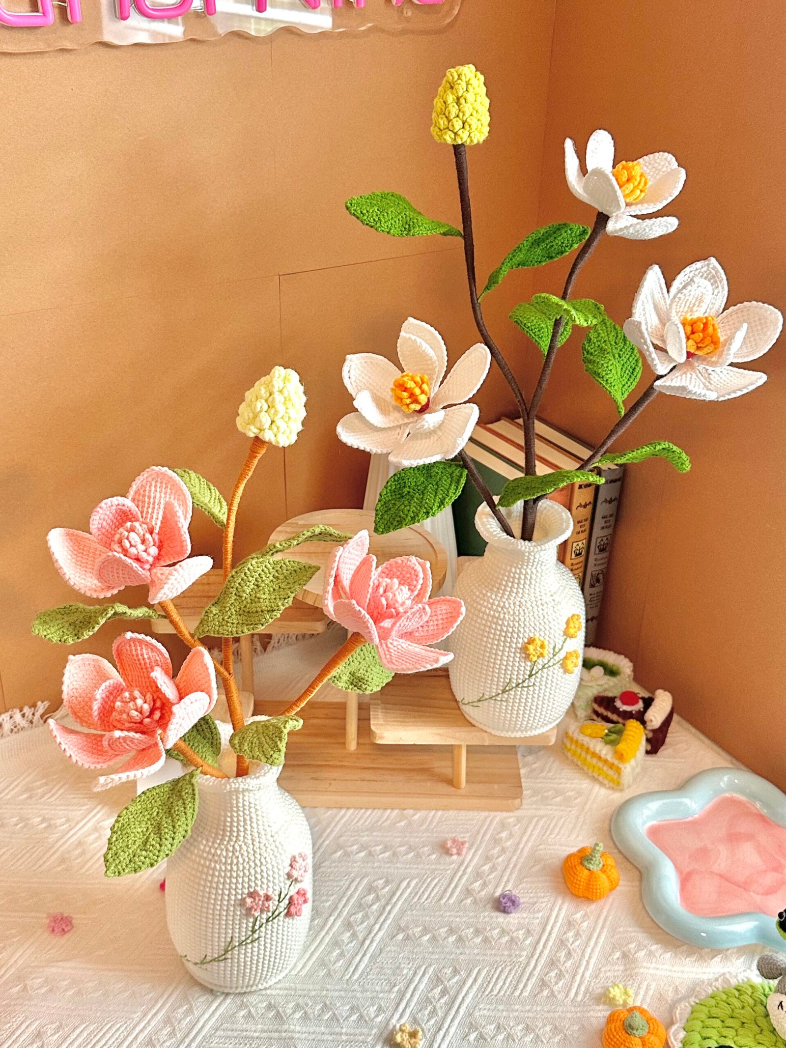 Bring timeless beauty into your space with our Crochet Magnolia Arrangement in a Large Vase. Each magnolia bloom is lovingly handcrafted with layered petals and bold, sculptural form — capturing the natural elegance of this iconic flower. Whether in soft pink or classic white, these magnolias symbolize dignity, strength, and quiet beauty.