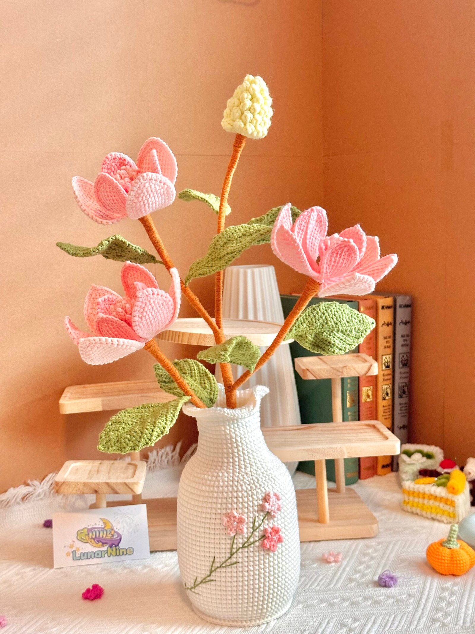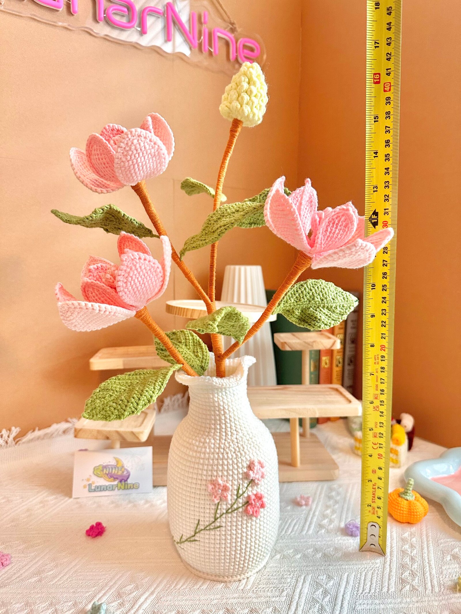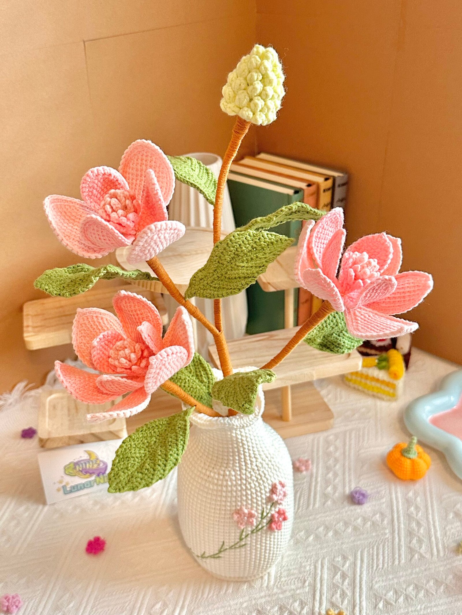 Bring timeless beauty into your space with our Crochet Magnolia Arrangement in a Large Vase. Each magnolia bloom is lovingly handcrafted with layered petals and bold, sculptural form — capturing the natural elegance of this iconic flower. Whether in soft pink or classic white, these magnolias symbolize dignity, strength, and quiet beauty.
