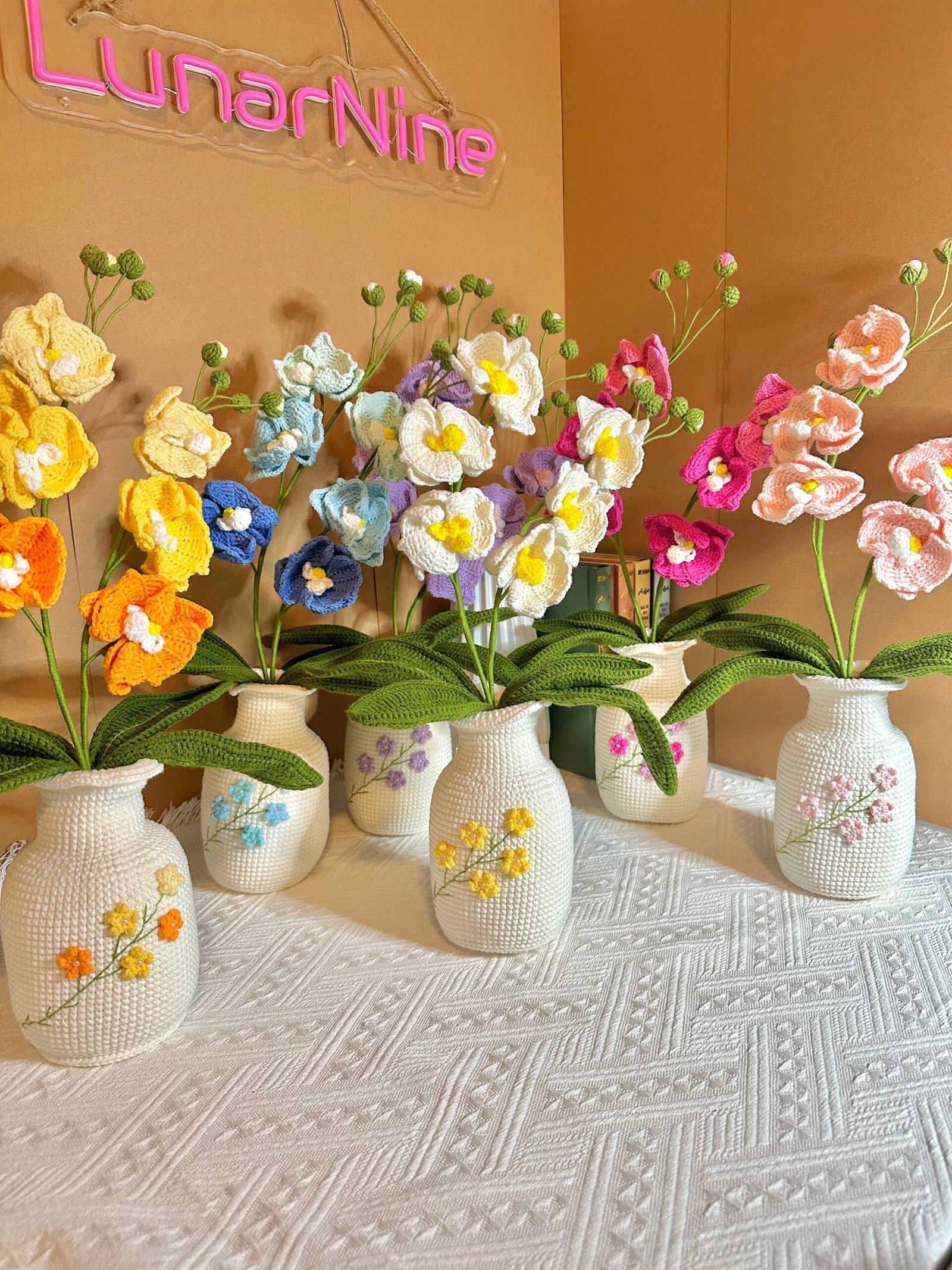 🧶 Each flower and vase is hand-crocheted with care and detail