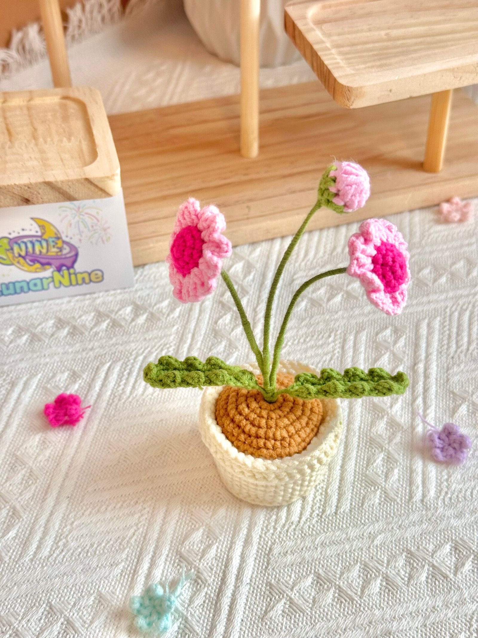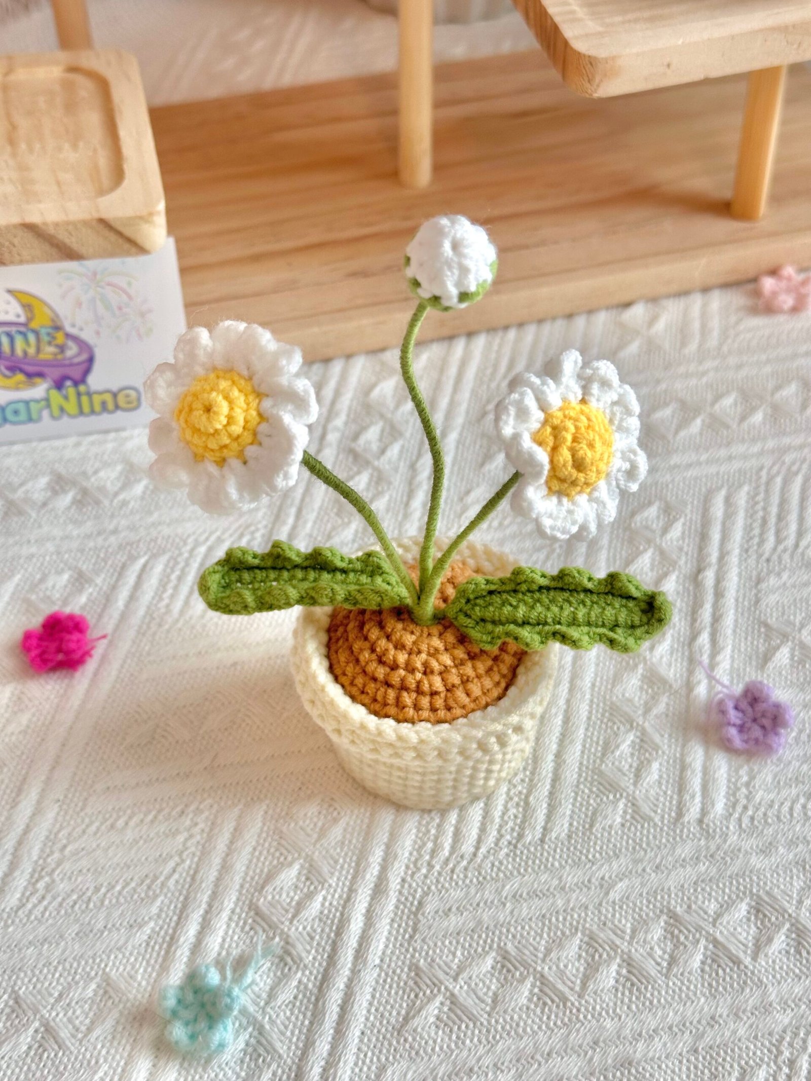 Add a splash of sunshine to your day with these Crochet Daisies in Mini Pots! Carefully crafted petal by petal, these cheerful little flowers are perfect for brightening desks, shelves, or windowsills — no watering needed. Their soft colors and compact size make them a lovely gift for friends, teachers, or anyone who could use a smile.