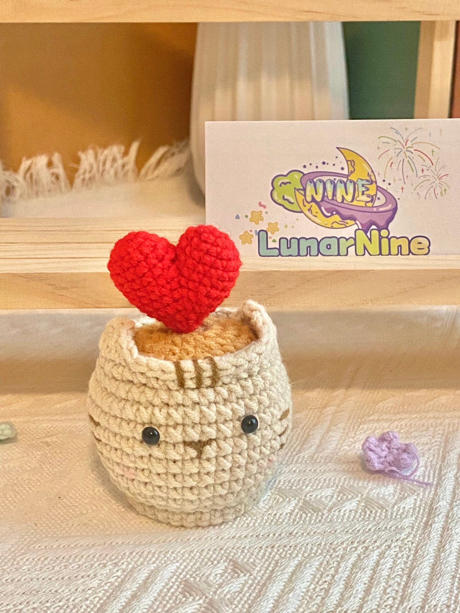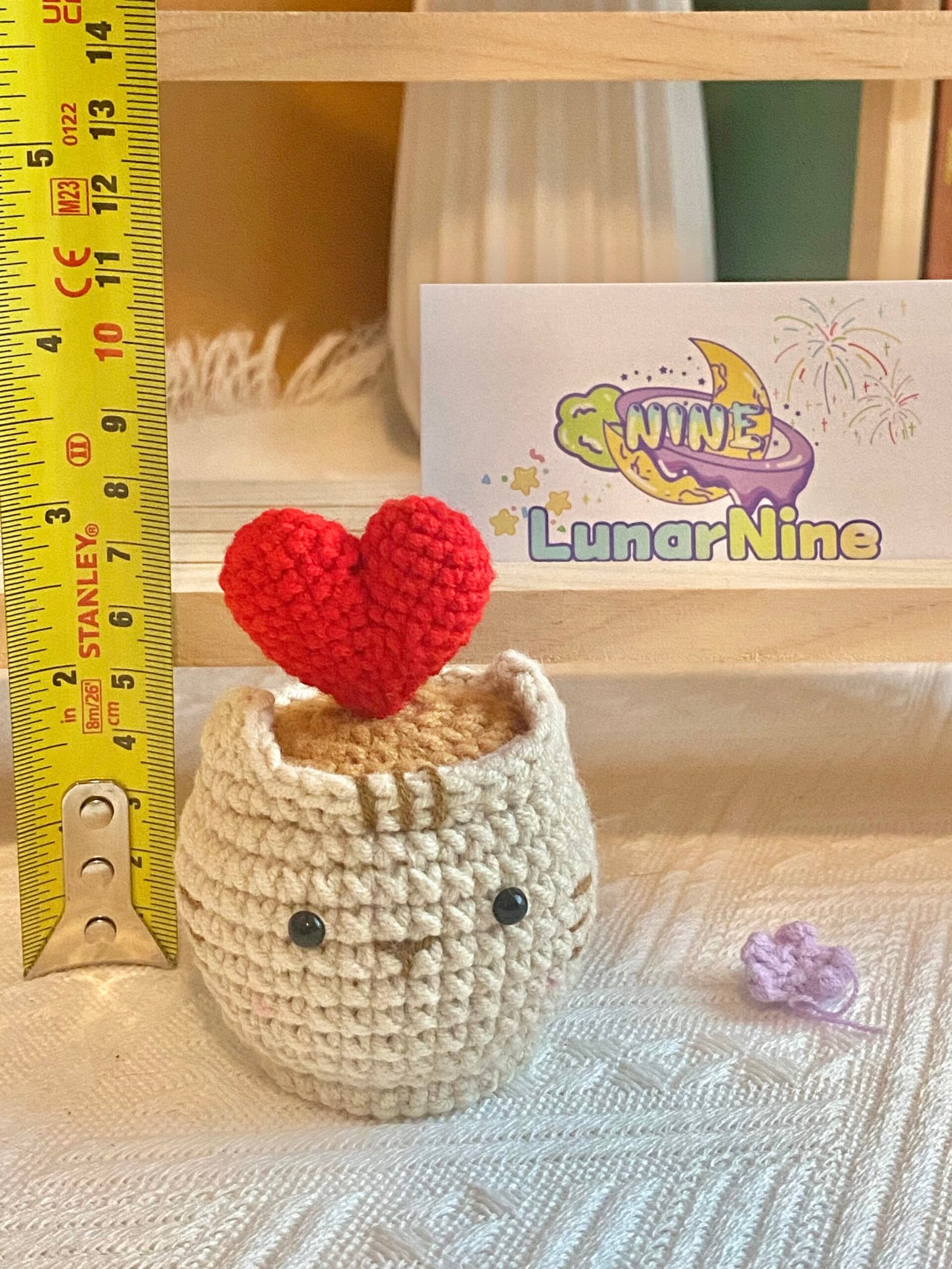 Add a touch of love and playfulness to your space with this Crochet Heart Cat in a Mini Pot. Featuring an adorable cat face, tiny ears, and a heart-shaped flower detail, this handmade piece combines cozy cuteness with cheerful design. It’s the ideal gift for cat lovers, kawaii fans, or anyone who loves unique, handcrafted decor.