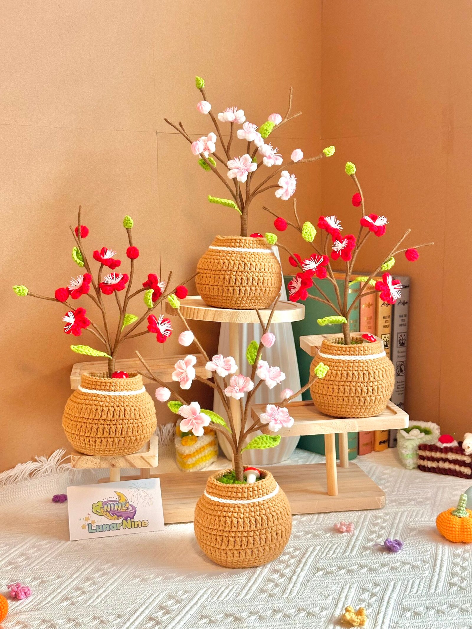 Celebrate the beauty of spring with these Crochet Peach Blossoms in soft pink and bold red. Each blossom is carefully crocheted to capture the charm and symbolism of the peach flower — love, renewal, and good fortune. Perfect for home decor, gifts, or as timeless floral accents for any occasion.
