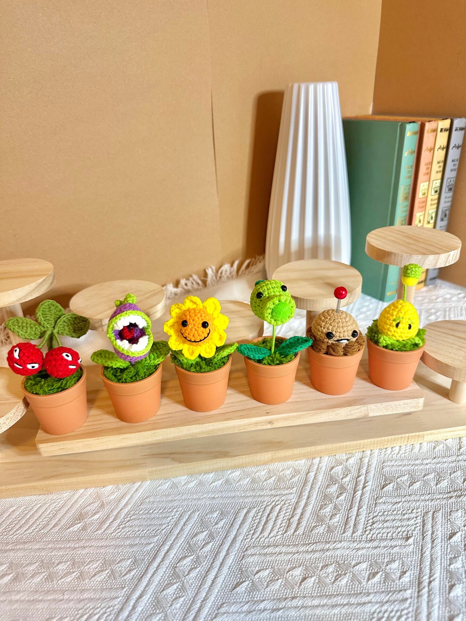 Inspired by the beloved game, this handmade crochet Plants vs Zombies set includes six iconic plant heroes: Sunflower, Peashooter, Cherry Bomb, Potato Mine, Kernel-pult, and Chomper. Each character is carefully crocheted with vivid colors and playful detail, perfect for display or gifting to a fellow PvZ fan.