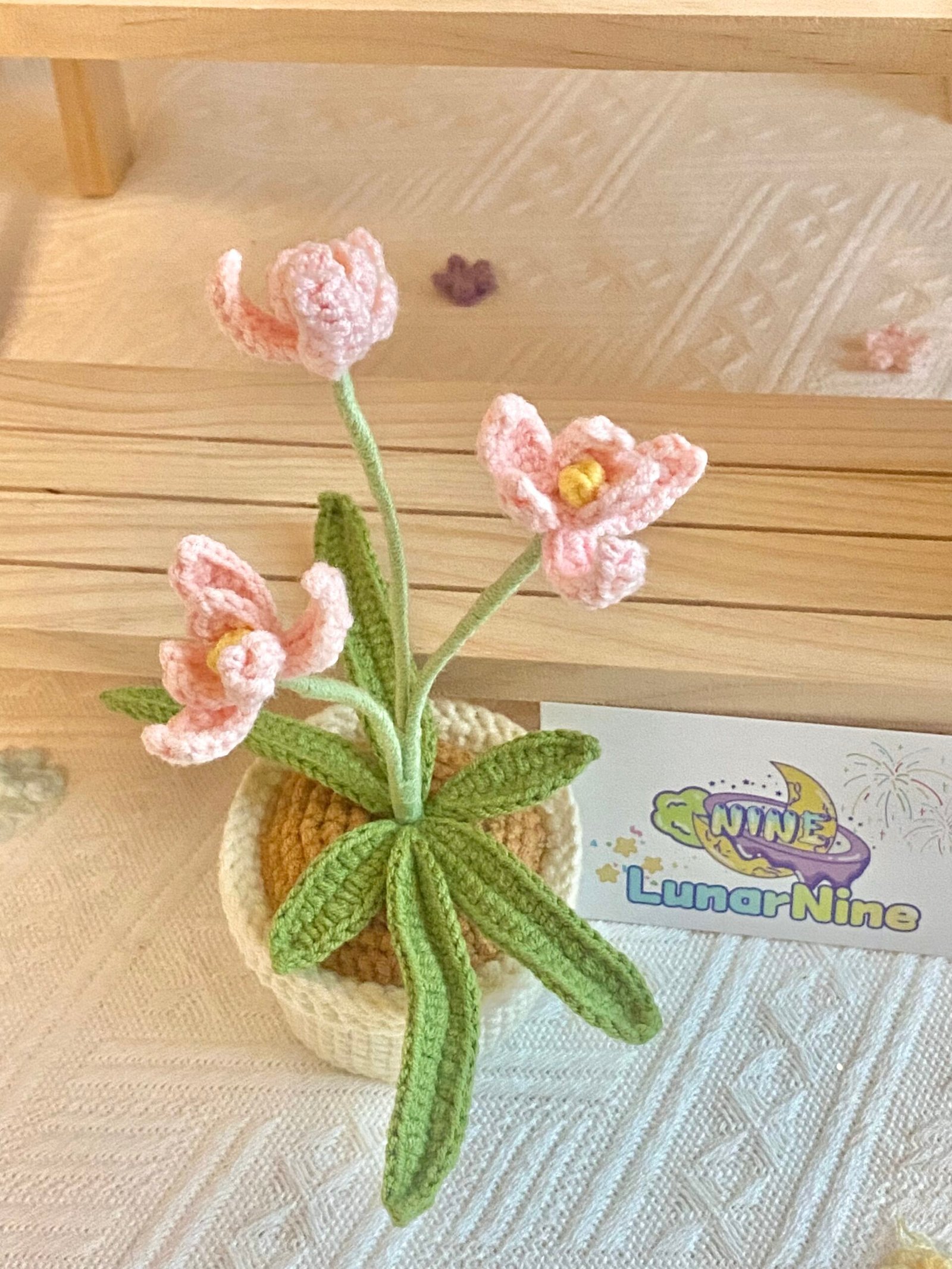 Bring home the timeless grace of orchids with our handcrafted Crochet Orchid Flowers. Each stem is delicately crocheted to capture the flowing curves and vivid colors of real orchids — symbolizing love, refinement, and strength. These flowers stand tall and elegant, making them a perfect piece for home décor, gifts, or special occasions.