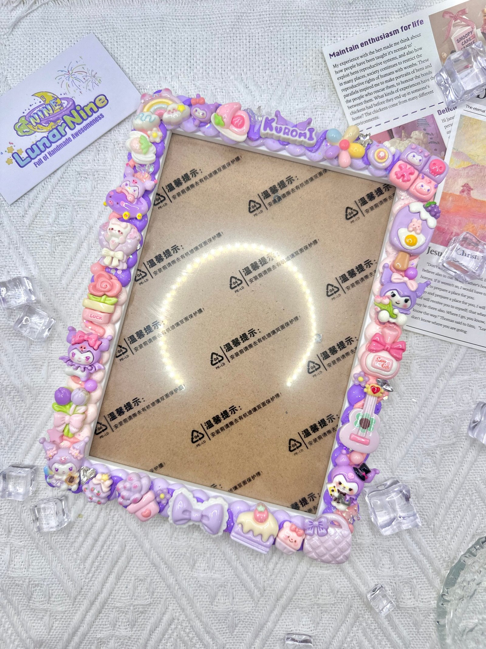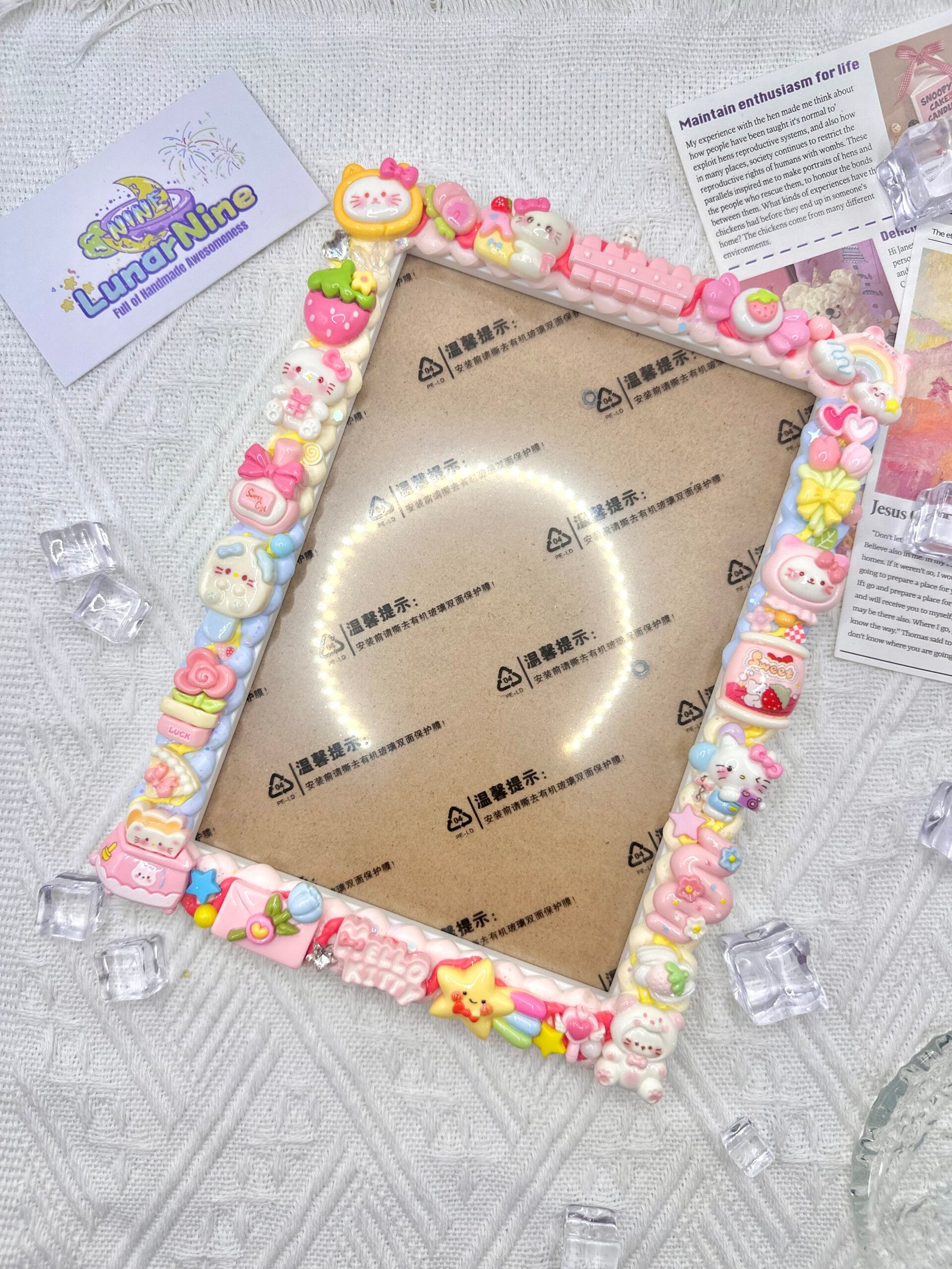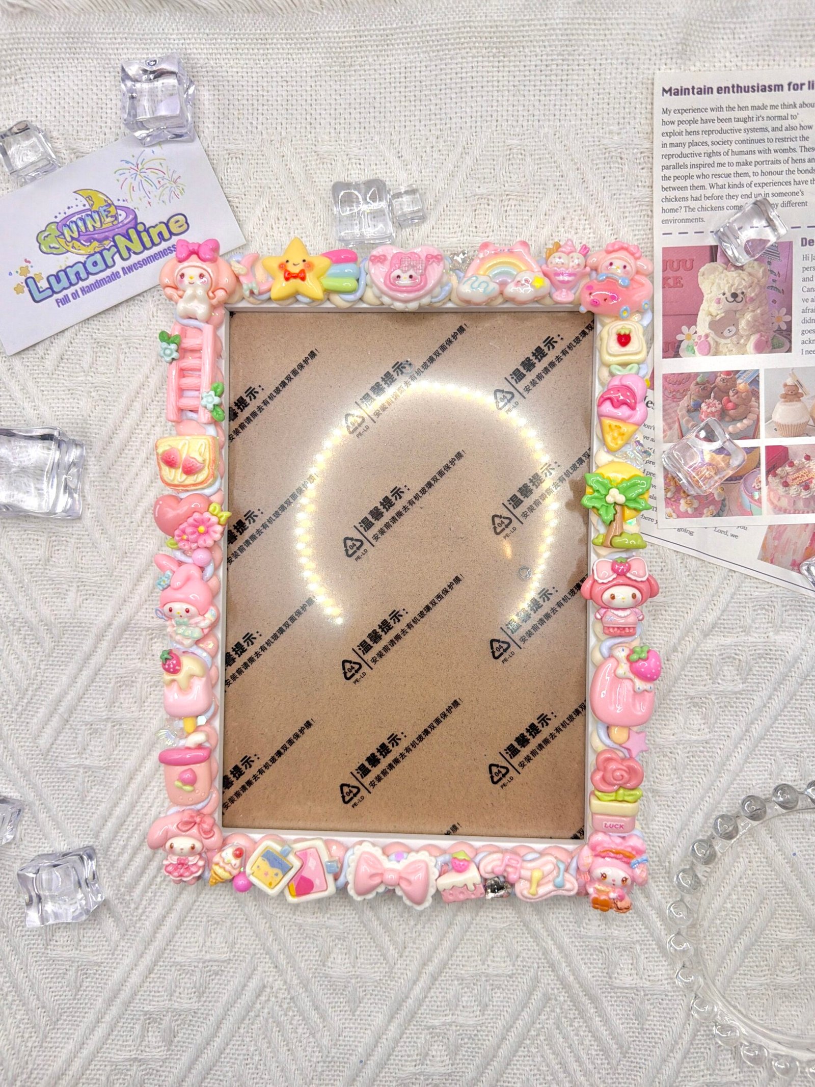 This 7-inch photo frame is hand-decorated with dreamy whipped cream glue, sparkly charms, and playful embellishments. Whether you’re showcasing a favorite photo, art print, or inspirational quote, this frame adds the perfect kawaii touch to any room.