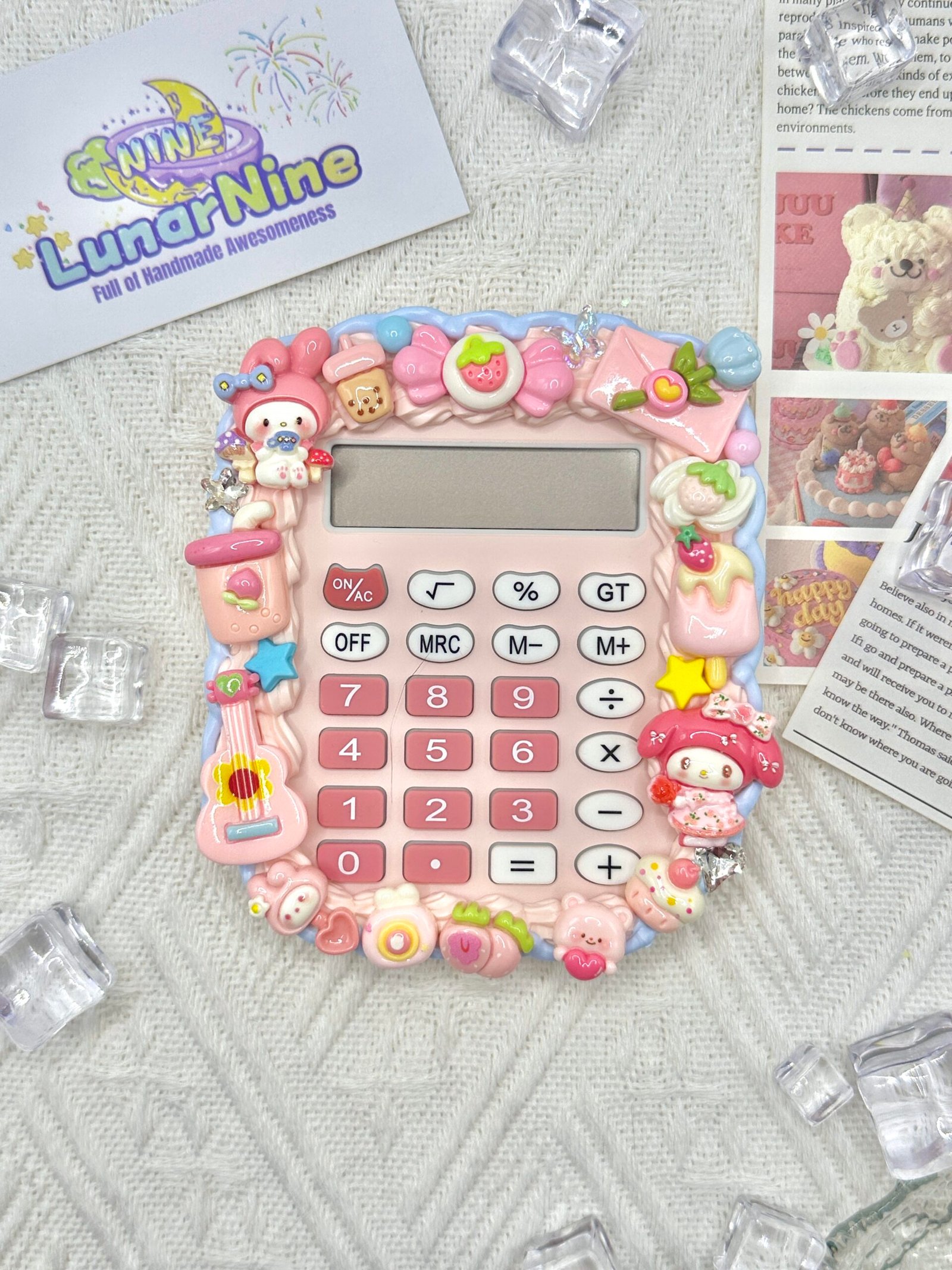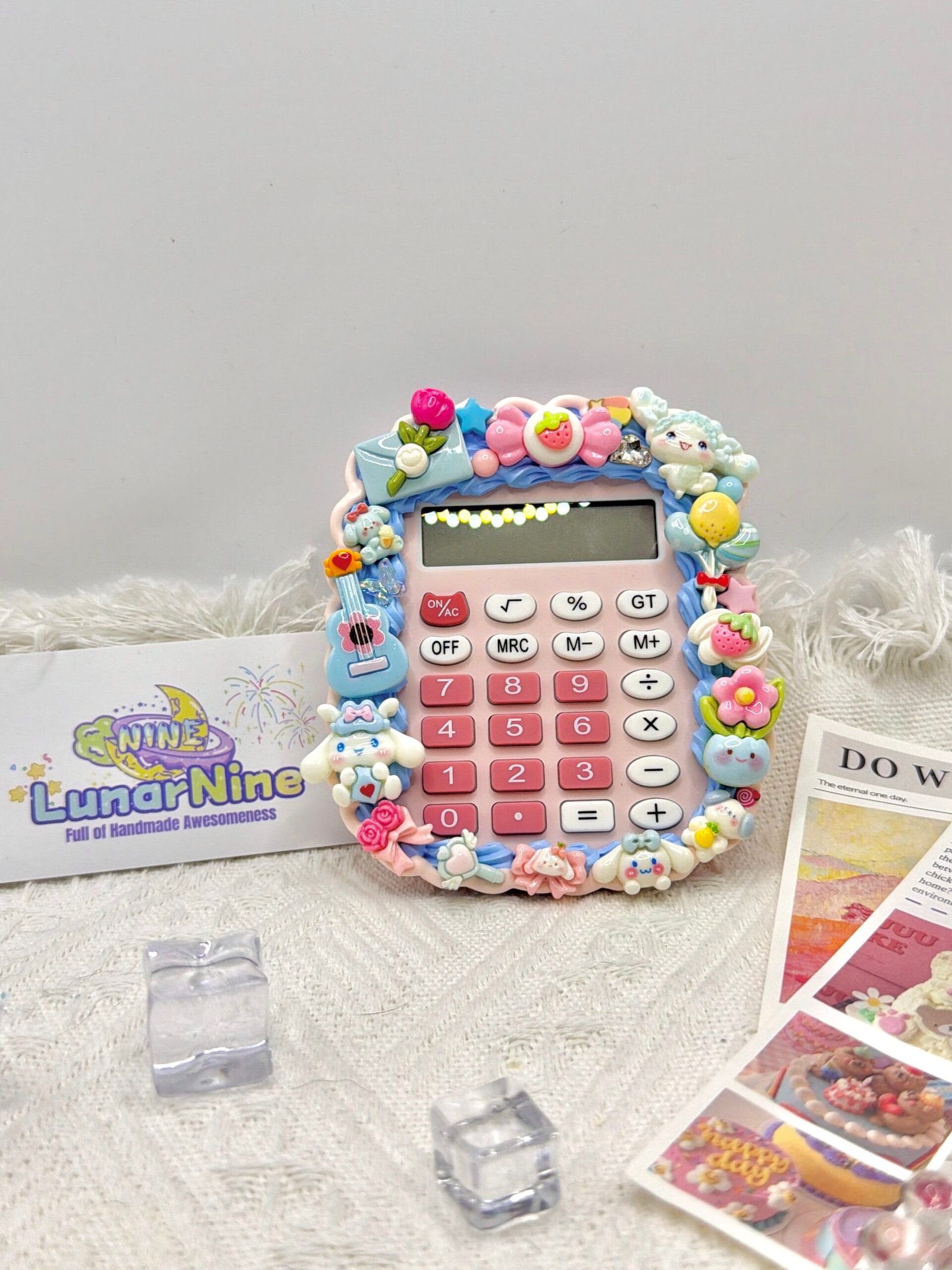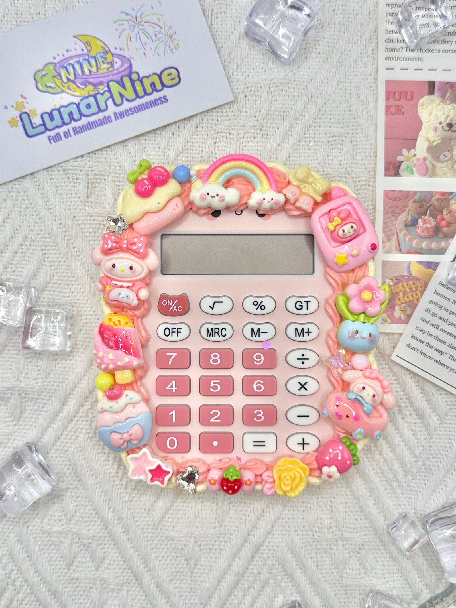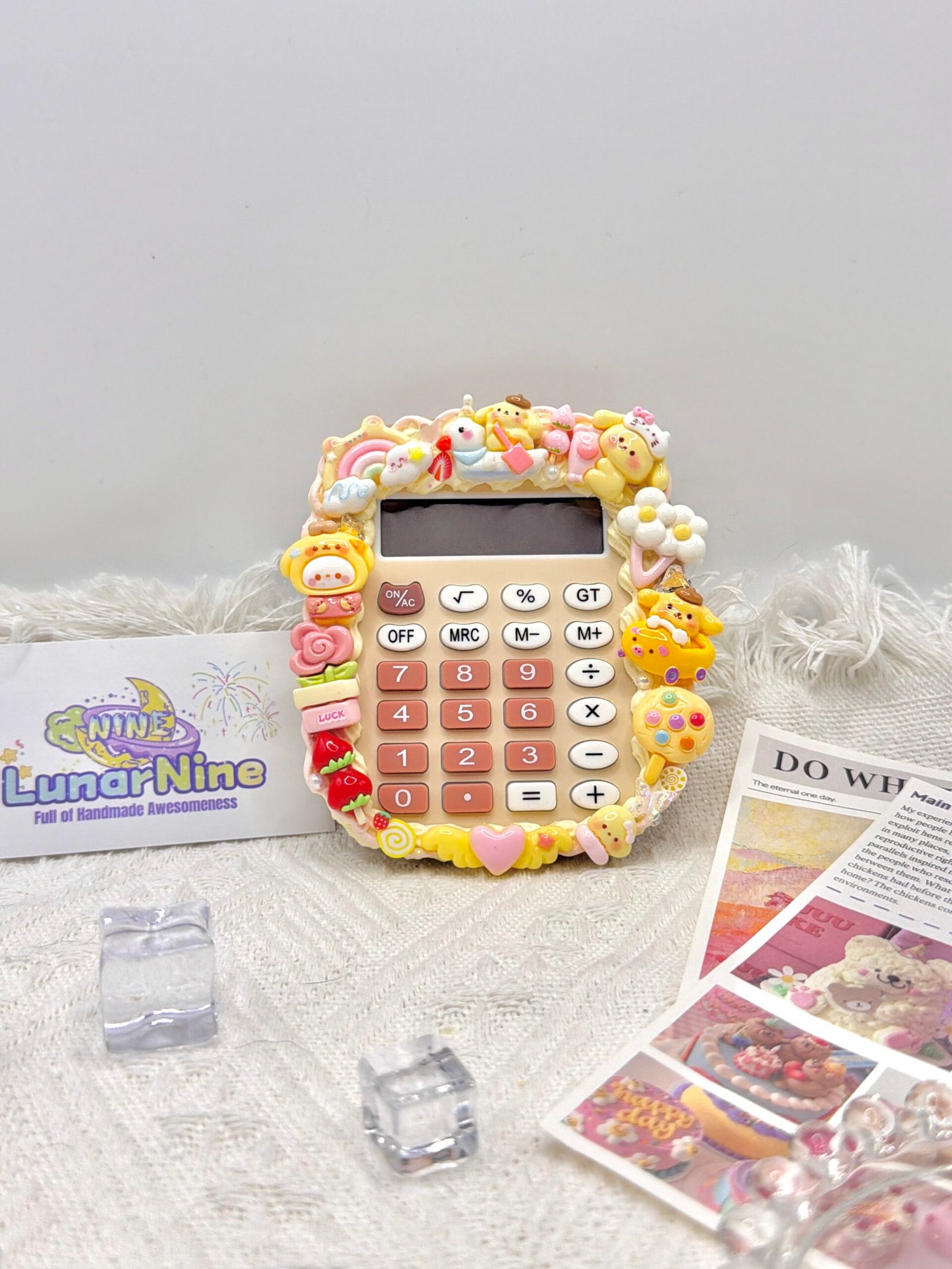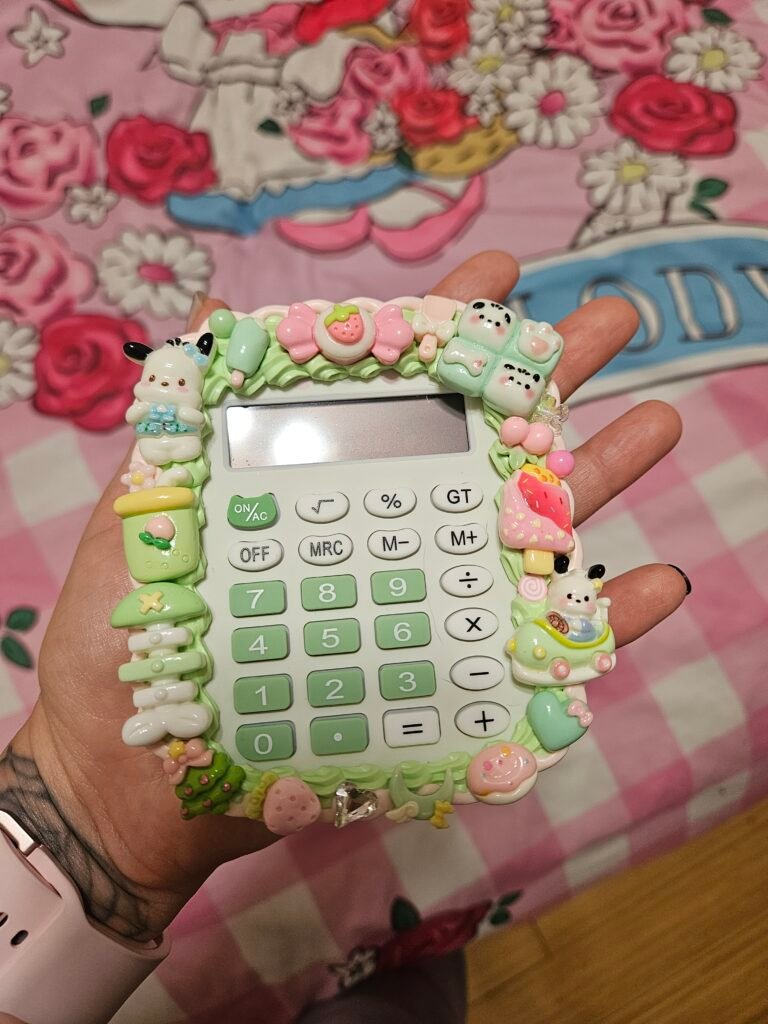 Make math magical with this Decoden Calculator, where function meets fabulous! Hand-decorated with fluffy cream glue, glittery charms, and pastel-perfect details, this kawaii essential turns everyday calculations into a joy.