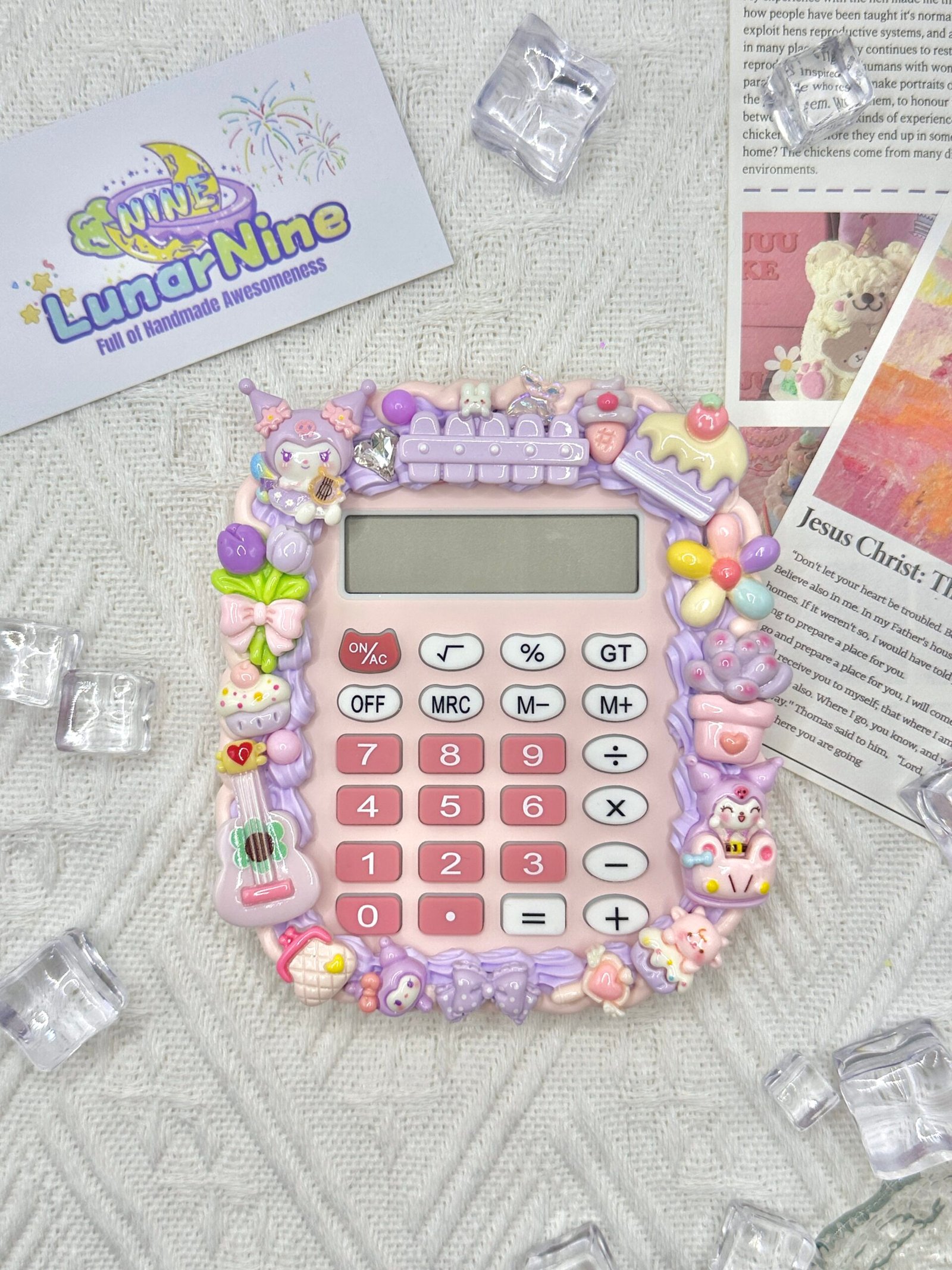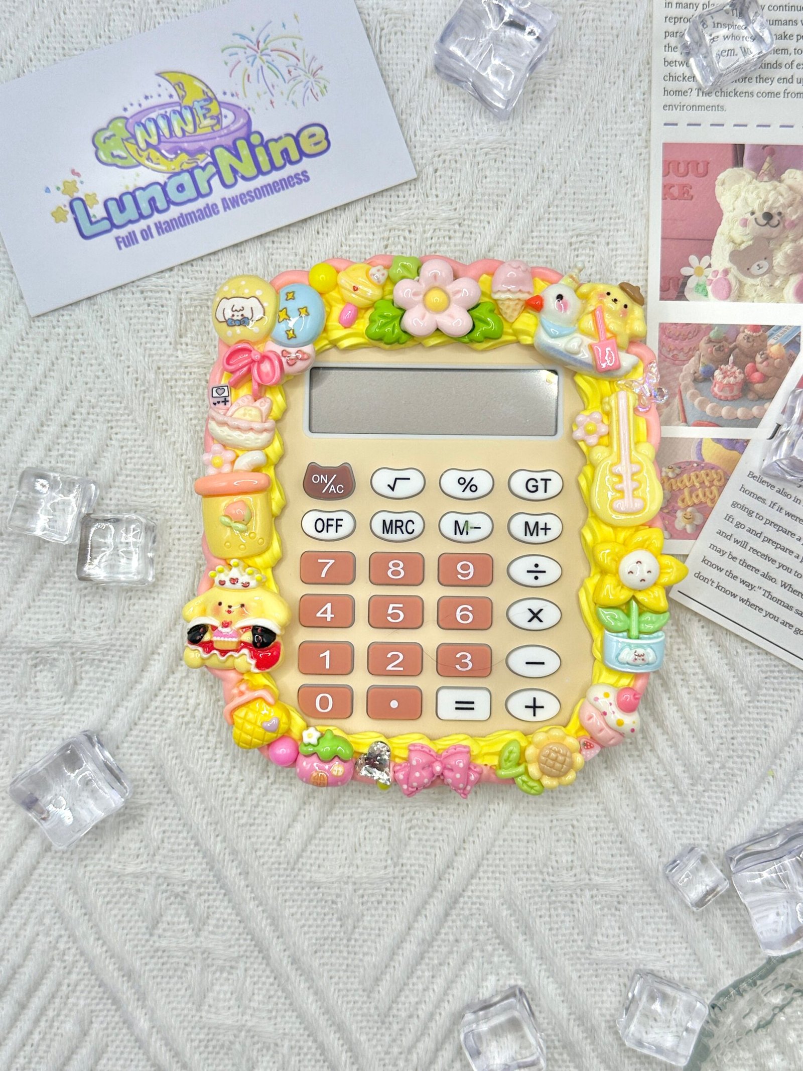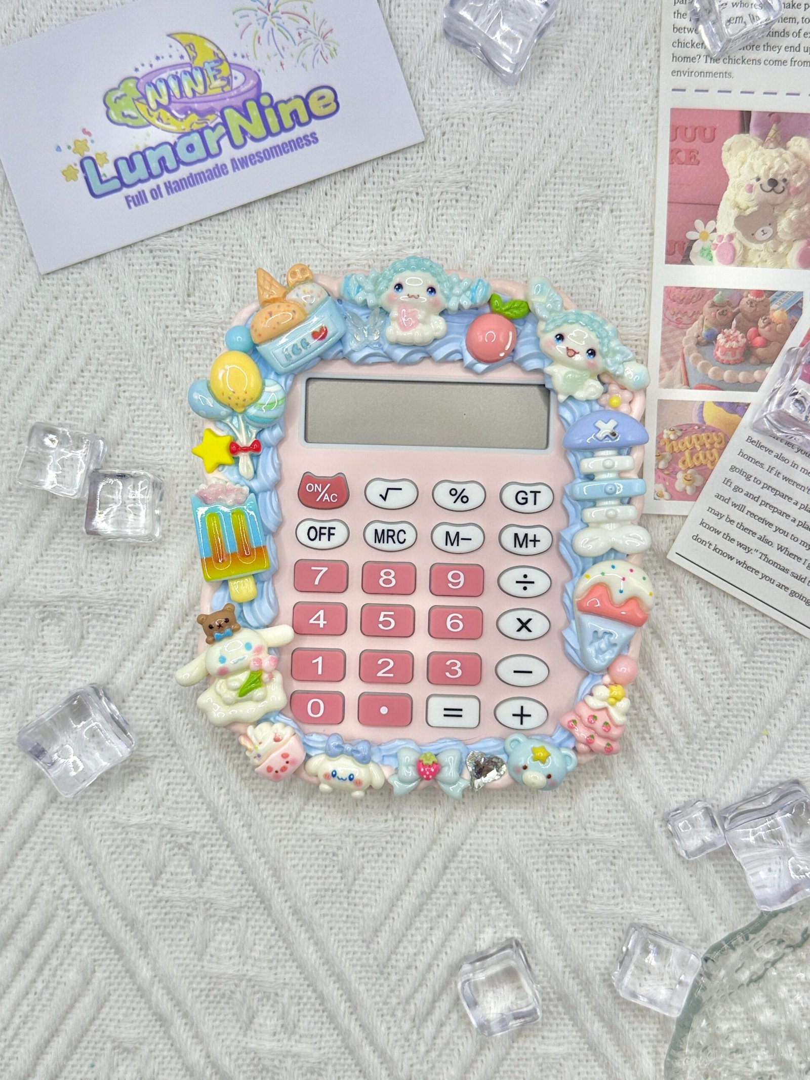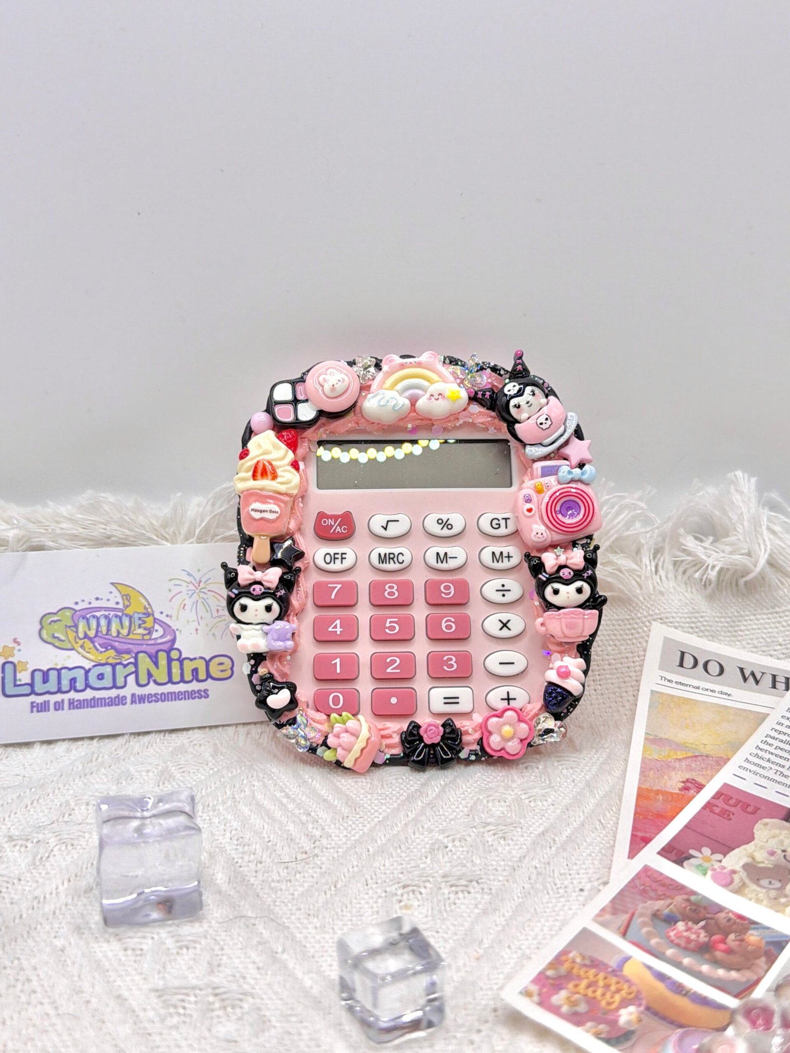 Make math magical with this Decoden Calculator, where function meets fabulous! Hand-decorated with fluffy cream glue, glittery charms, and pastel-perfect details, this kawaii essential turns everyday calculations into a joy.