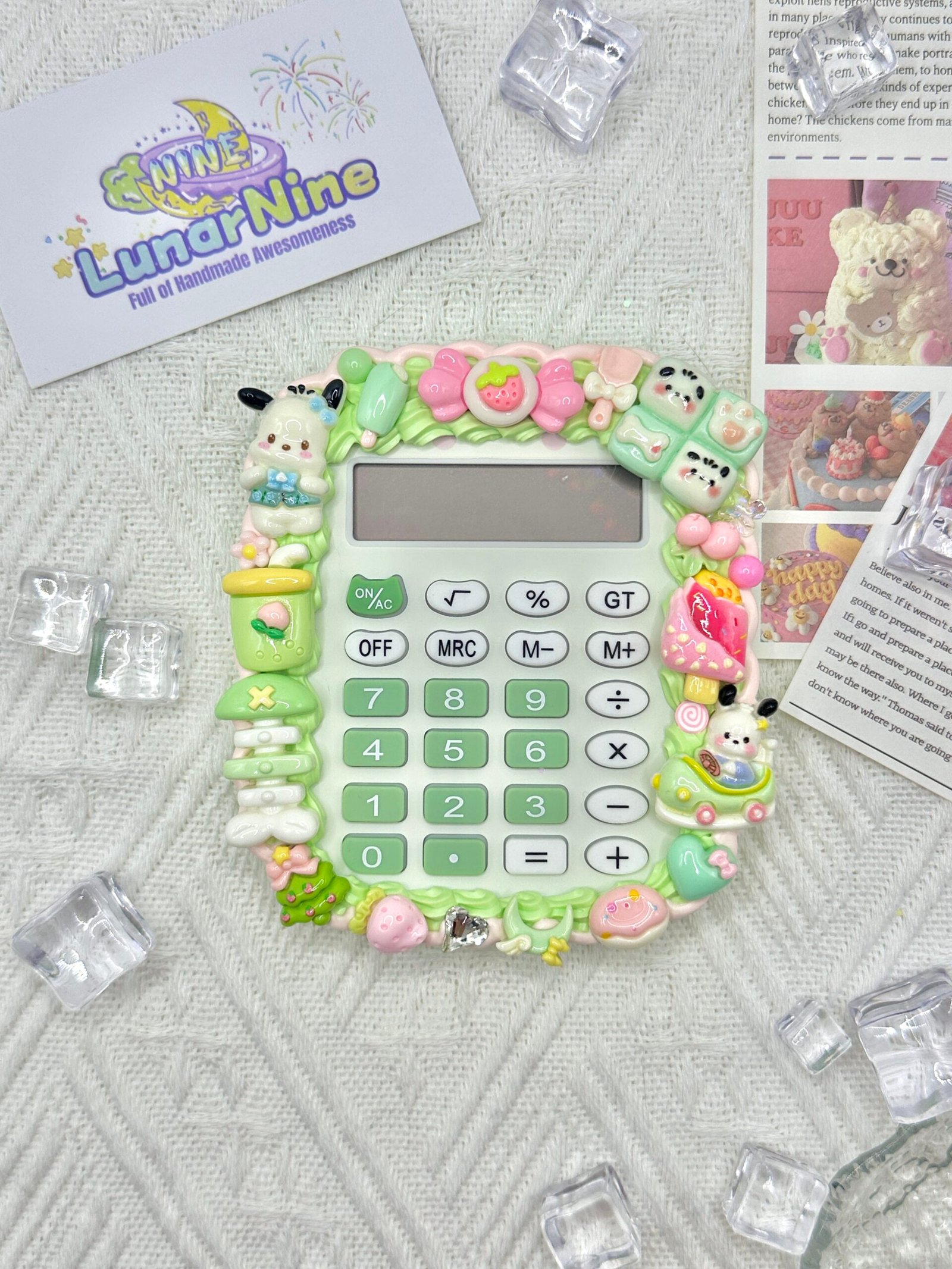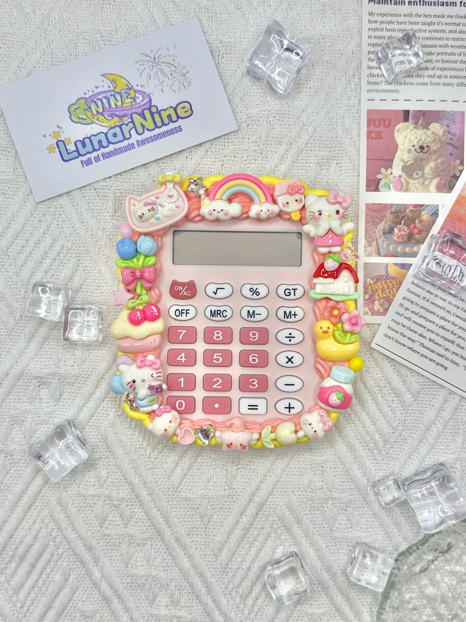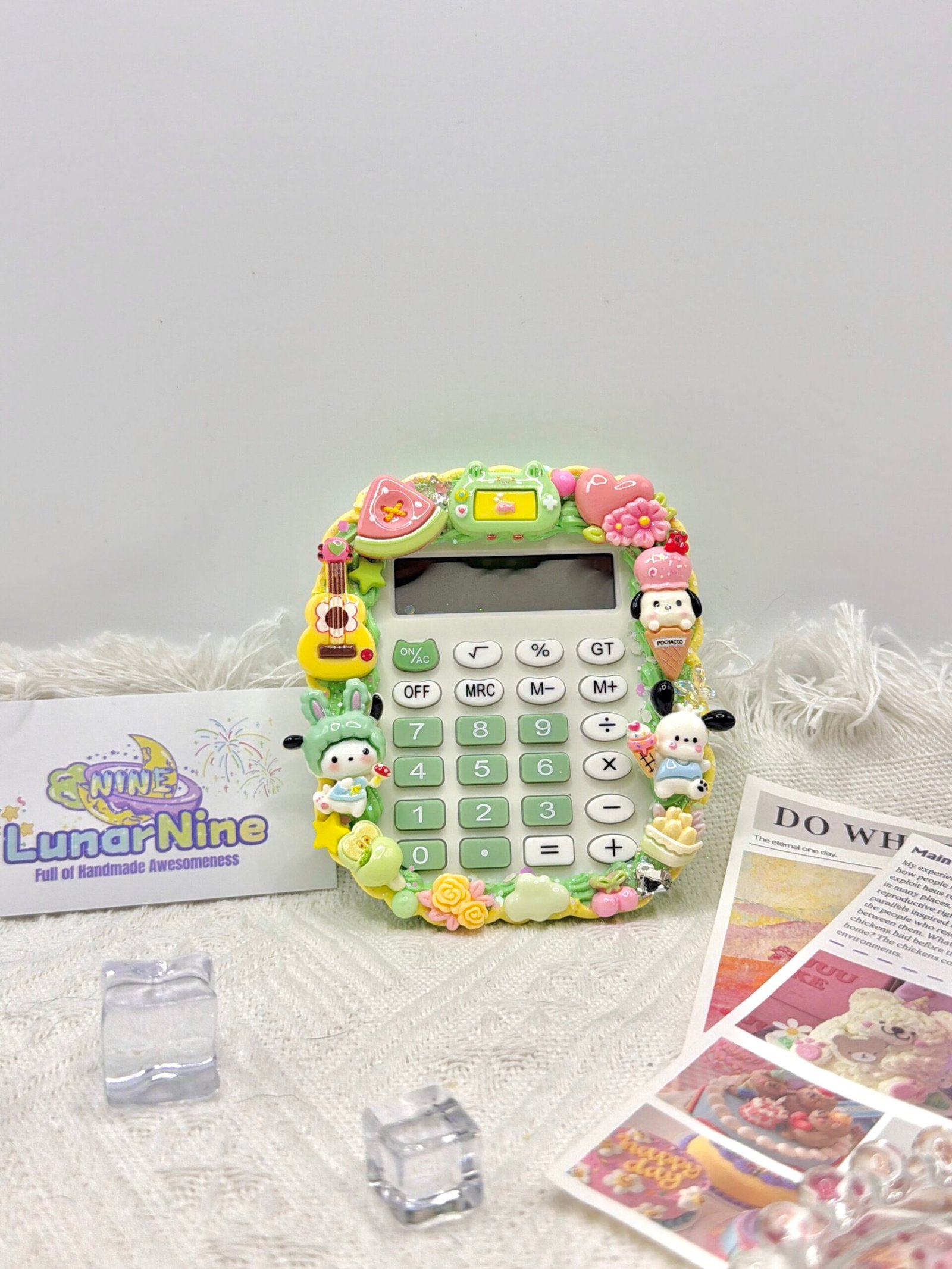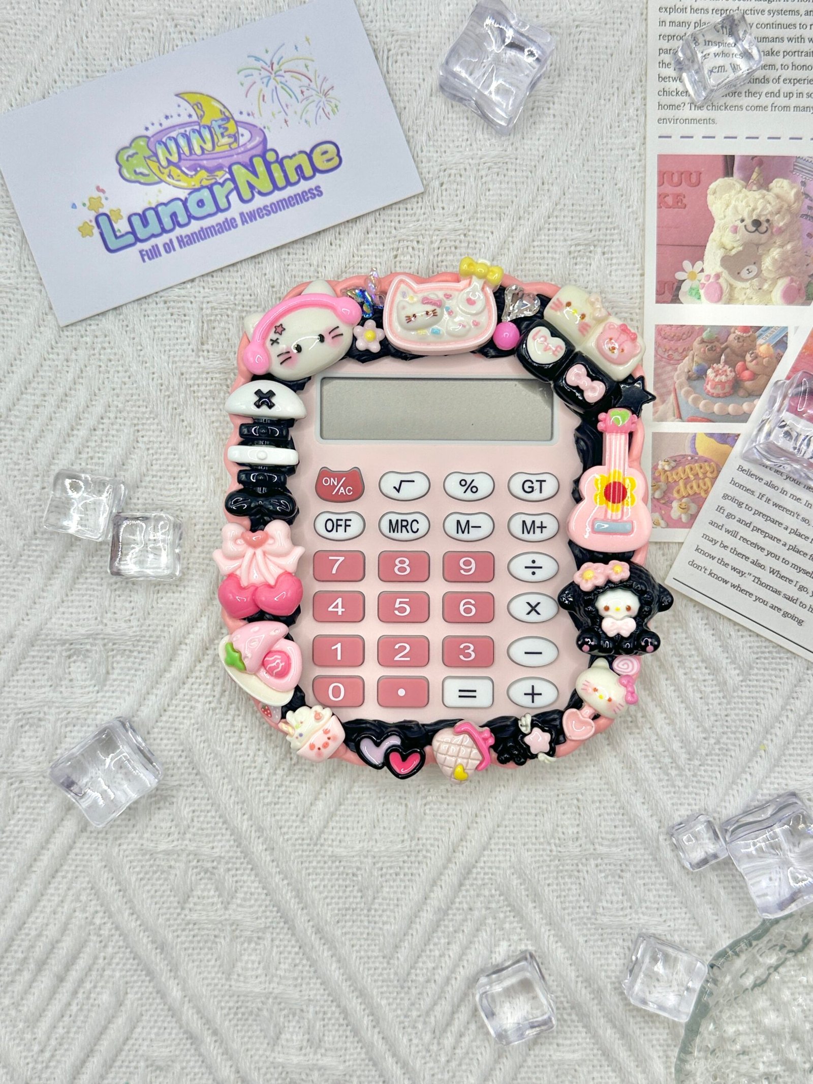 Make math magical with this Decoden Calculator, where function meets fabulous! Hand-decorated with fluffy cream glue, glittery charms, and pastel-perfect details, this kawaii essential turns everyday calculations into a joy.