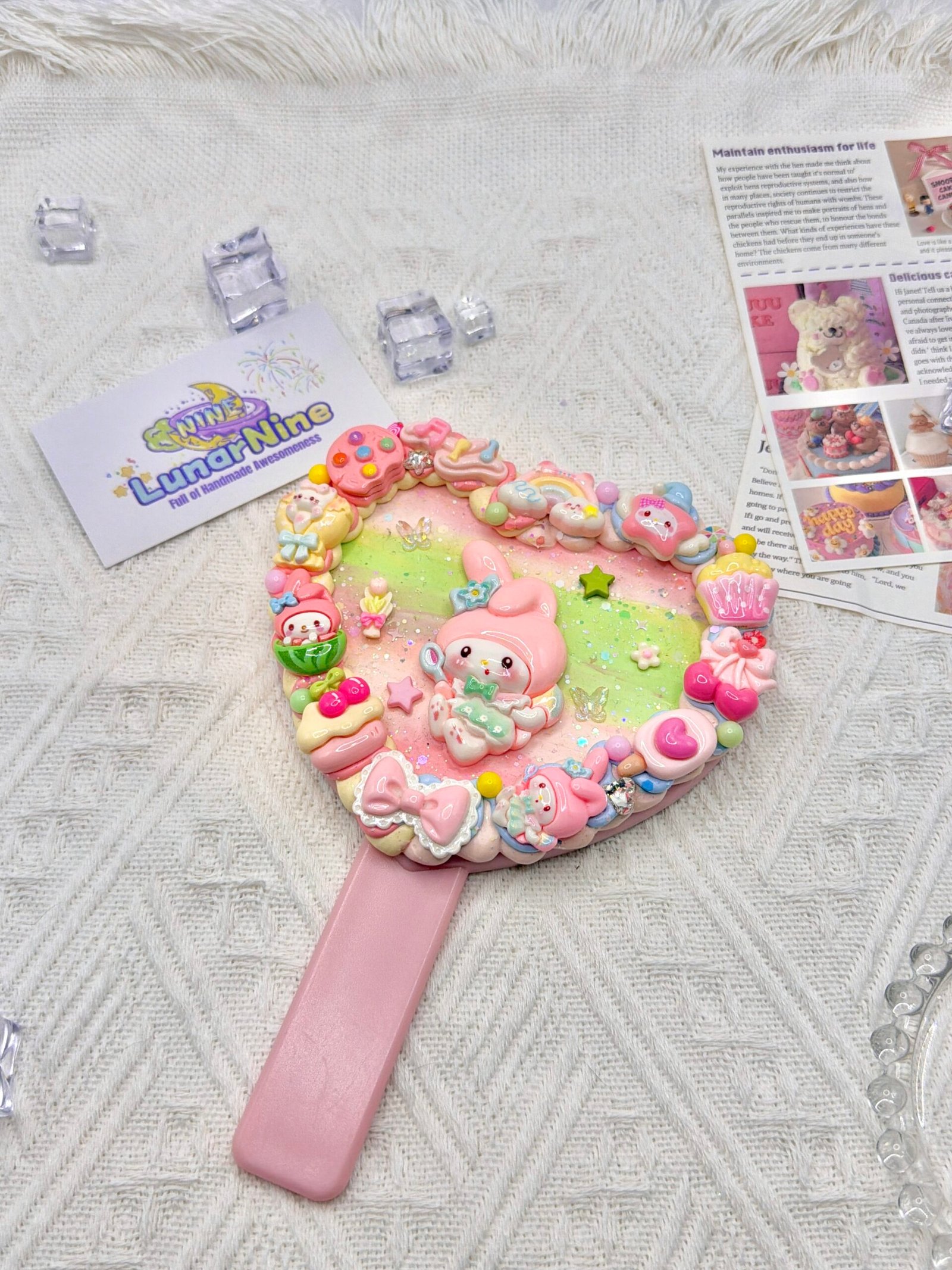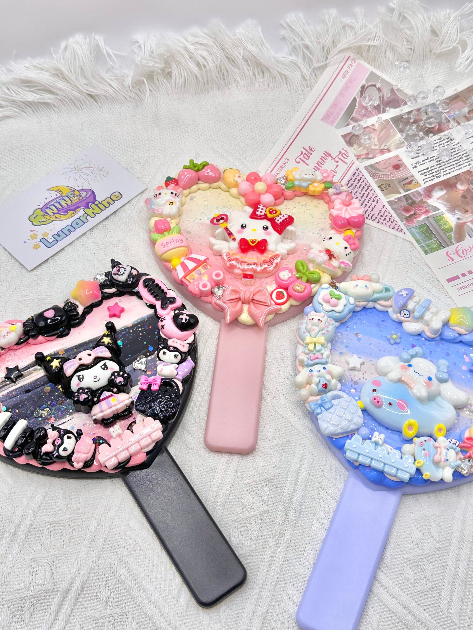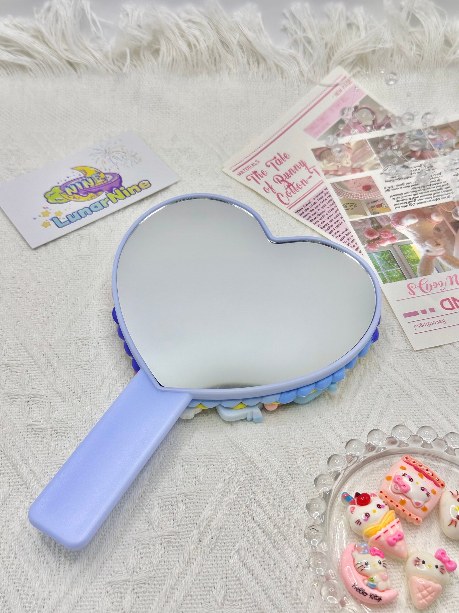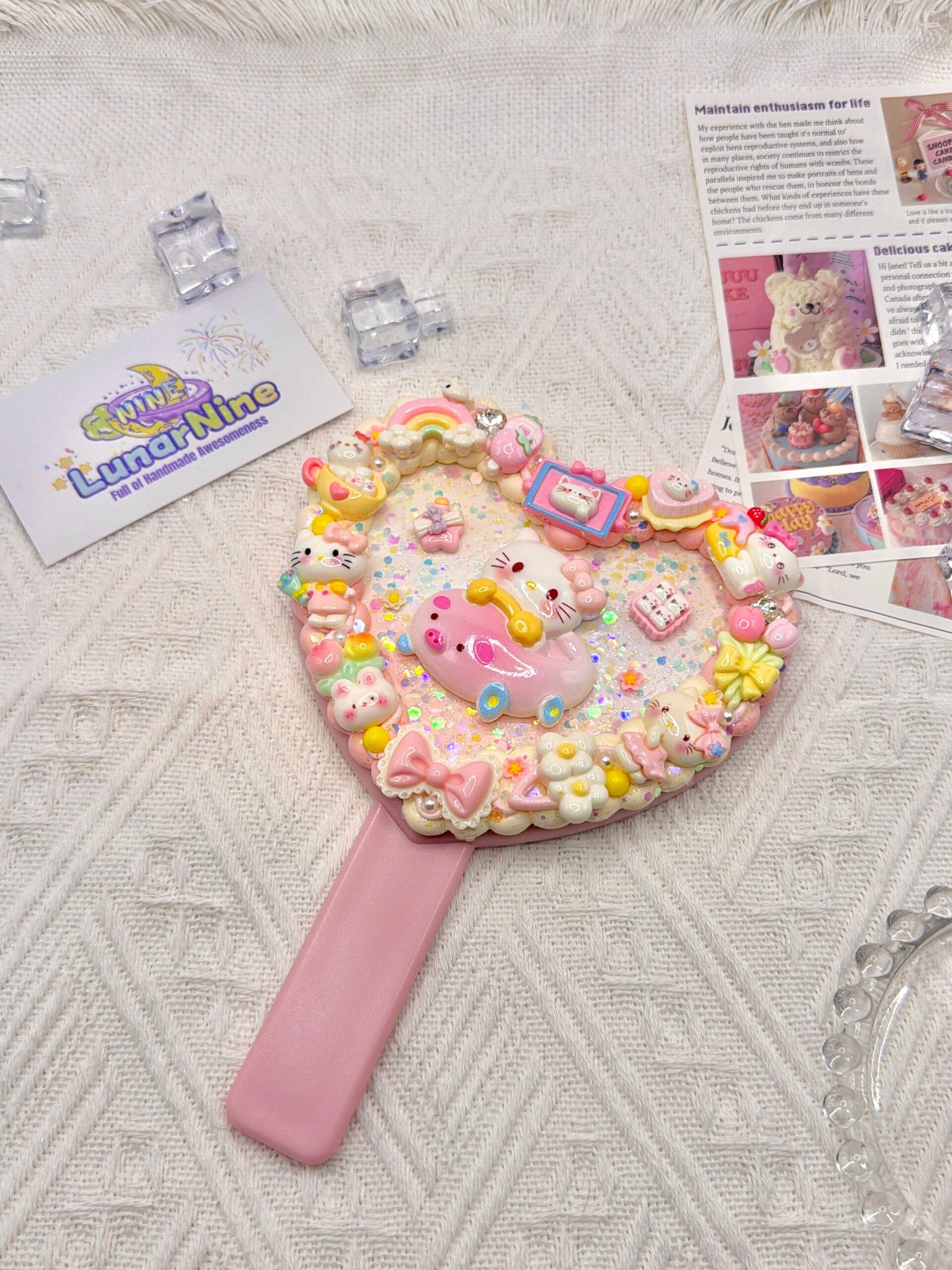 This Decoden Heart Handheld Mirror is sweet, stylish, and full of personality! Shaped like a heart and hand-decorated with whipped cream glue, sparkly charms, and dreamy details, it’s perfect for daily touch-ups or a cute addition to your vanity.