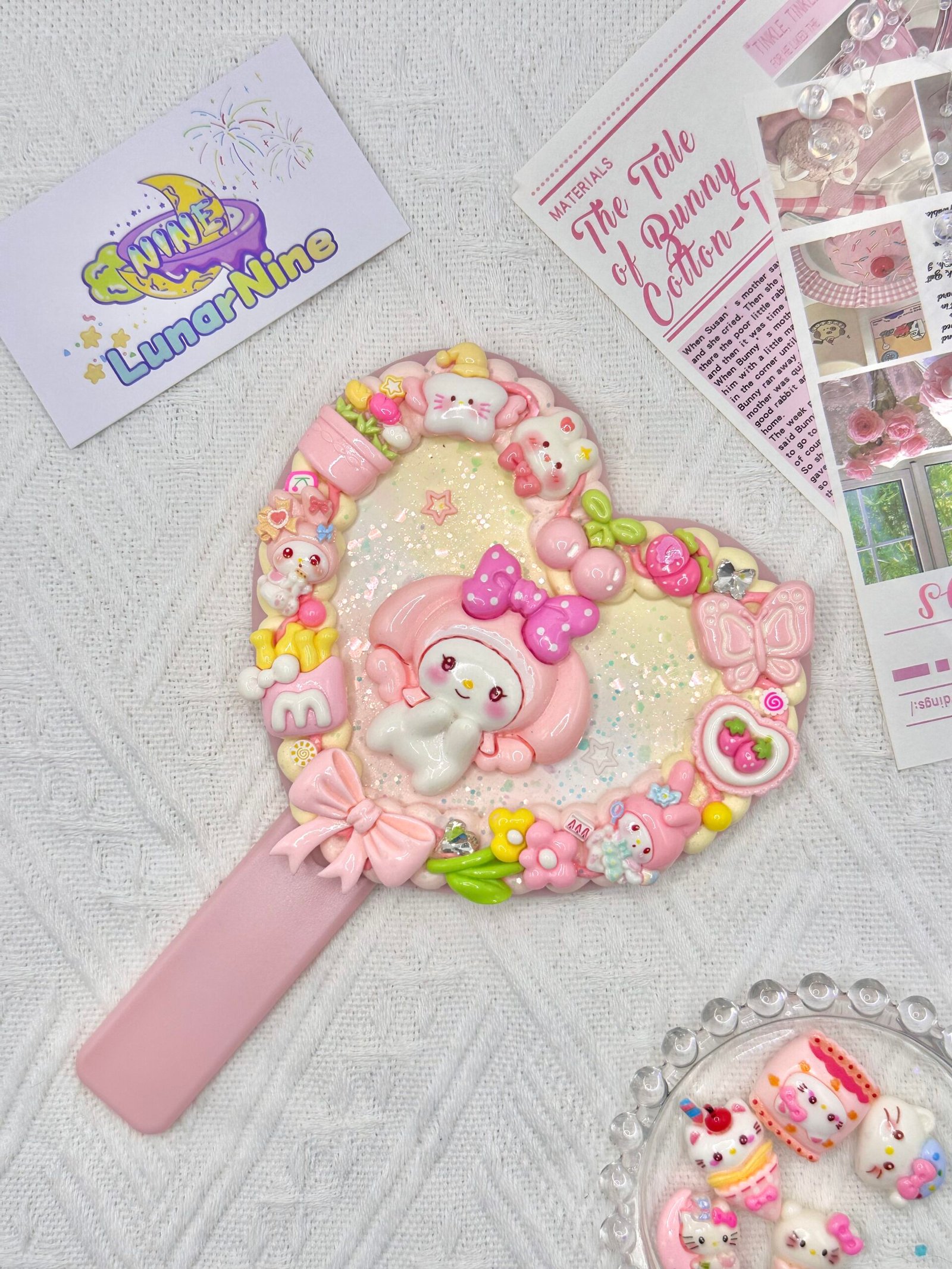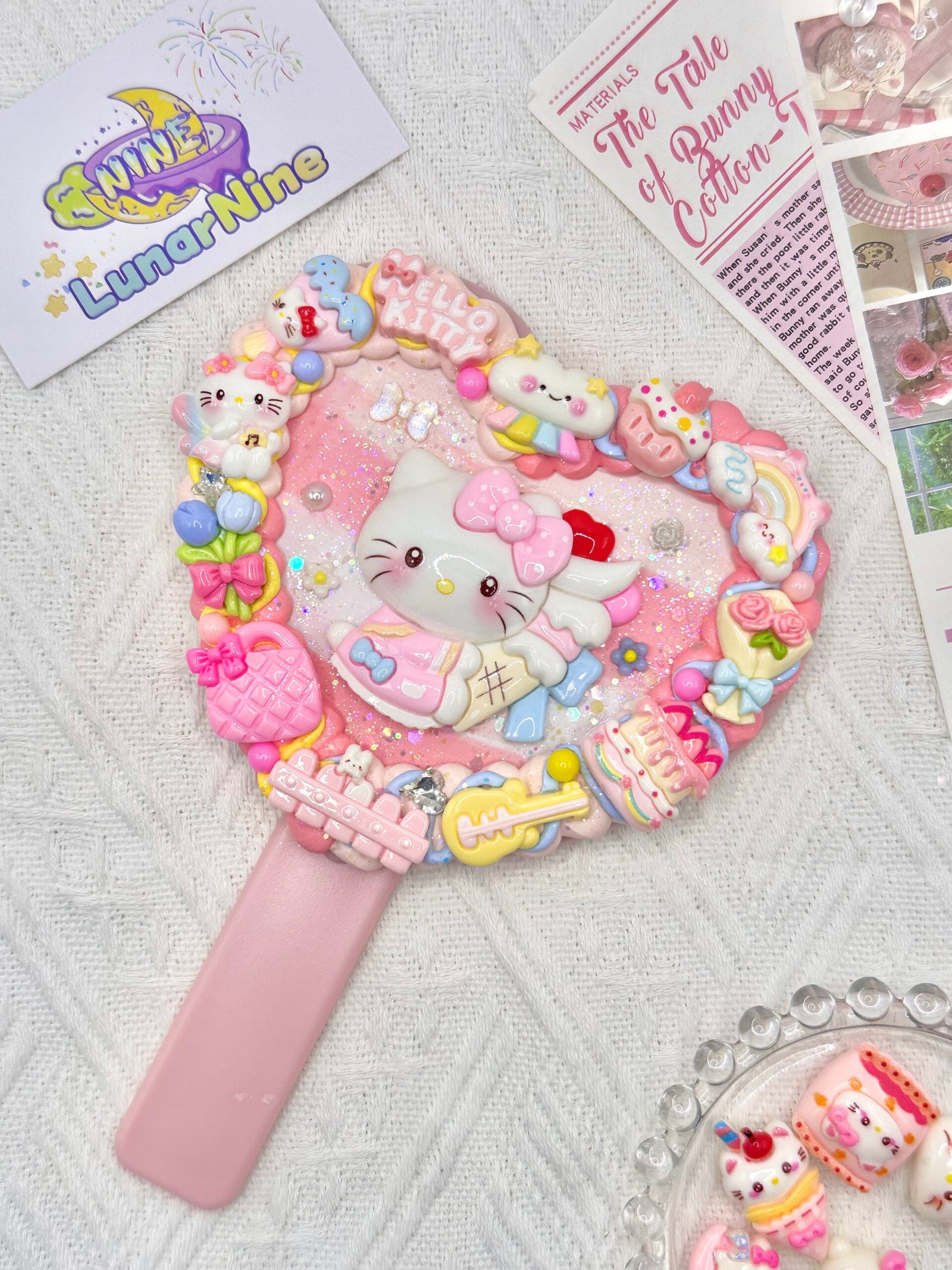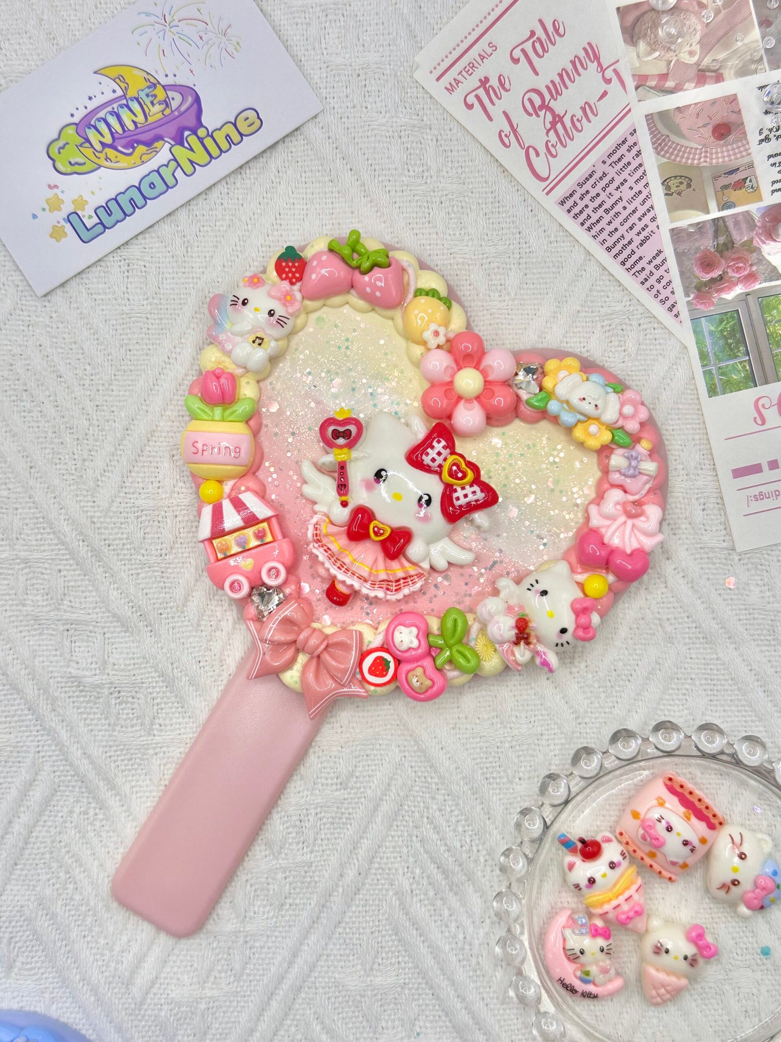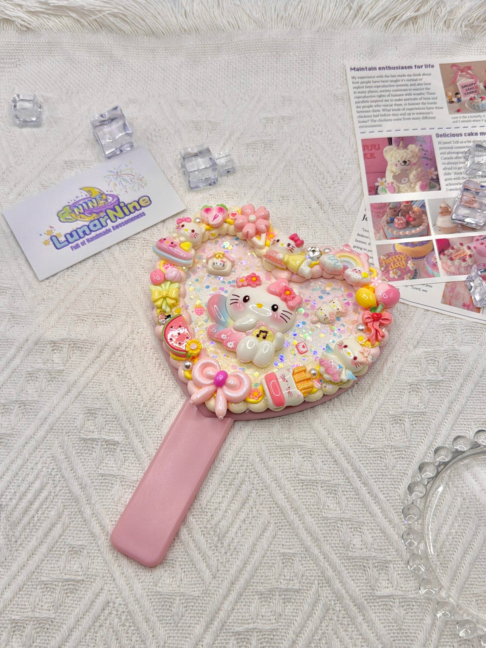 This Decoden Heart Handheld Mirror is sweet, stylish, and full of personality! Shaped like a heart and hand-decorated with whipped cream glue, sparkly charms, and dreamy details, it’s perfect for daily touch-ups or a cute addition to your vanity.