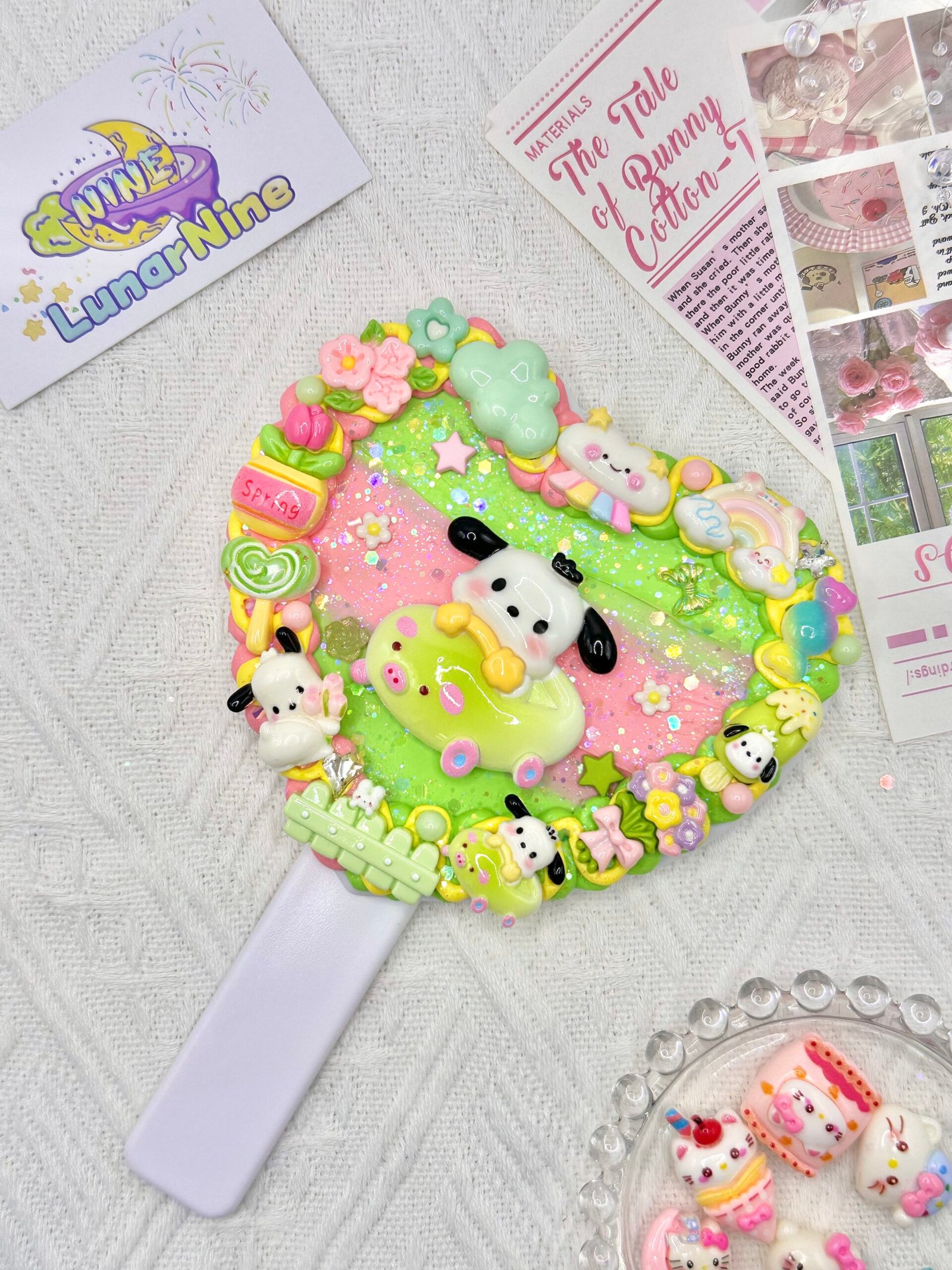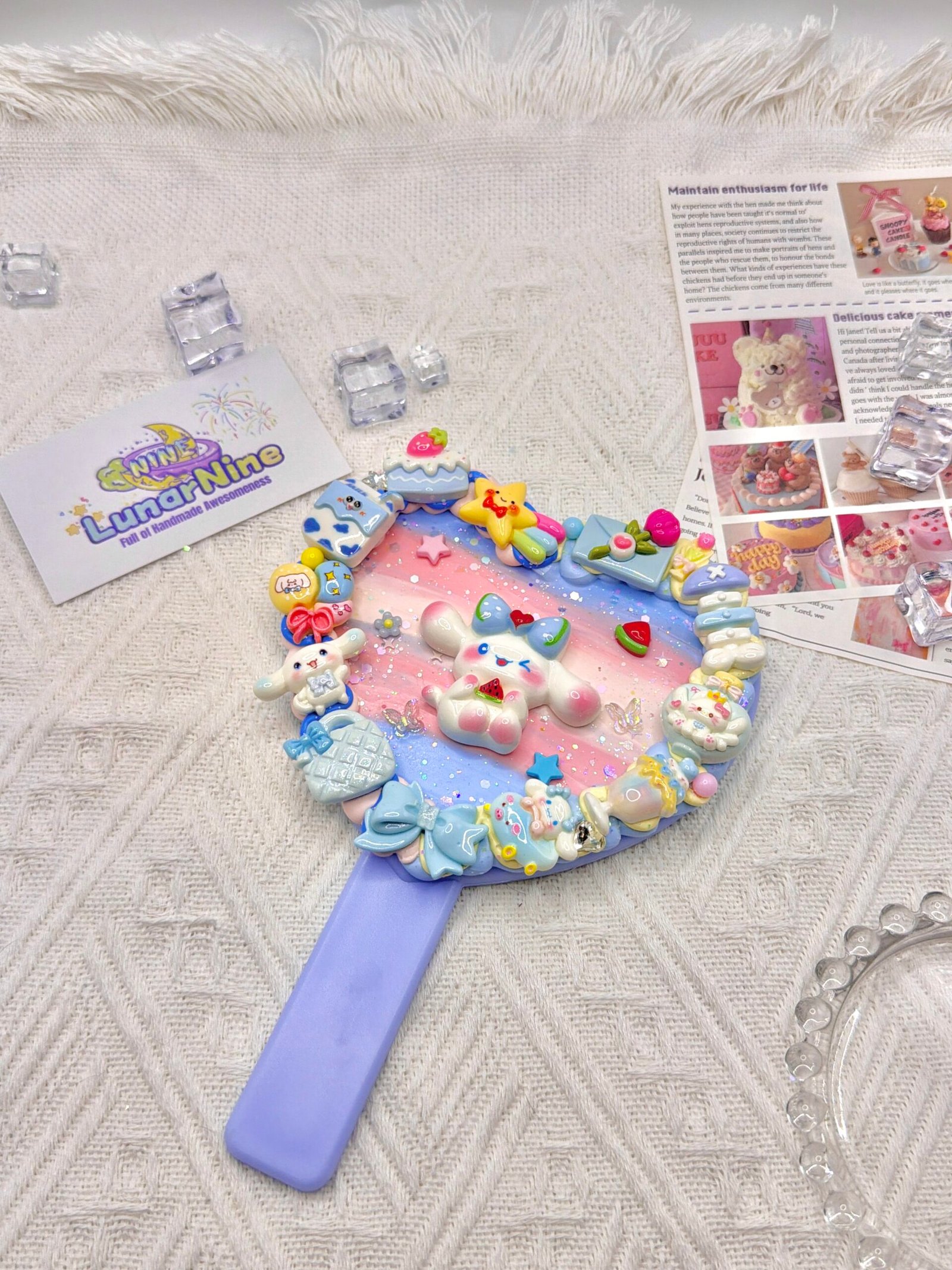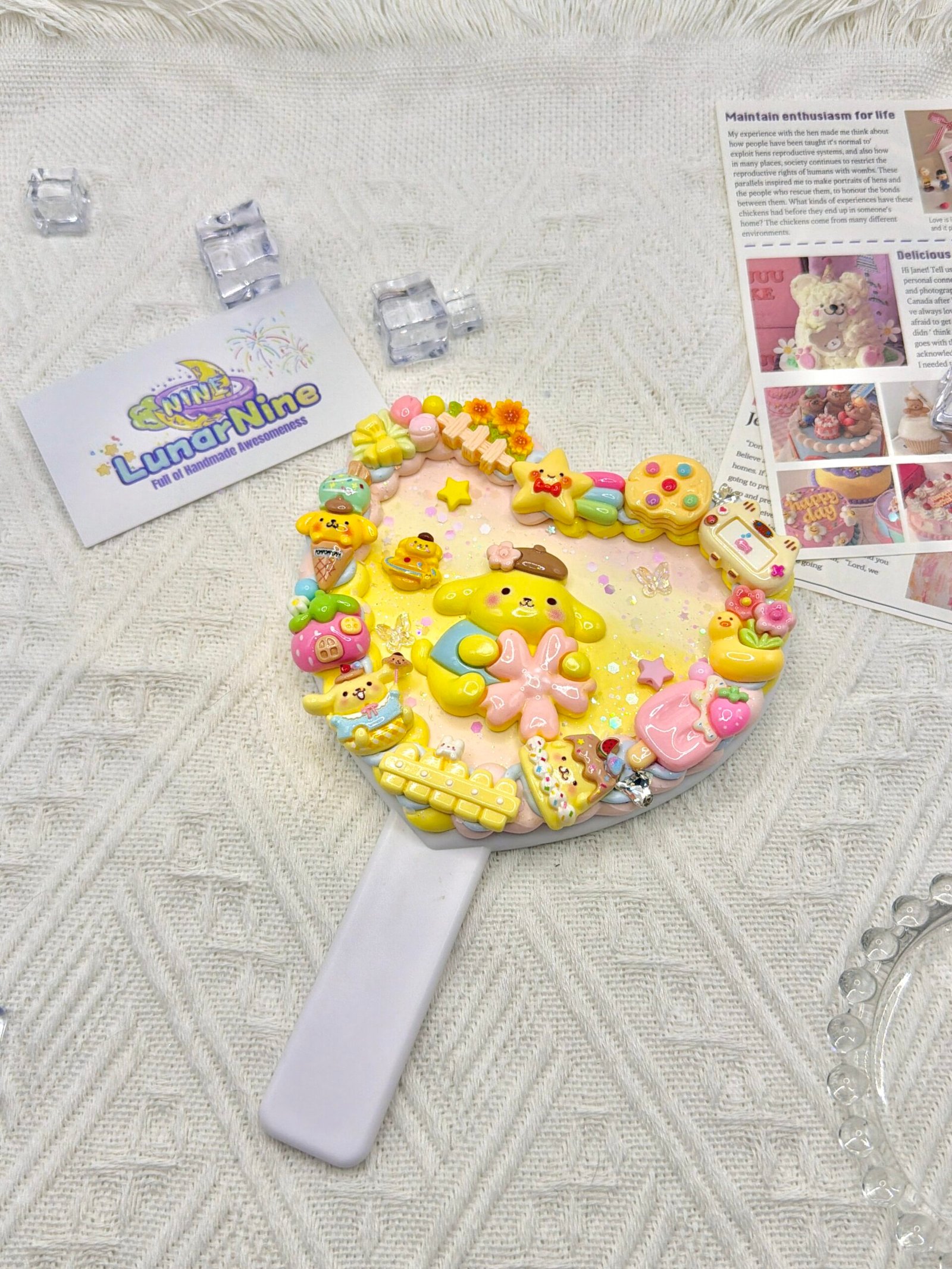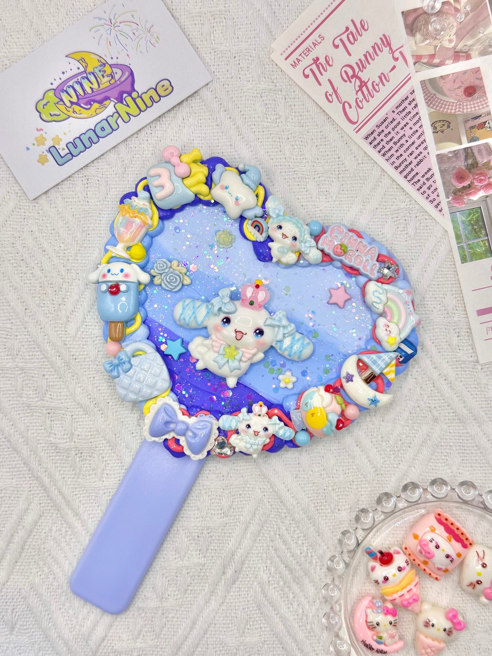 This Decoden Heart Handheld Mirror is sweet, stylish, and full of personality! Shaped like a heart and hand-decorated with whipped cream glue, sparkly charms, and dreamy details, it’s perfect for daily touch-ups or a cute addition to your vanity.