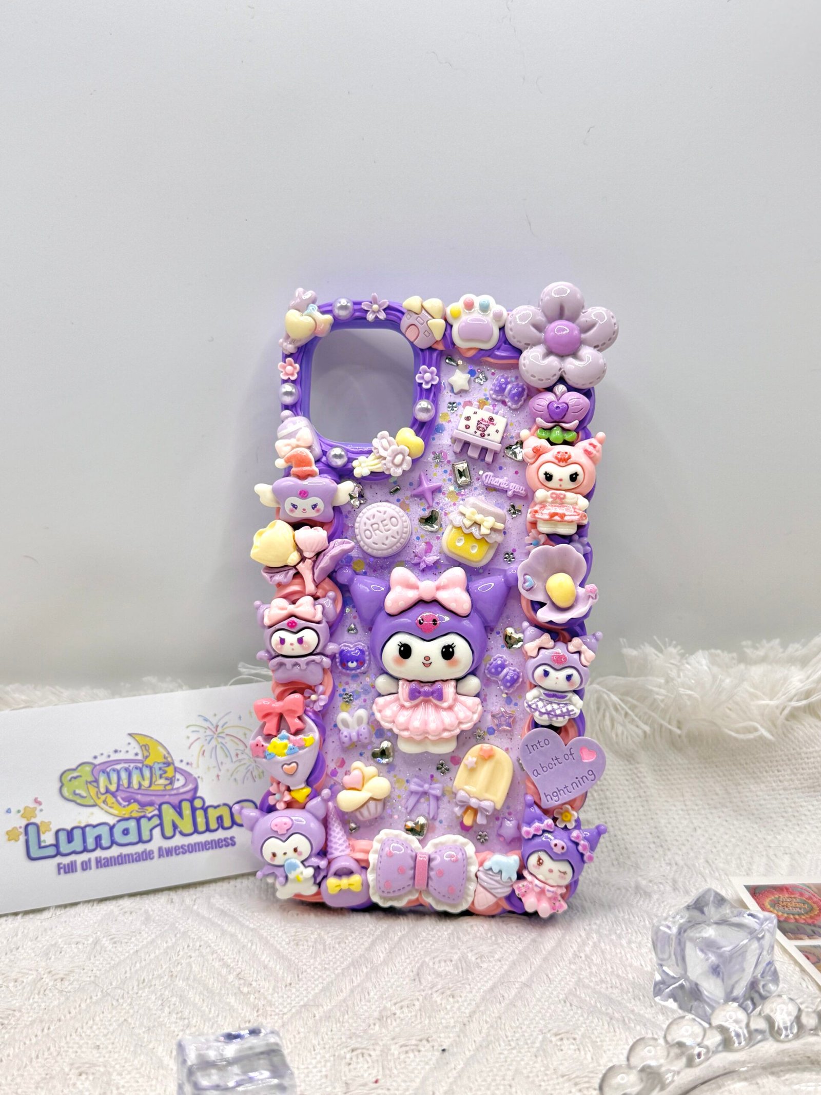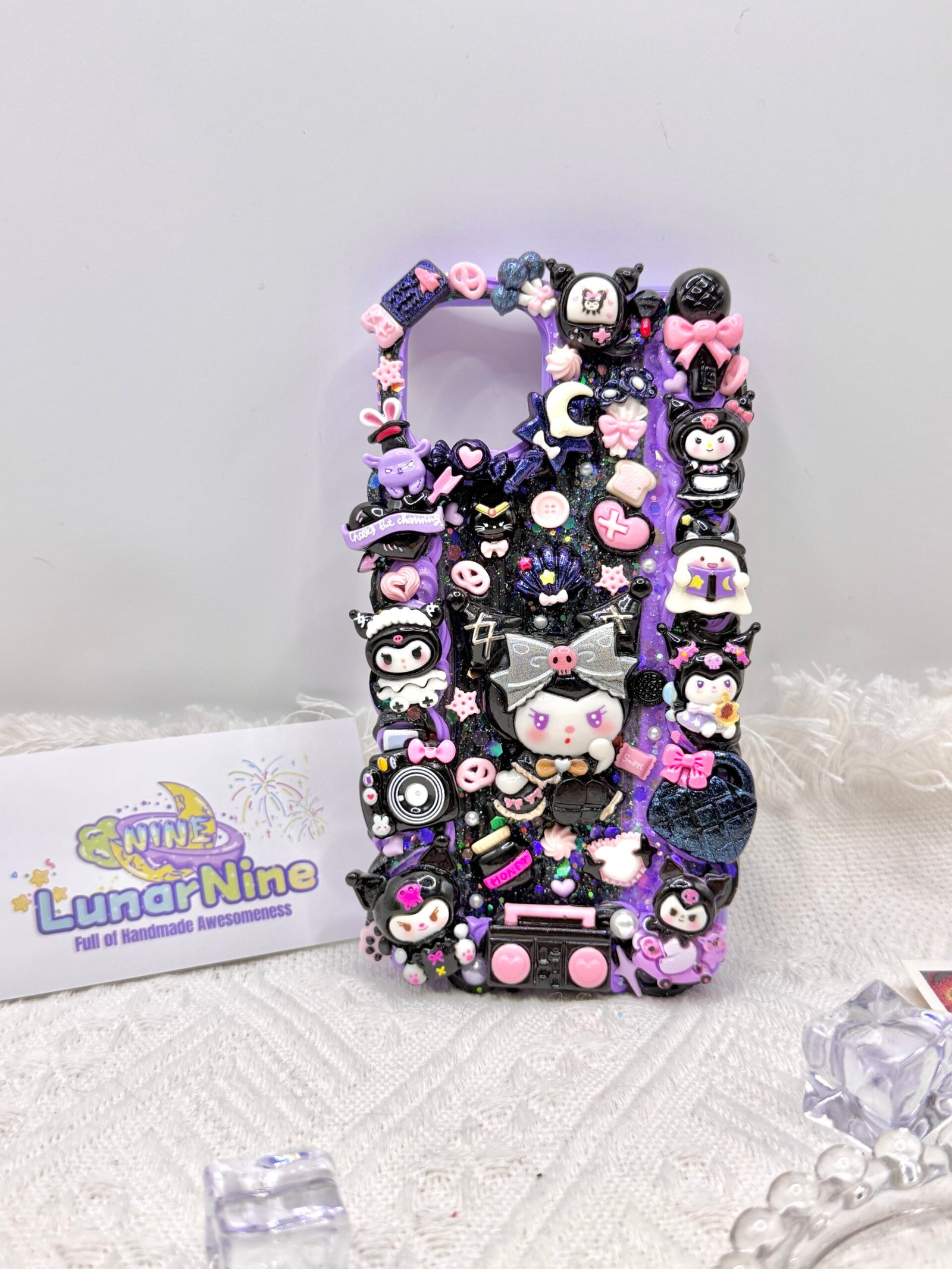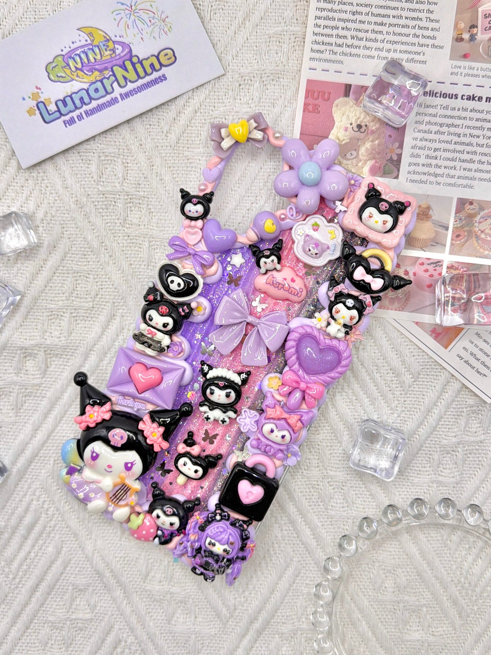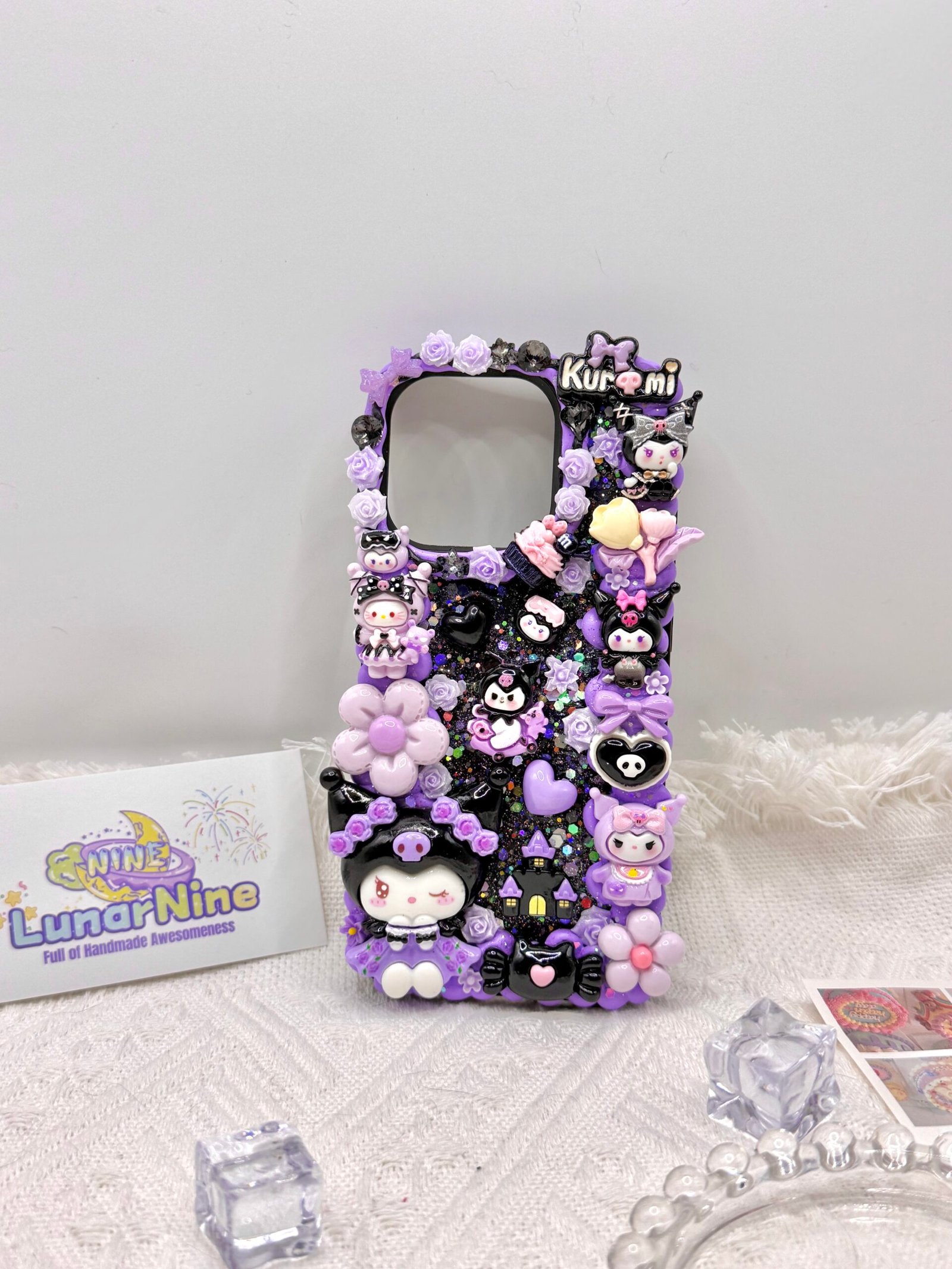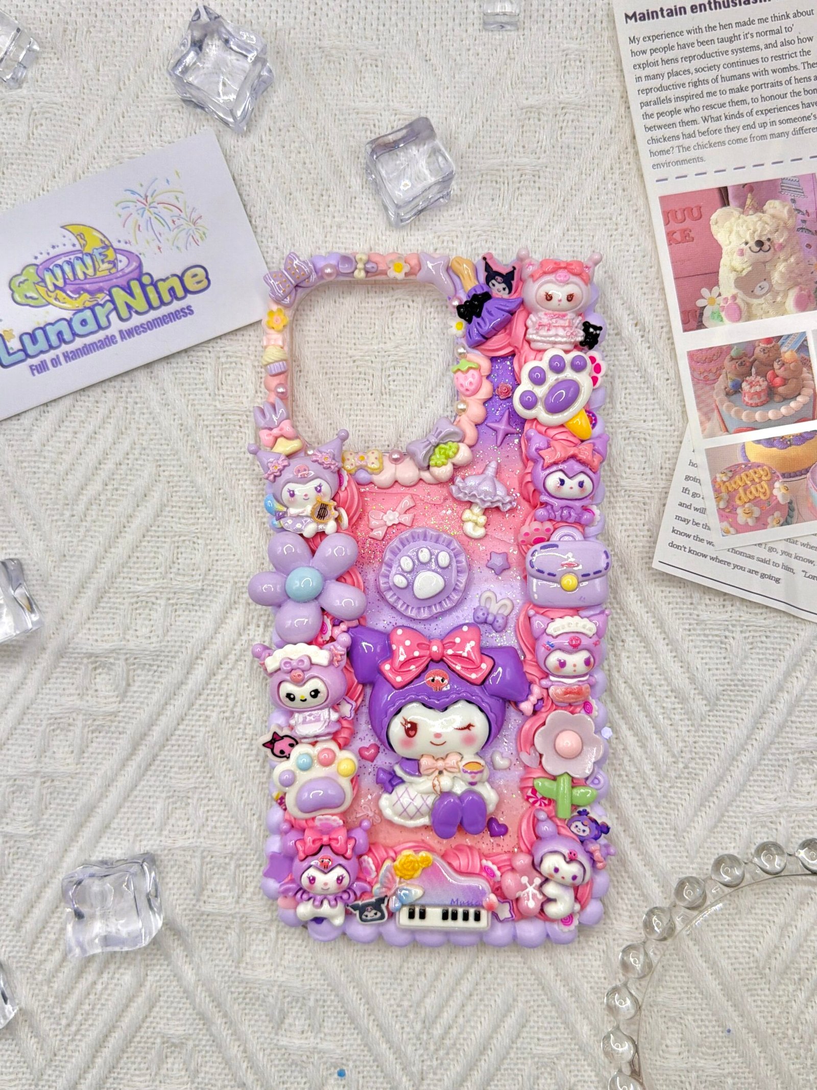 Show off your bold kawaii style with this Decoden Kuromi Phone Case! Each case is handmade with fluffy cream glue, sparkly accents, gothic-cute charms, and Kuromi details for the perfect mix of sweet and sassy.