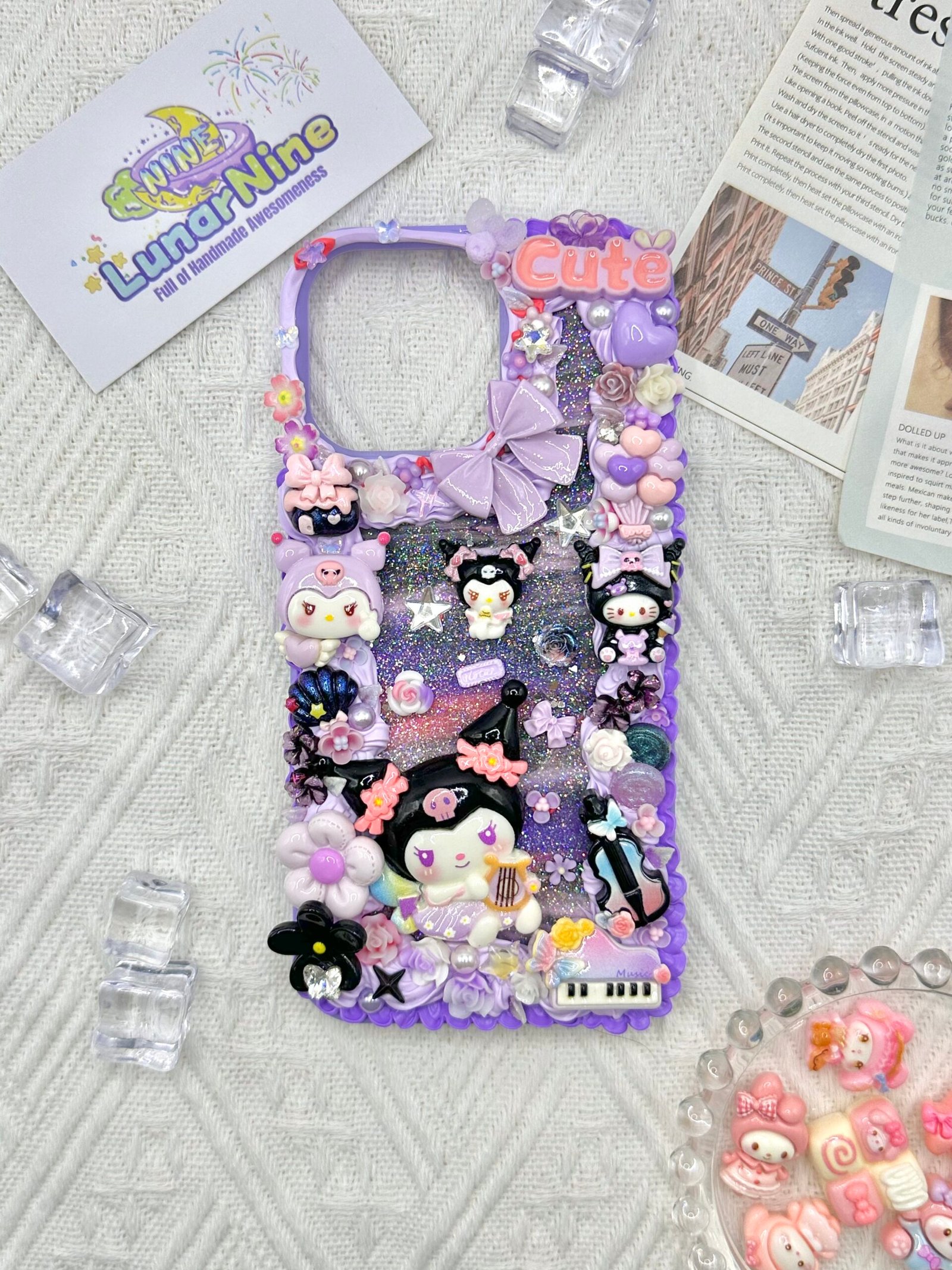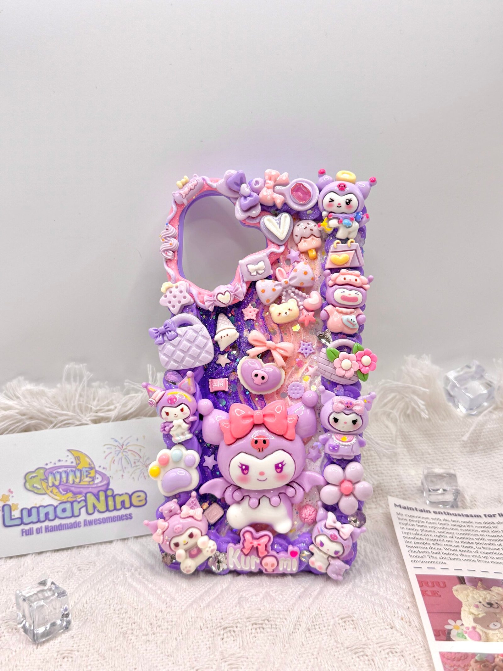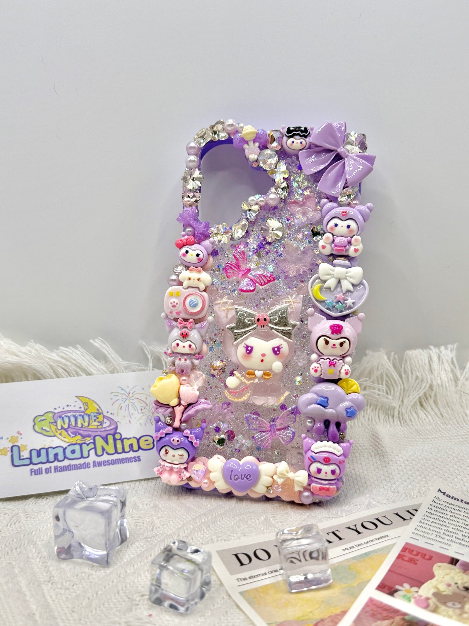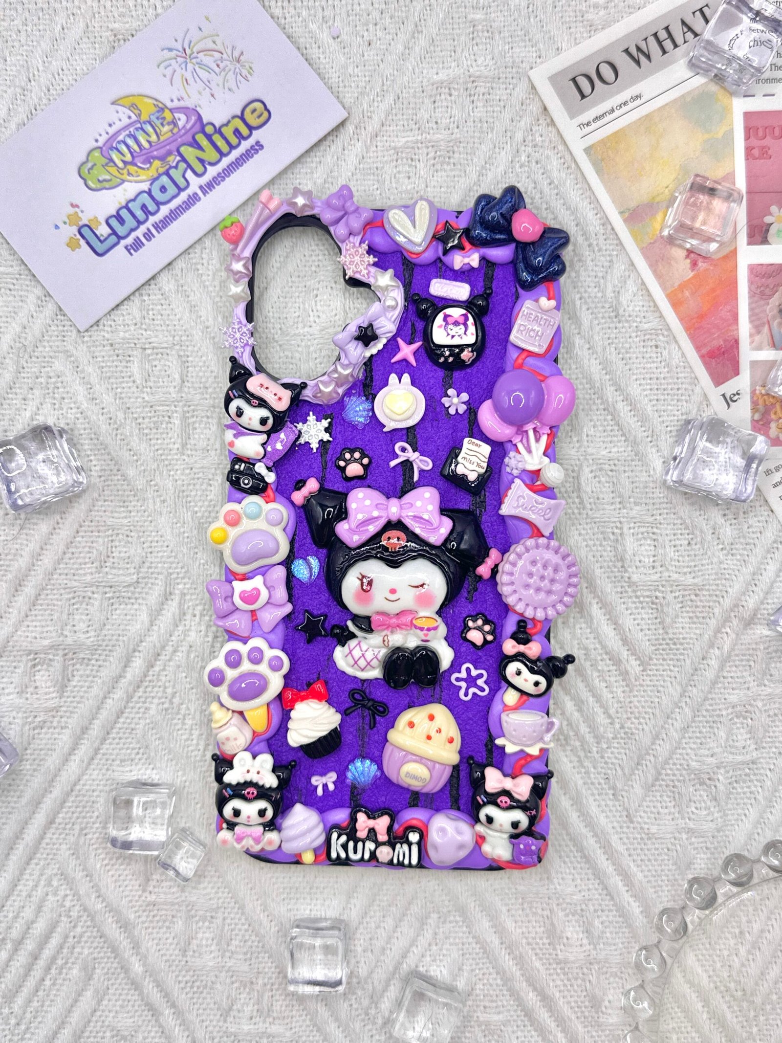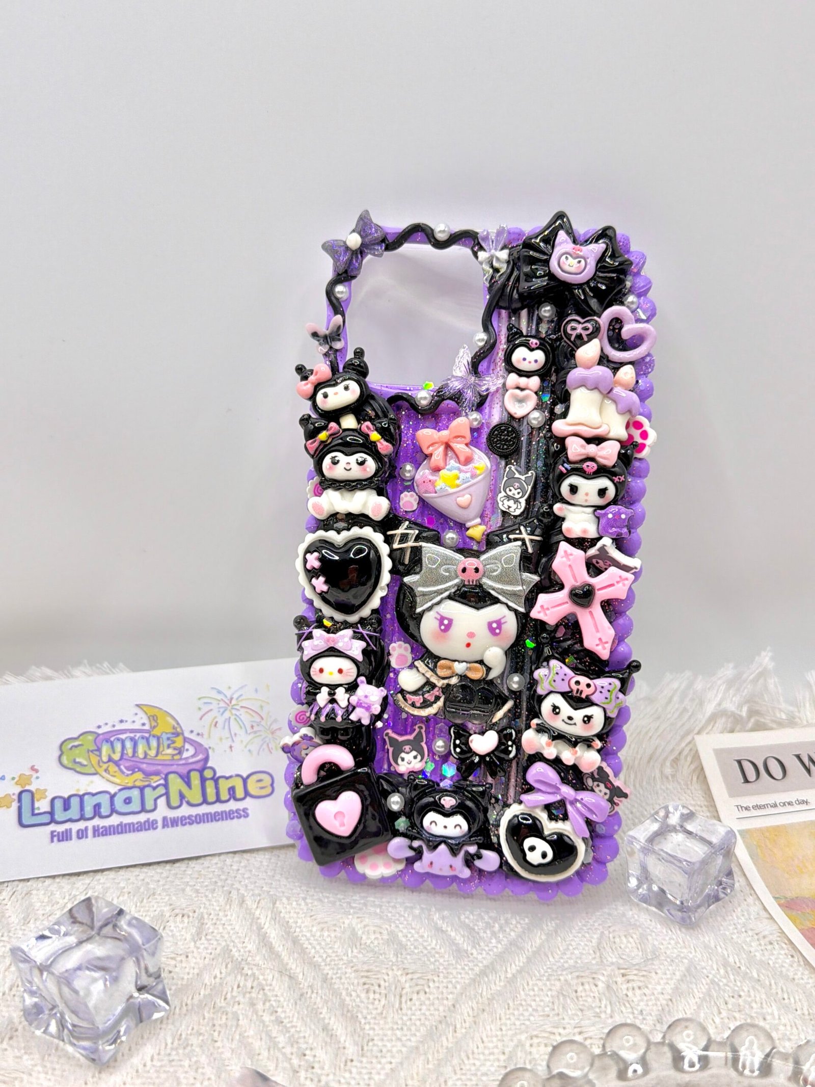 Show off your bold kawaii style with this Decoden Kuromi Phone Case! Each case is handmade with fluffy cream glue, sparkly accents, gothic-cute charms, and Kuromi details for the perfect mix of sweet and sassy.