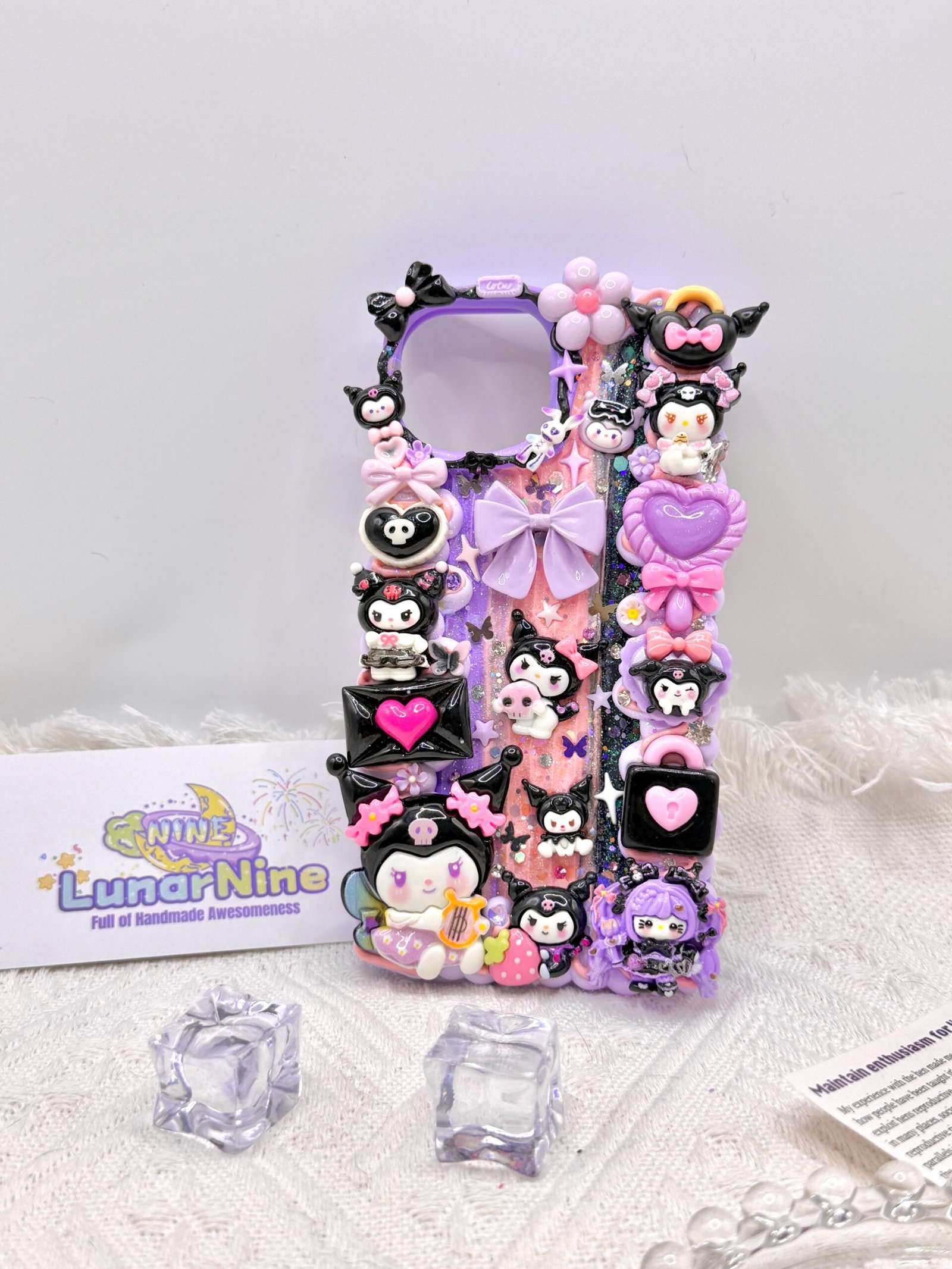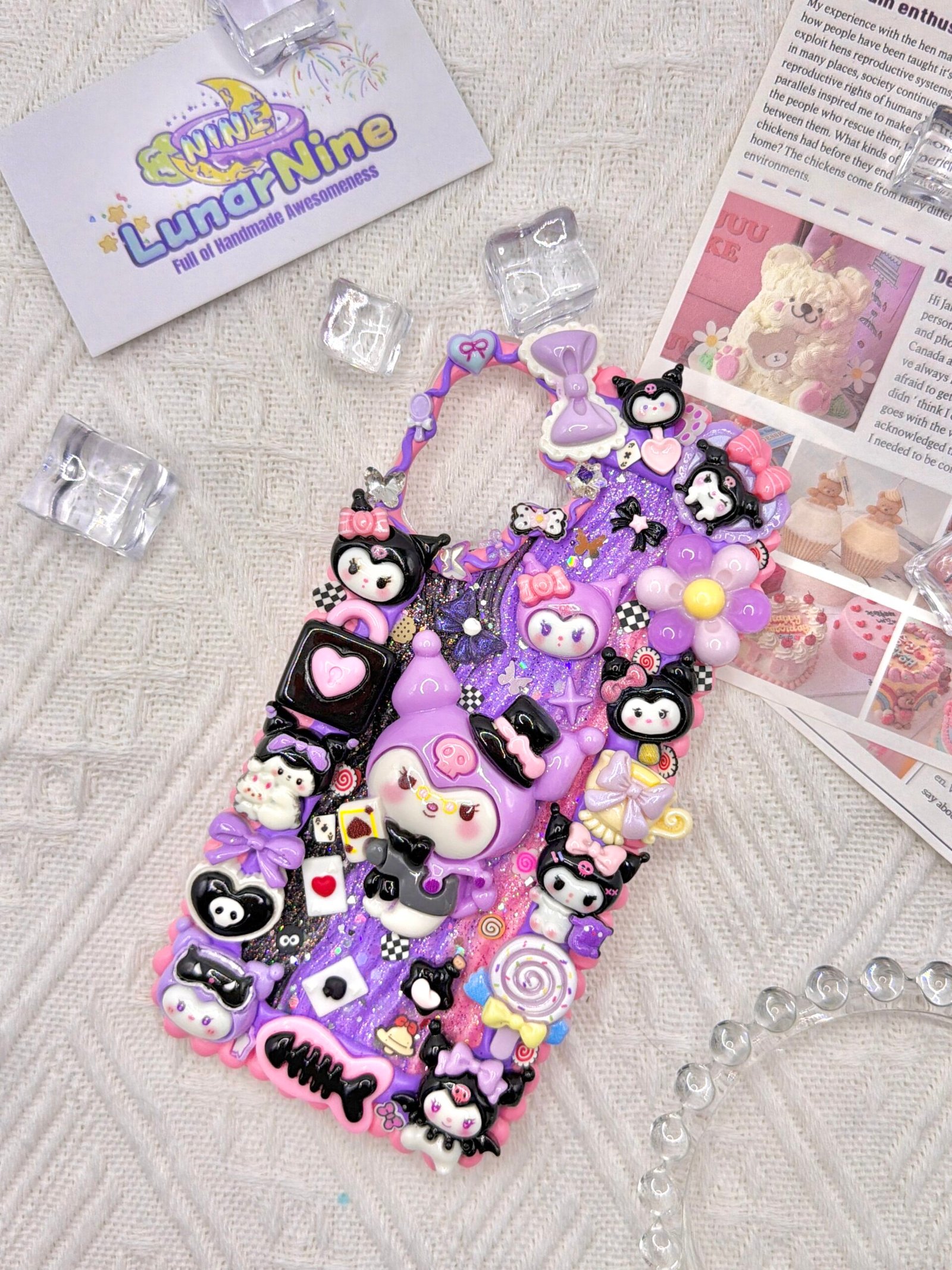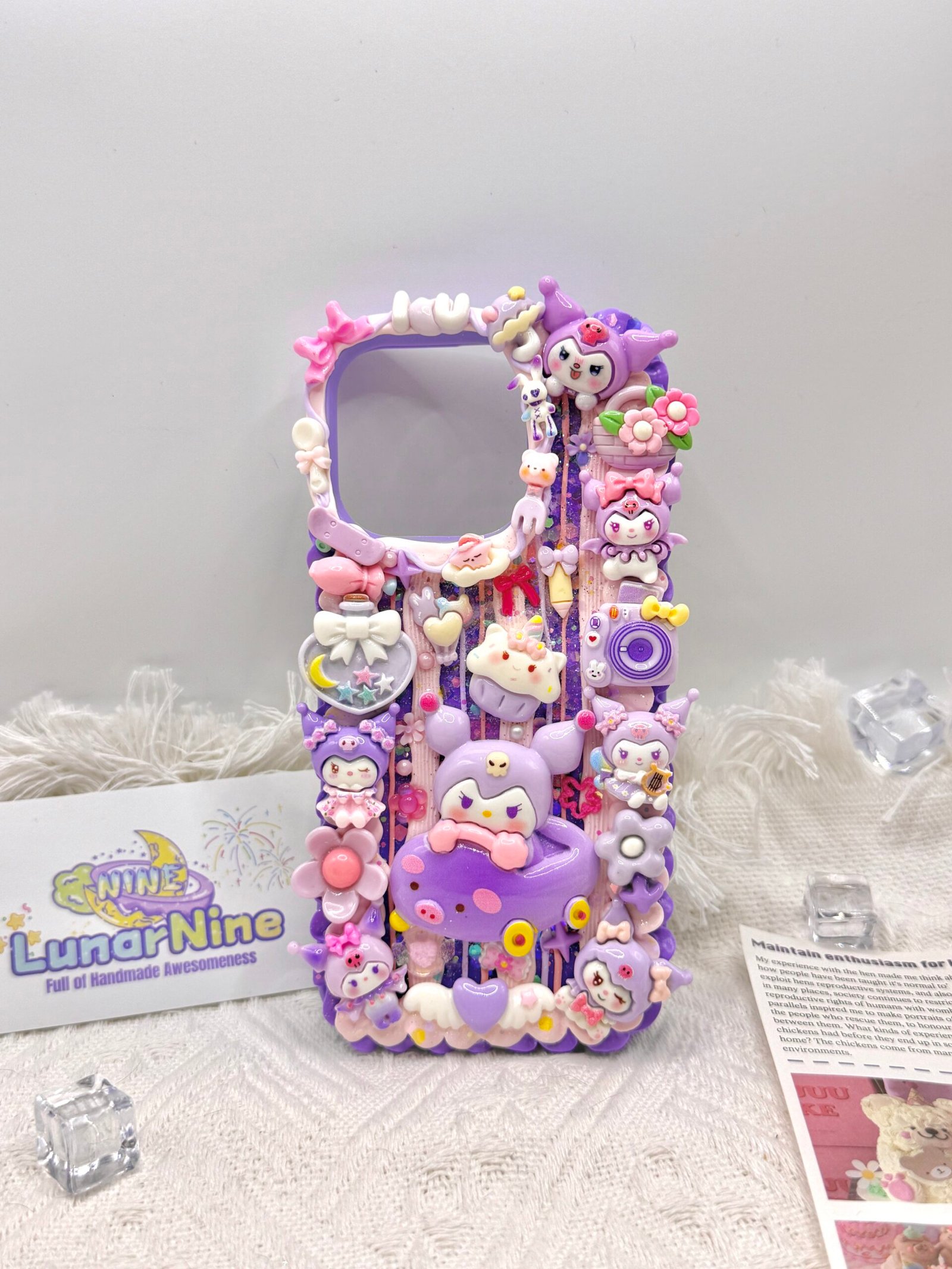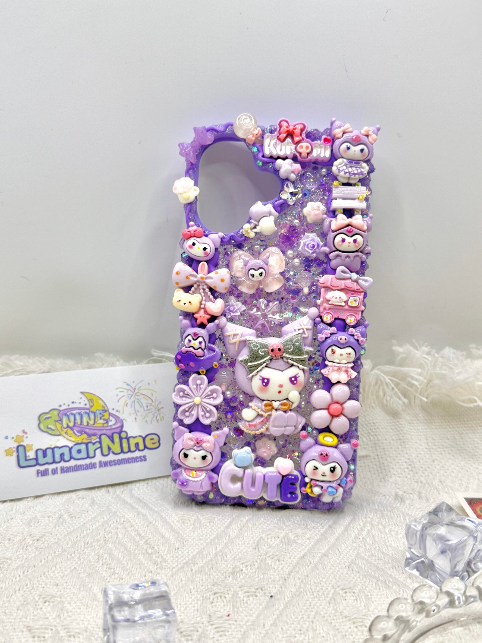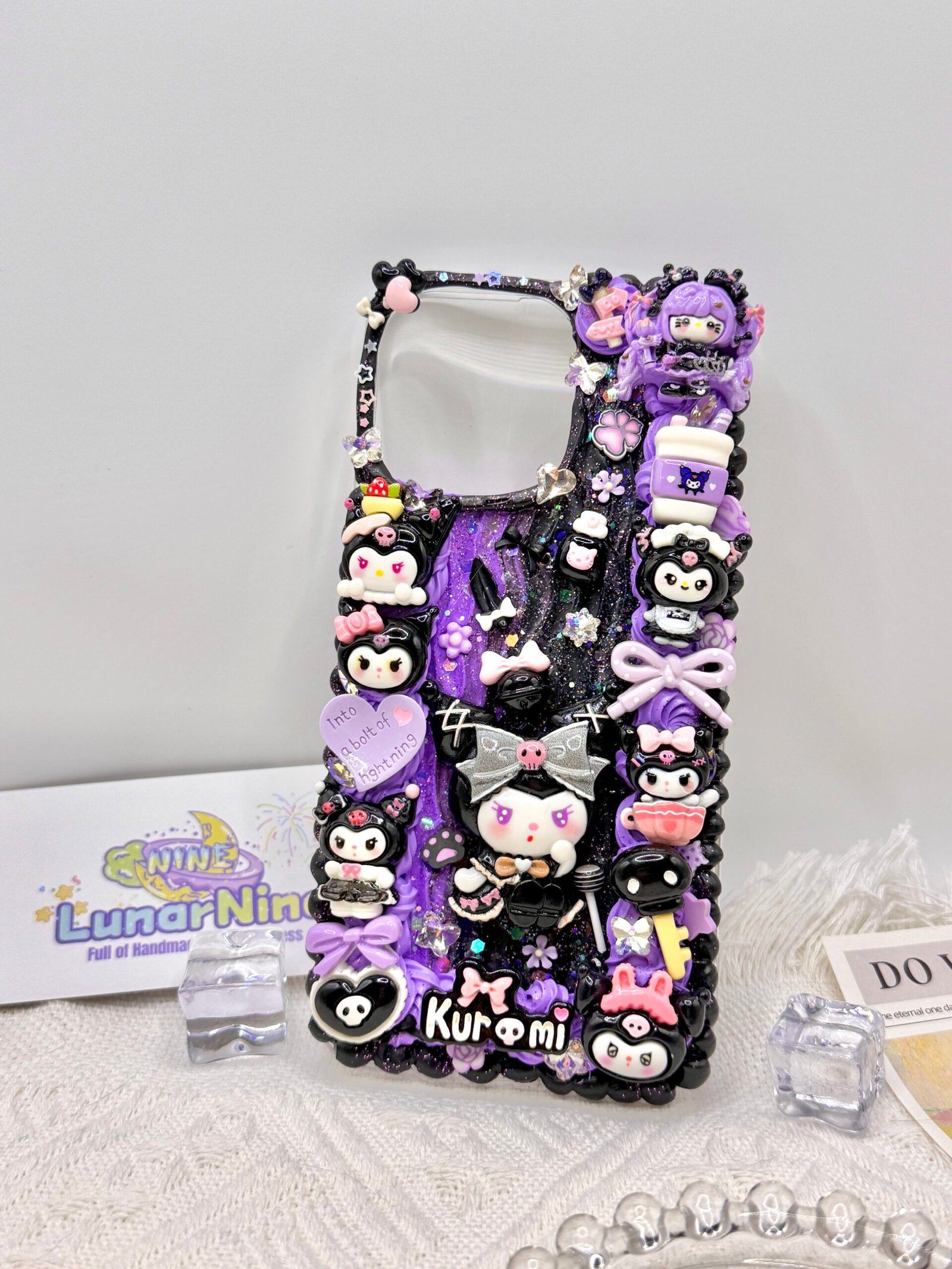 Show off your bold kawaii style with this Decoden Kuromi Phone Case! Each case is handmade with fluffy cream glue, sparkly accents, gothic-cute charms, and Kuromi details for the perfect mix of sweet and sassy.