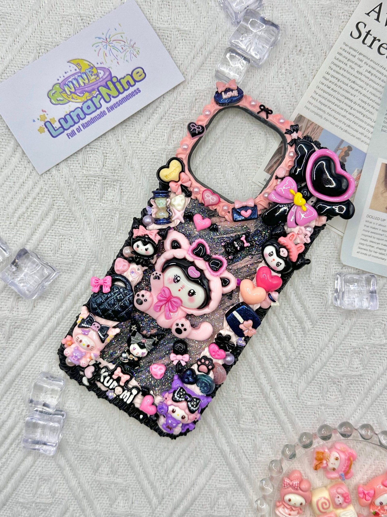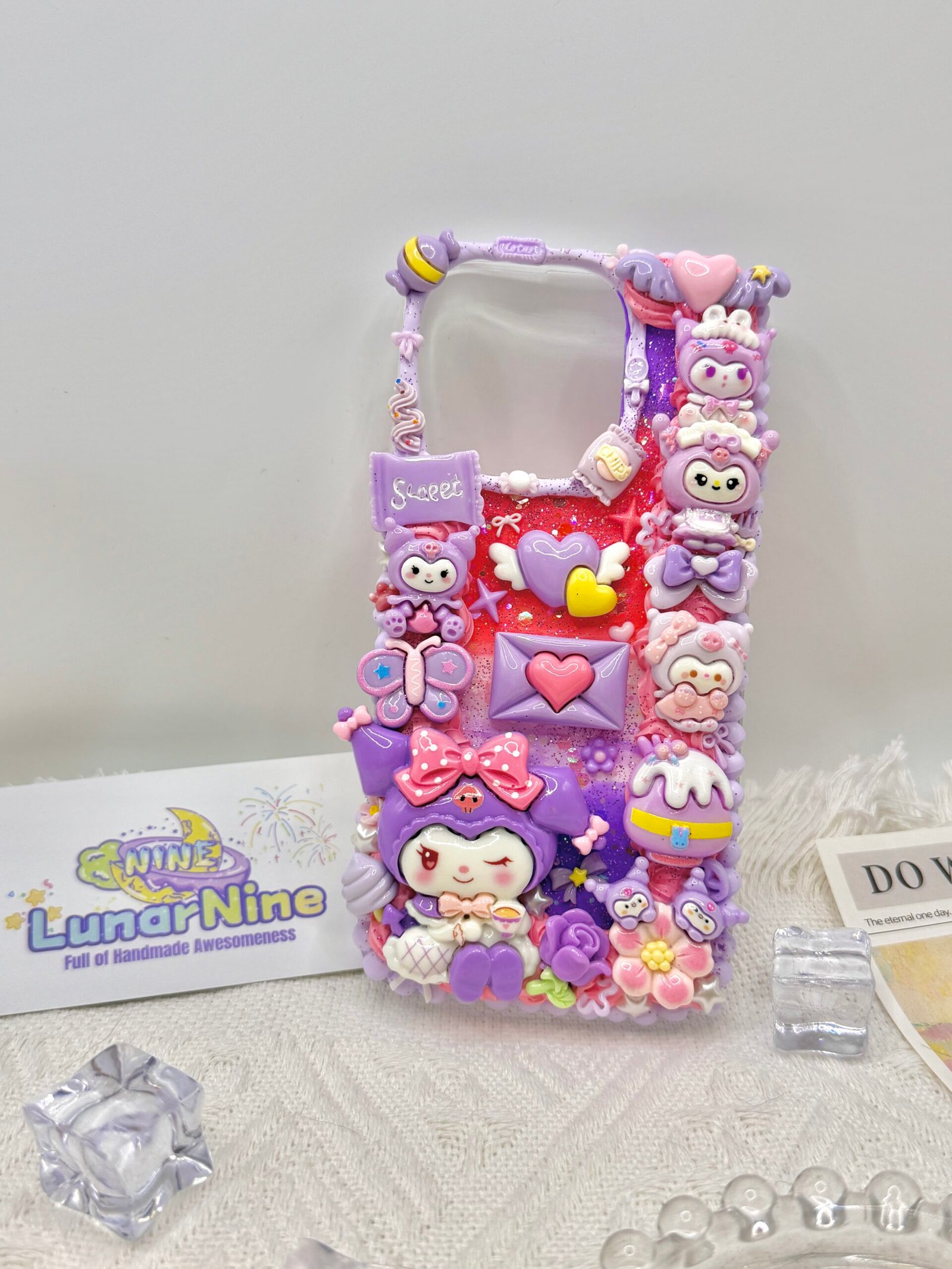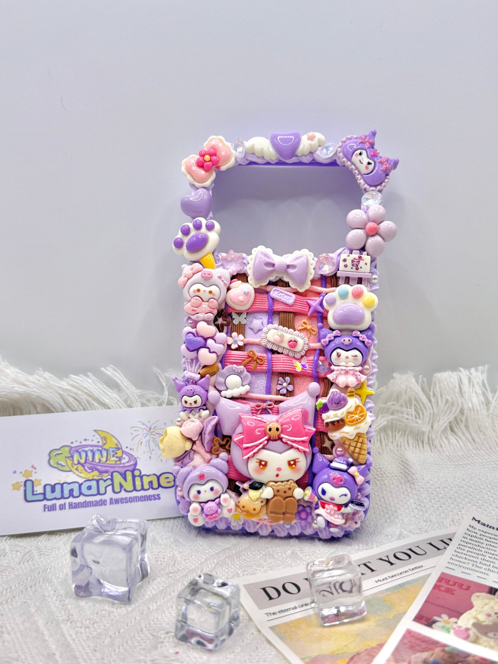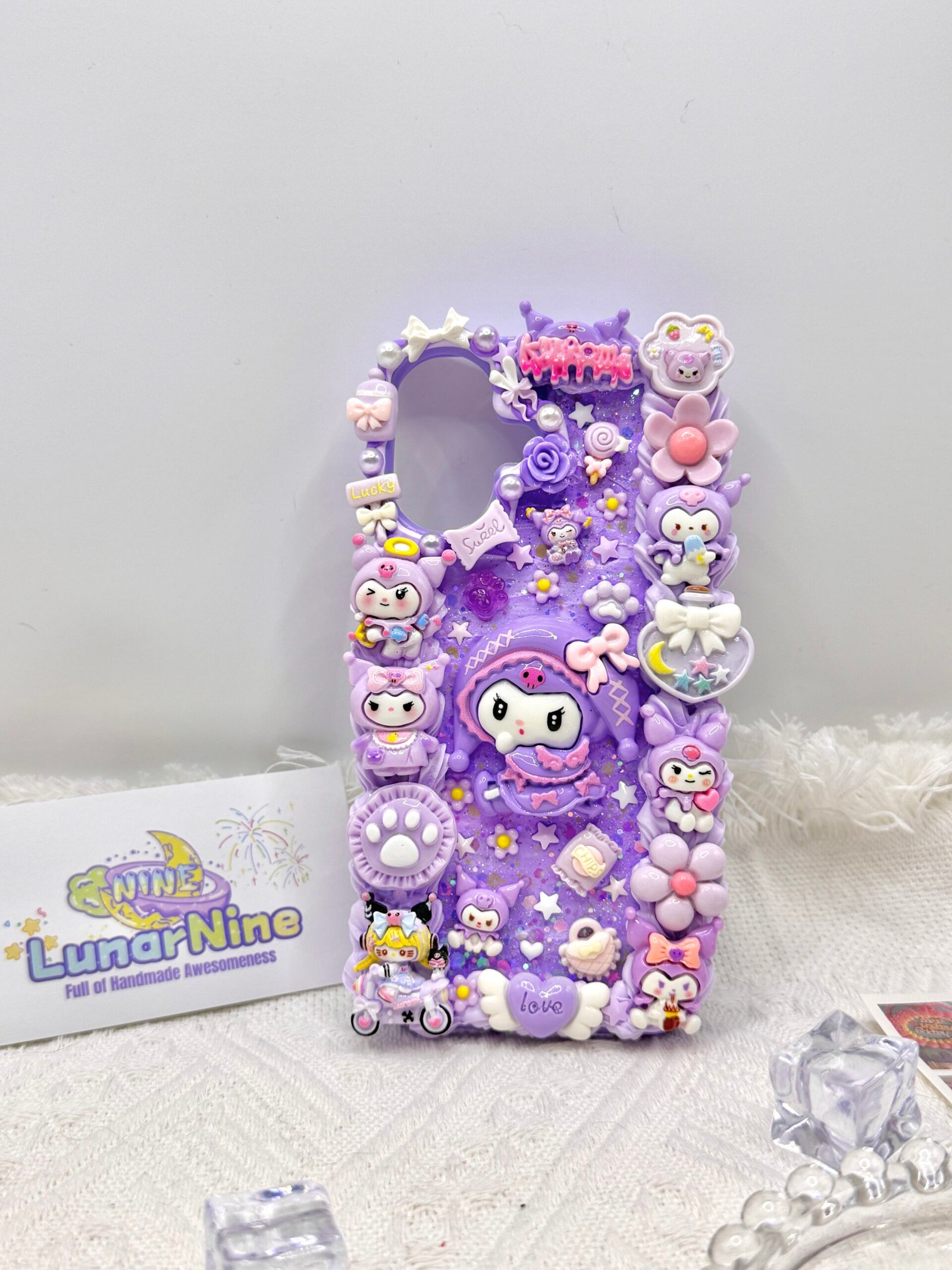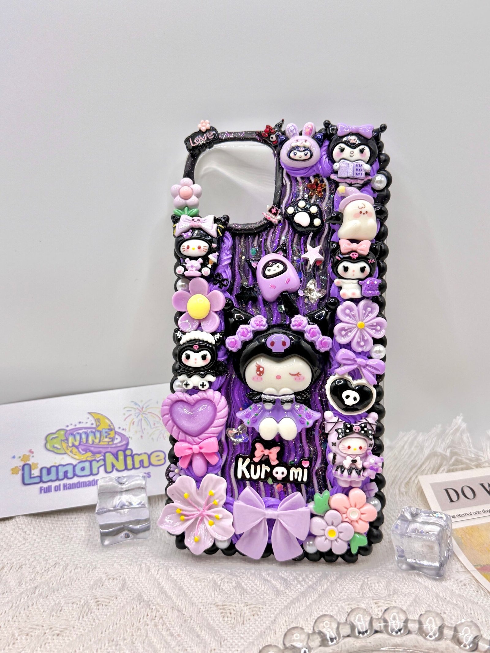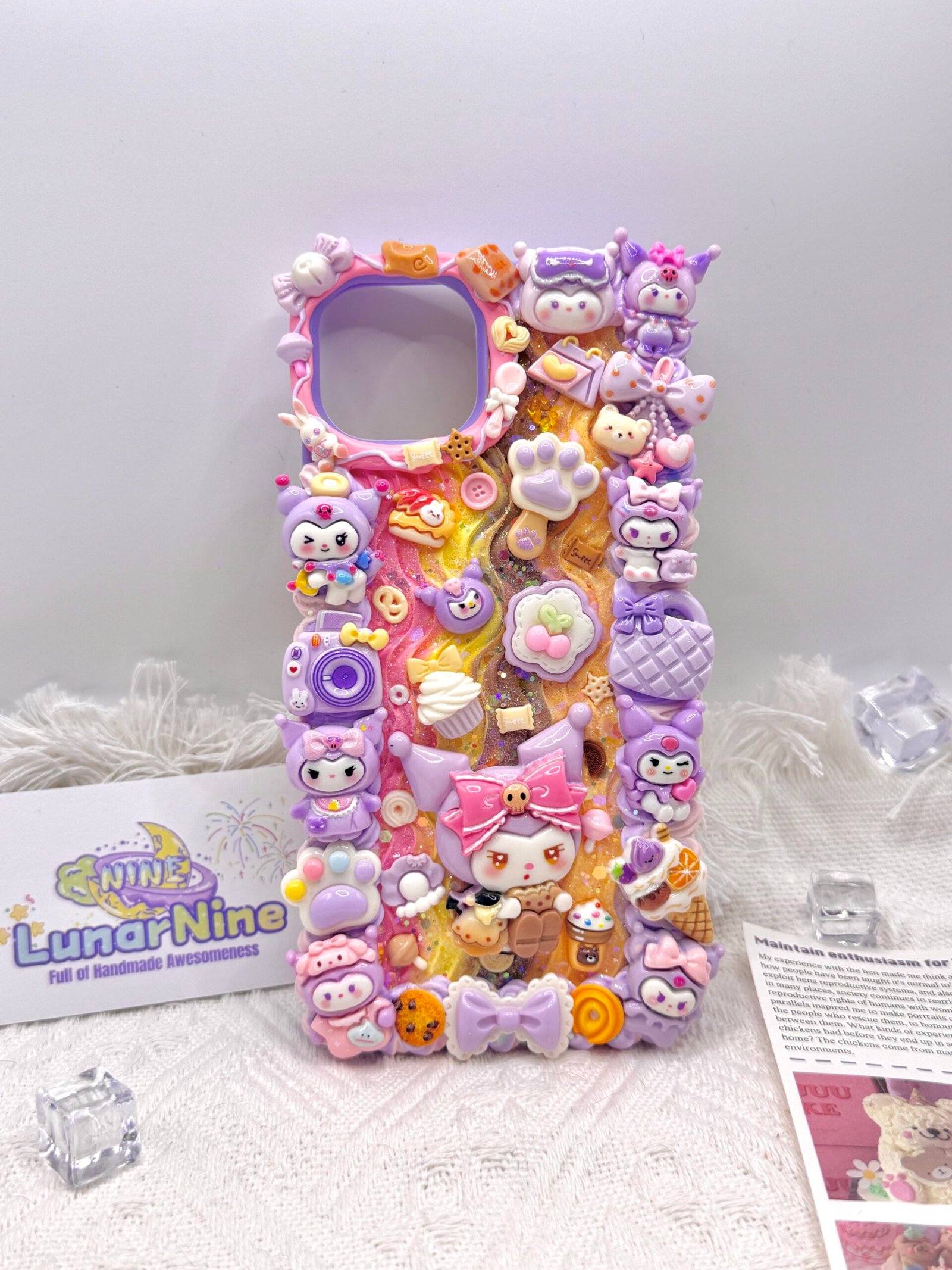 Show off your bold kawaii style with this Decoden Kuromi Phone Case! Each case is handmade with fluffy cream glue, sparkly accents, gothic-cute charms, and Kuromi details for the perfect mix of sweet and sassy.