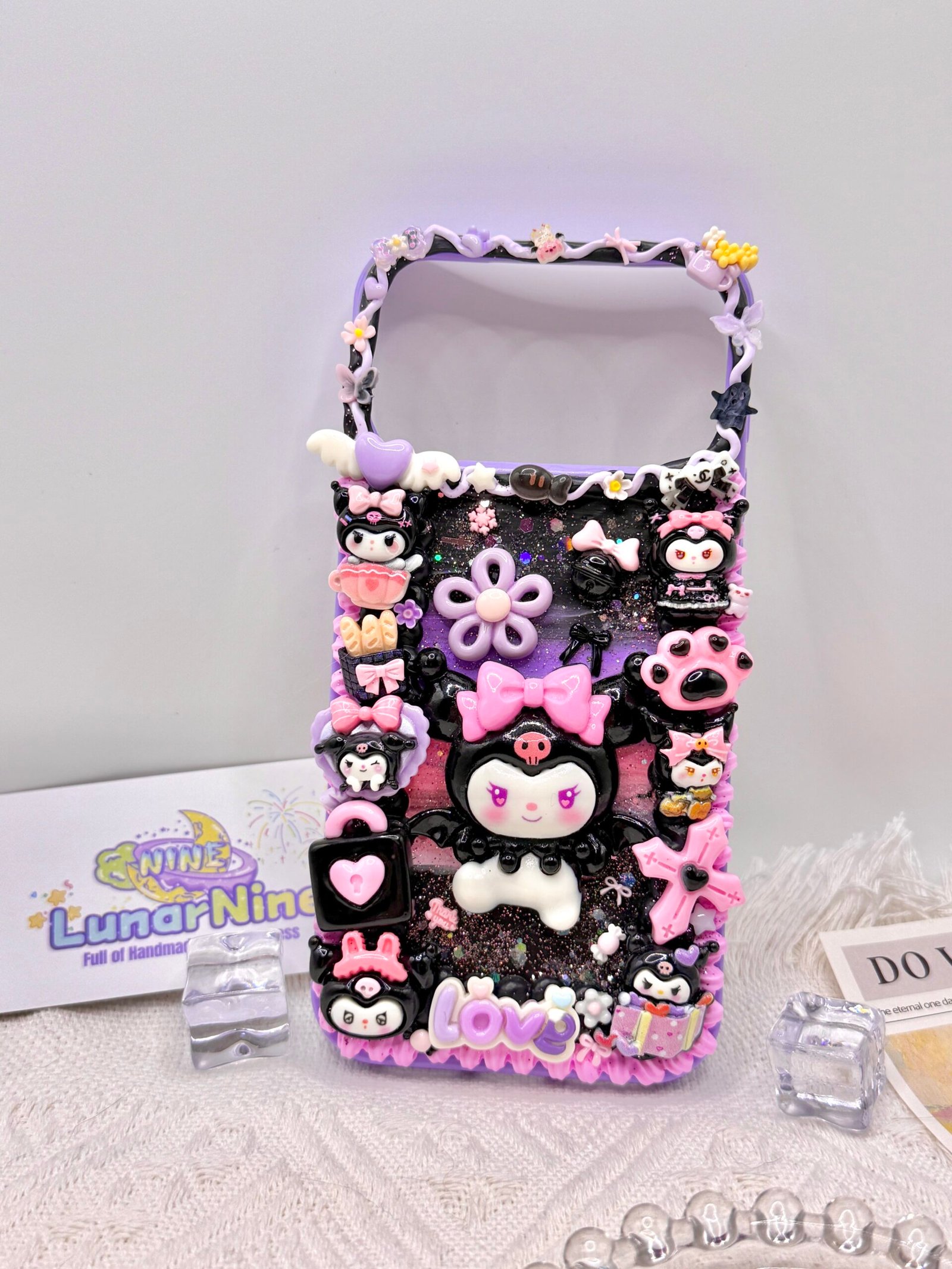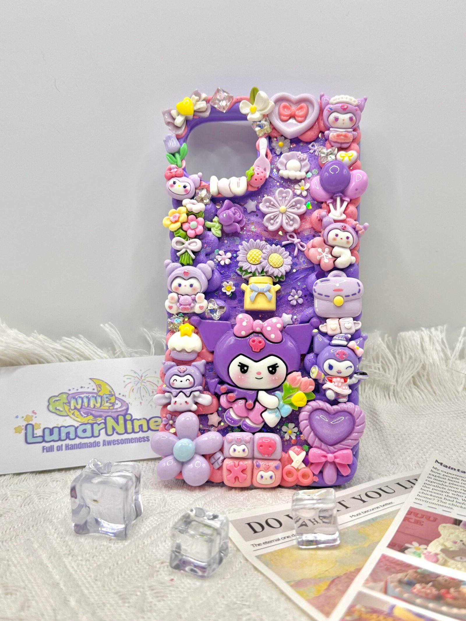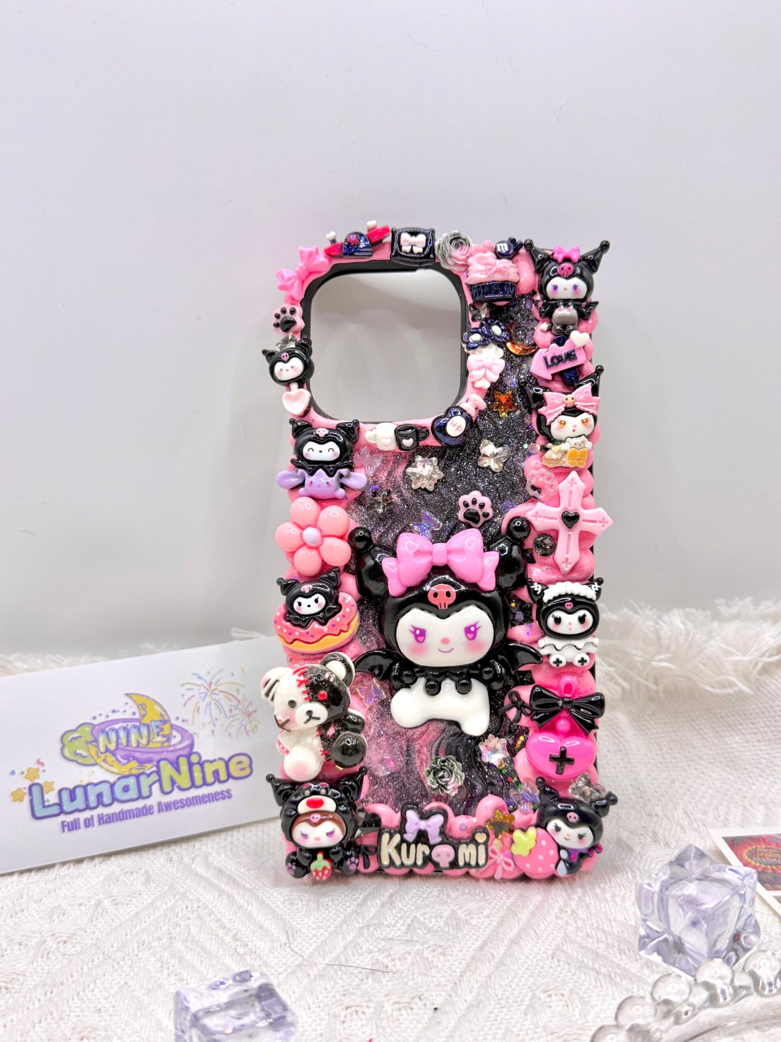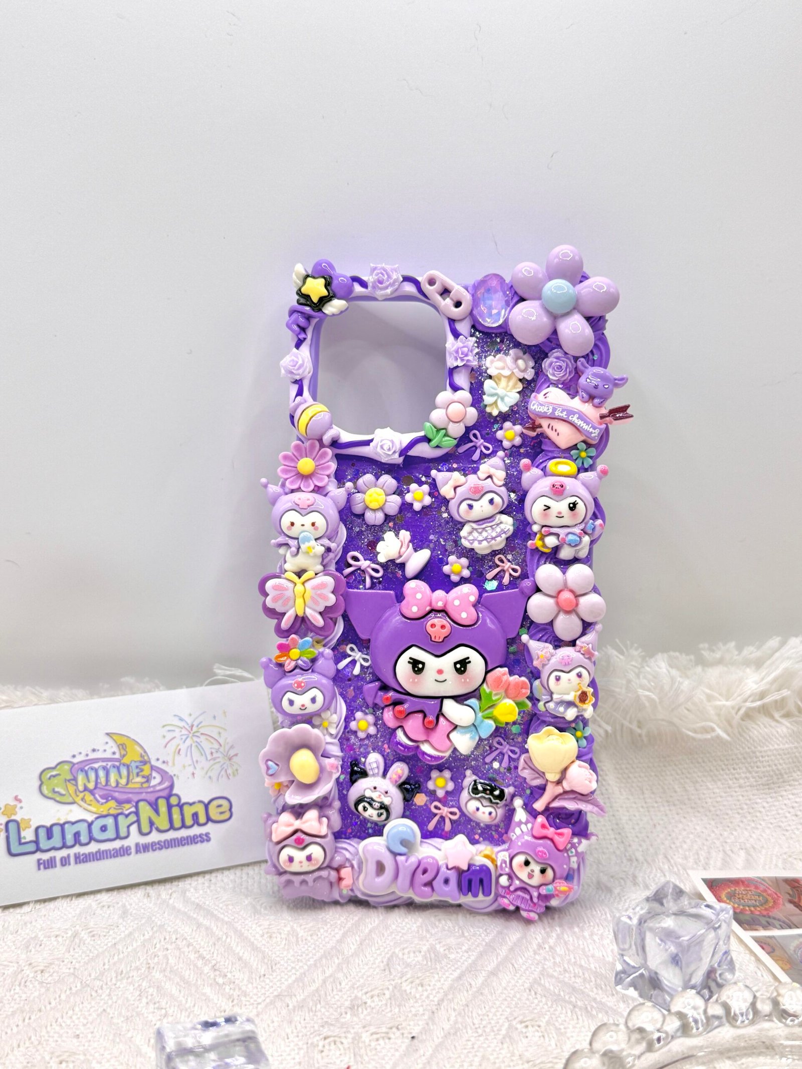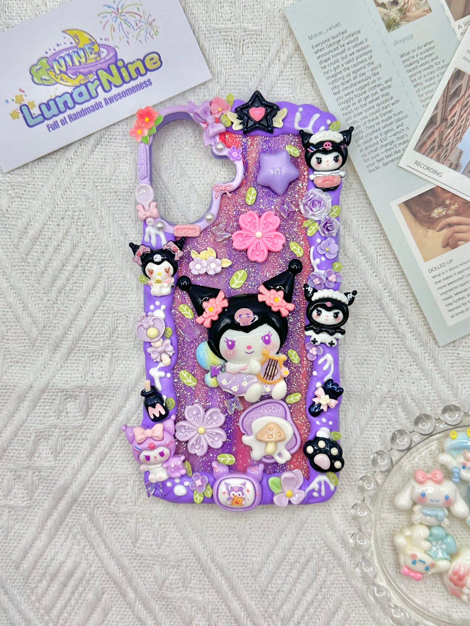Show off your bold kawaii style with this Decoden Kuromi Phone Case! Each case is handmade with fluffy cream glue, sparkly accents, gothic-cute charms, and Kuromi details for the perfect mix of sweet and sassy.