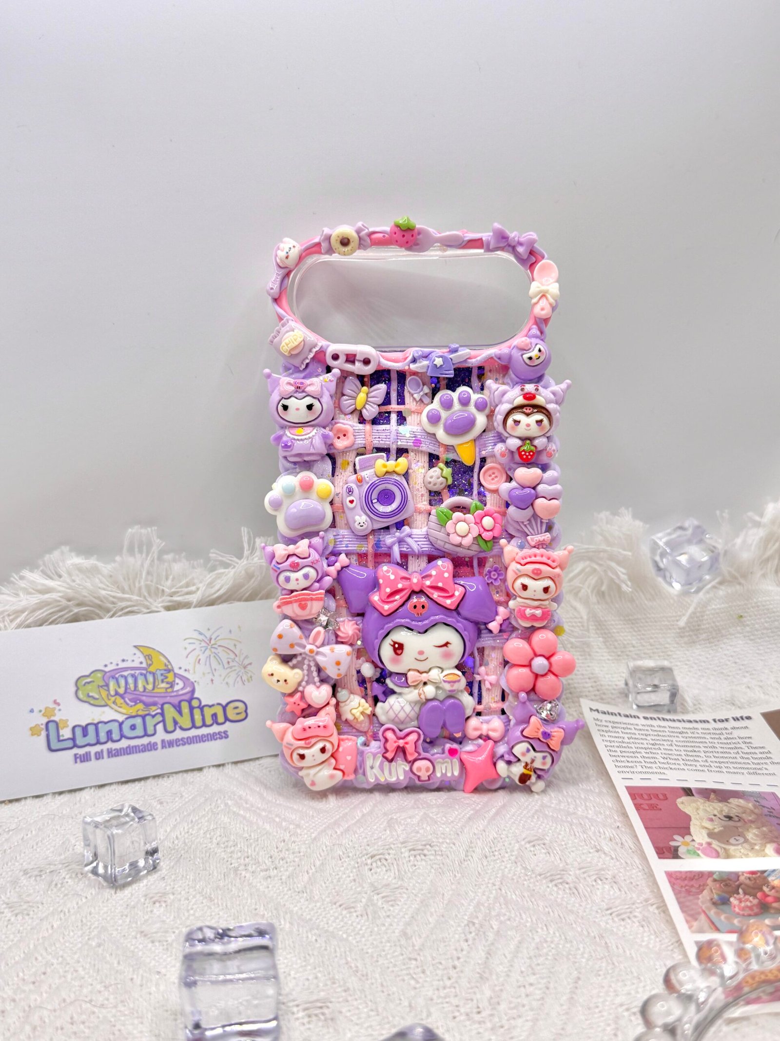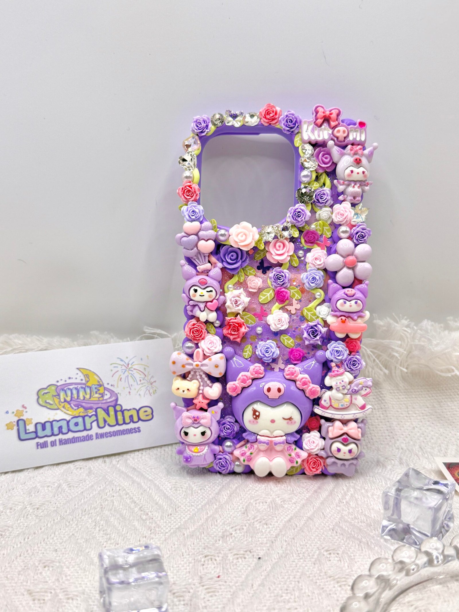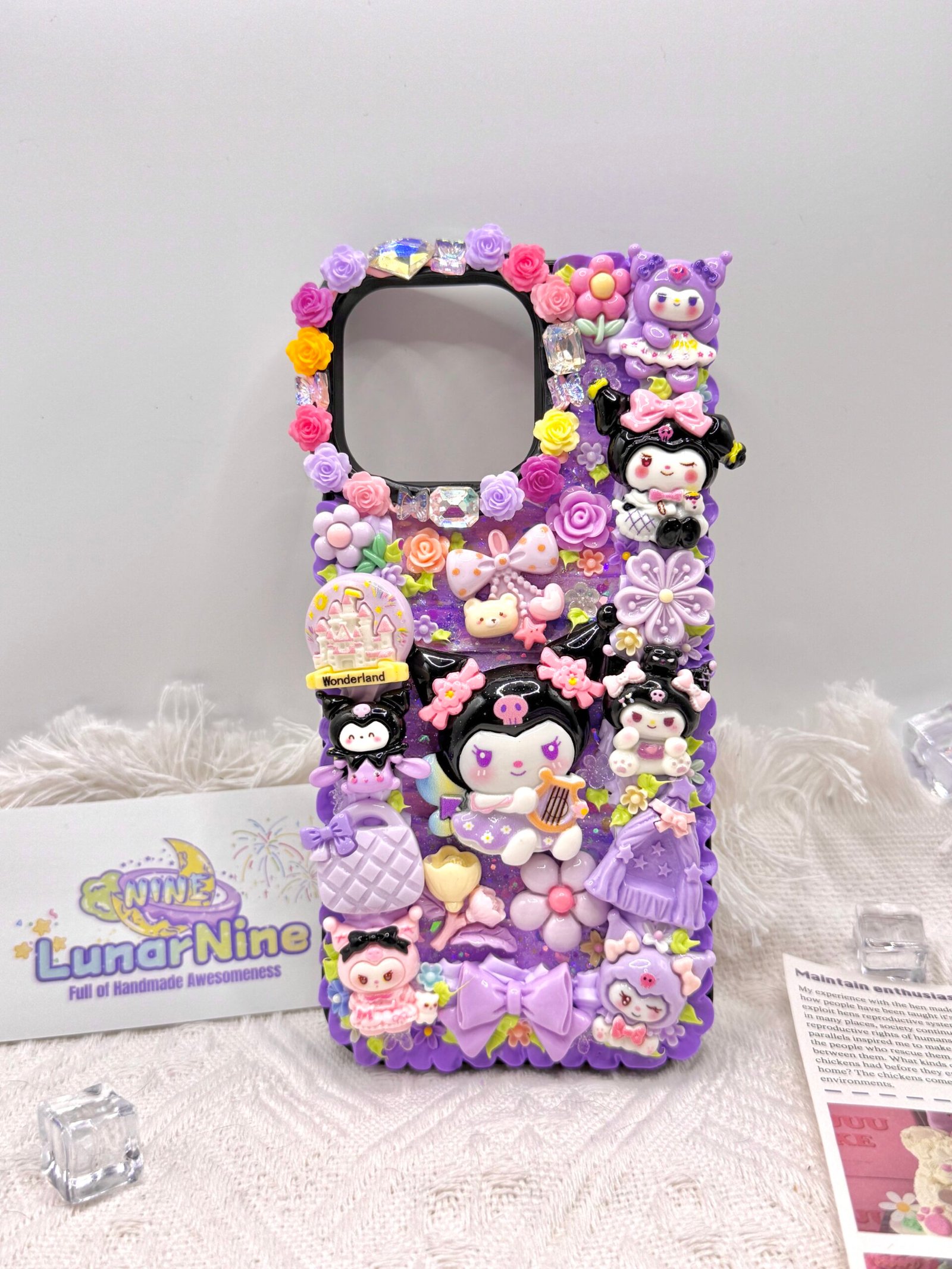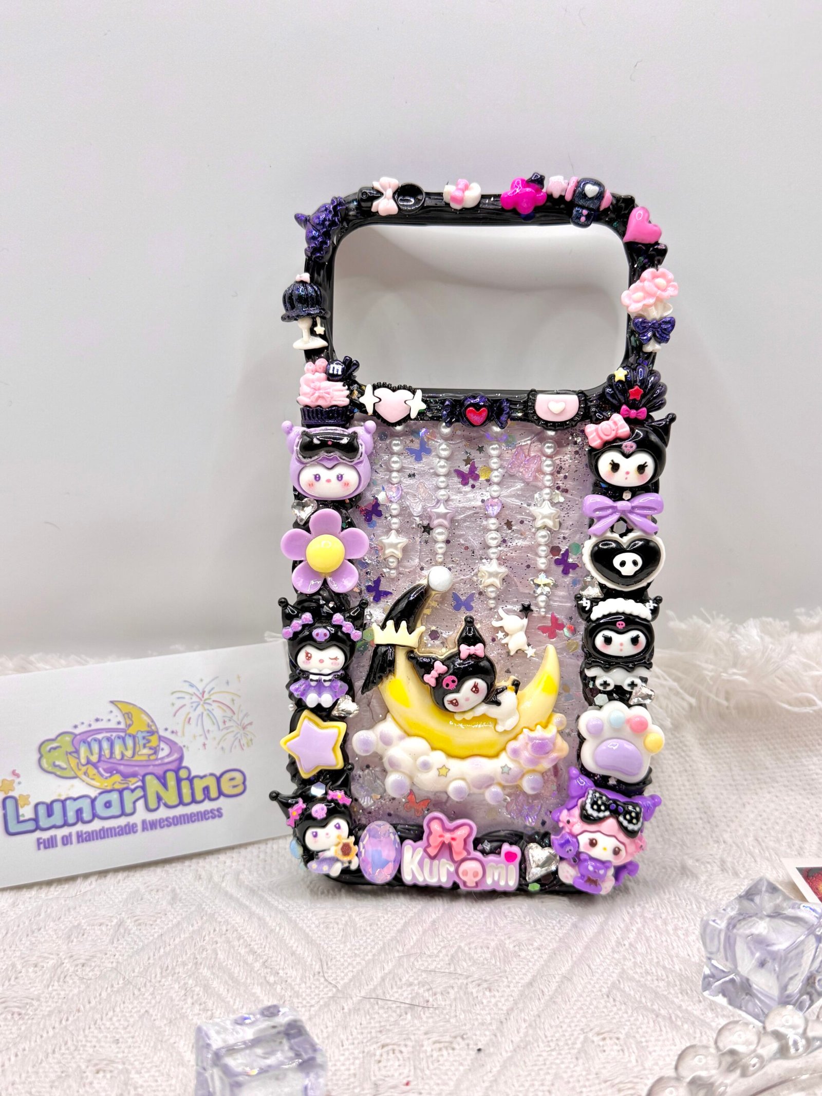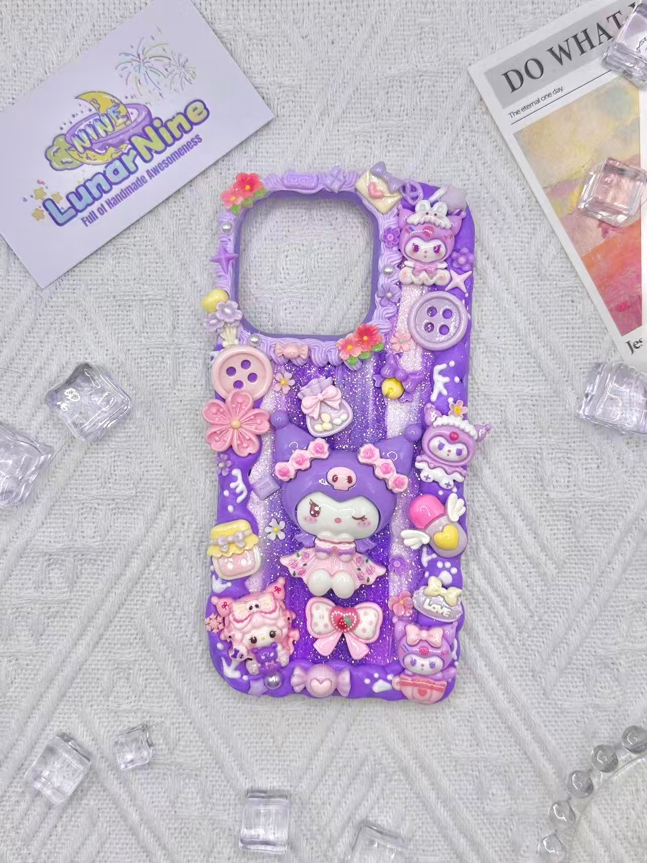 Show off your bold kawaii style with this Decoden Kuromi Phone Case! Each case is handmade with fluffy cream glue, sparkly accents, gothic-cute charms, and Kuromi details for the perfect mix of sweet and sassy.