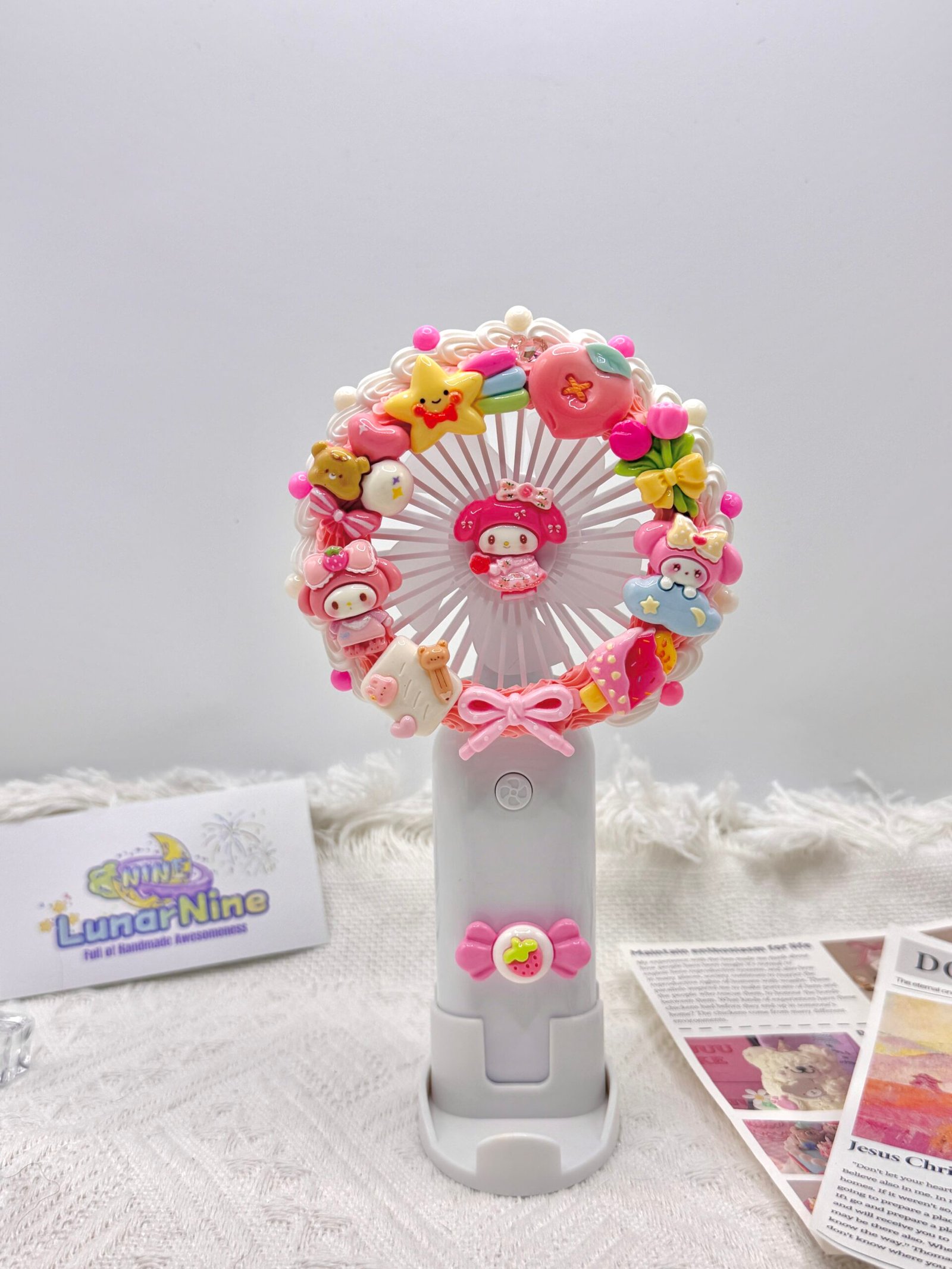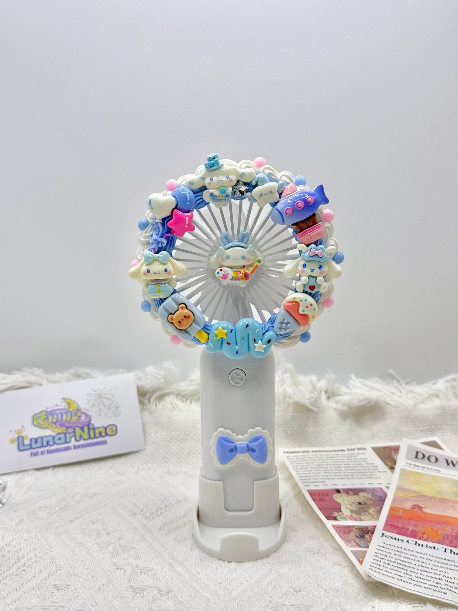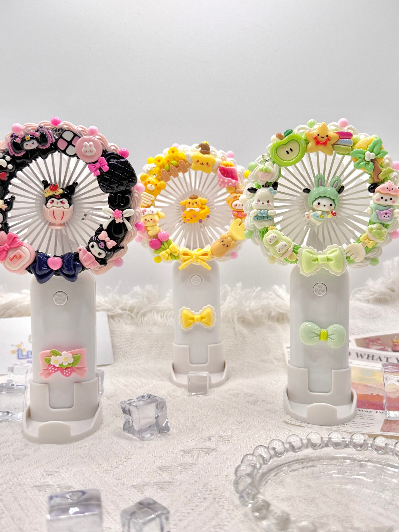 Hand-decorated with fluffy cream glue, shimmering rhinestones, and adorable pastel charms, this fan is as stylish as it is practical. With three adjustable wind settings and a rechargeable battery, it keeps you feeling fresh and fabulous wherever you go!