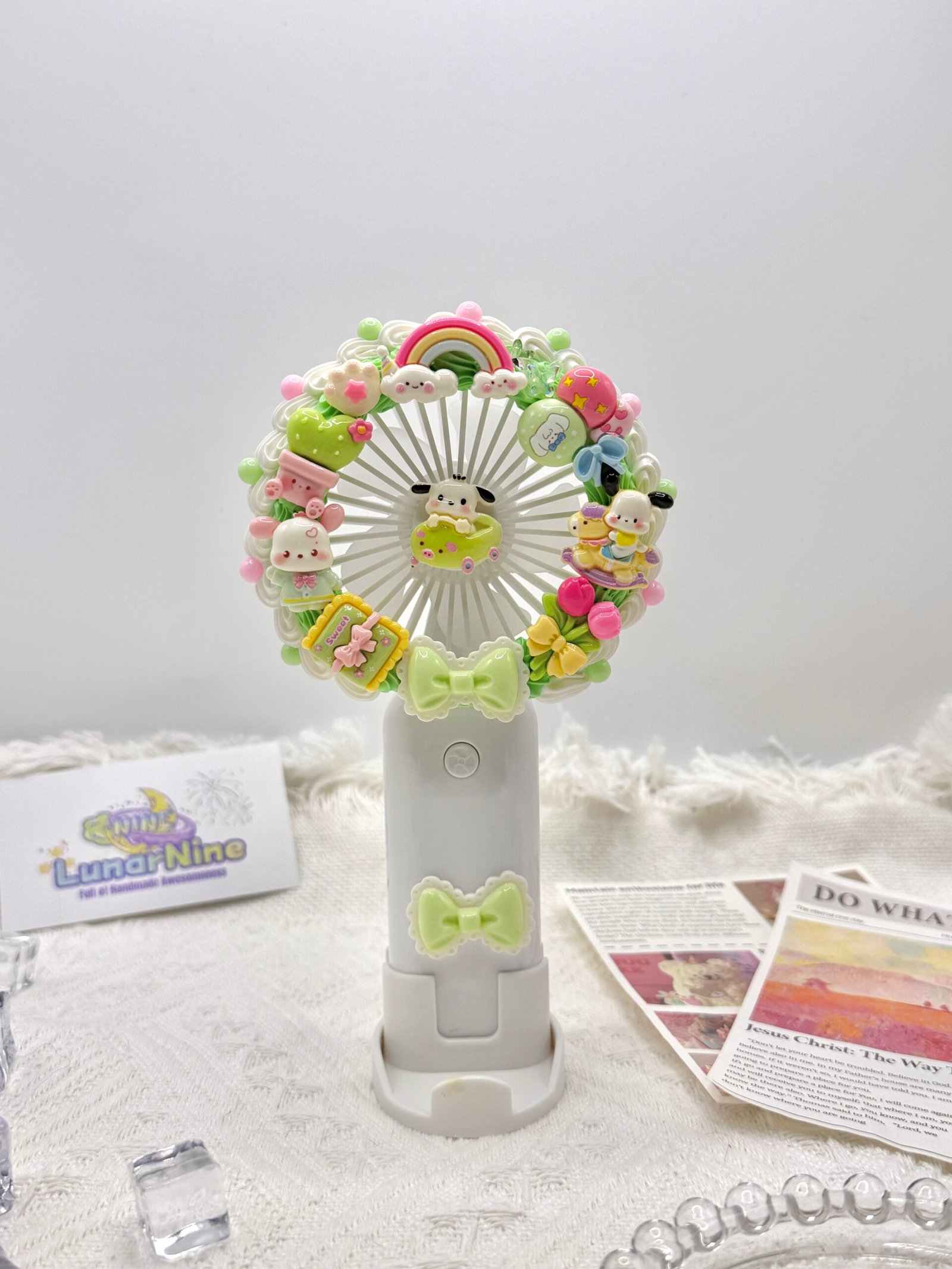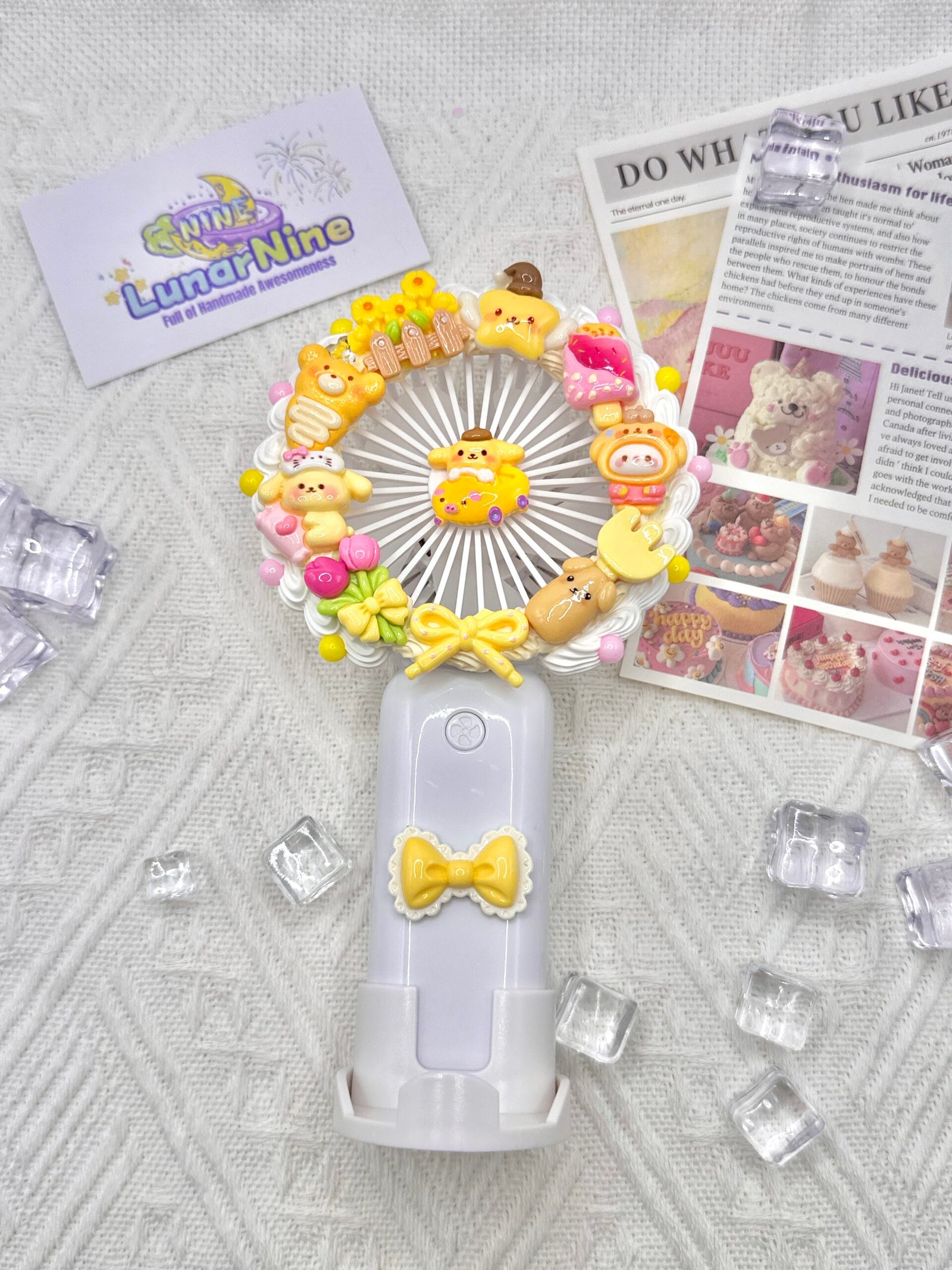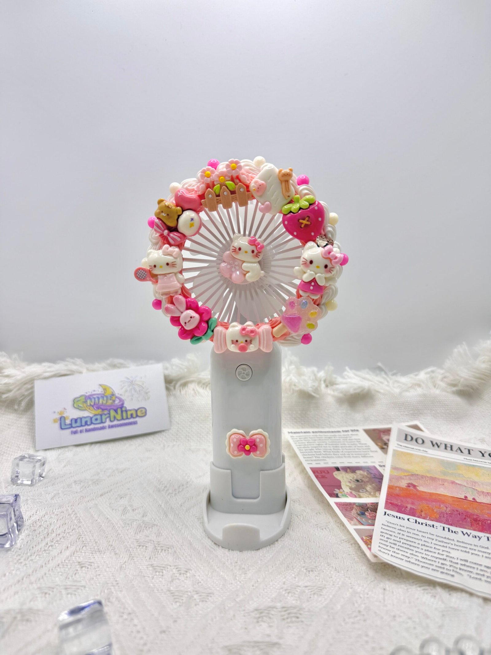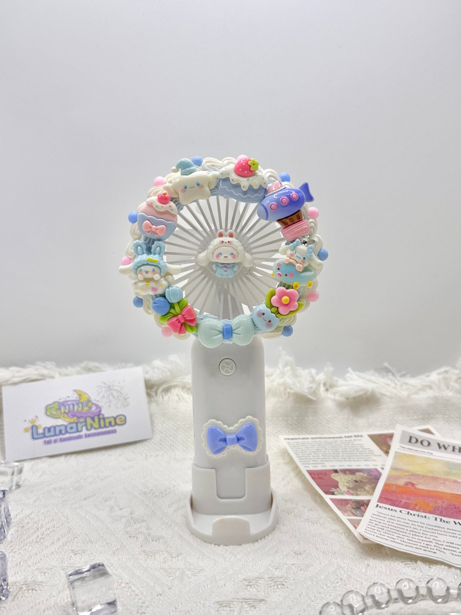 Hand-decorated with fluffy cream glue, shimmering rhinestones, and adorable pastel charms, this fan is as stylish as it is practical. With three adjustable wind settings and a rechargeable battery, it keeps you feeling fresh and fabulous wherever you go!
