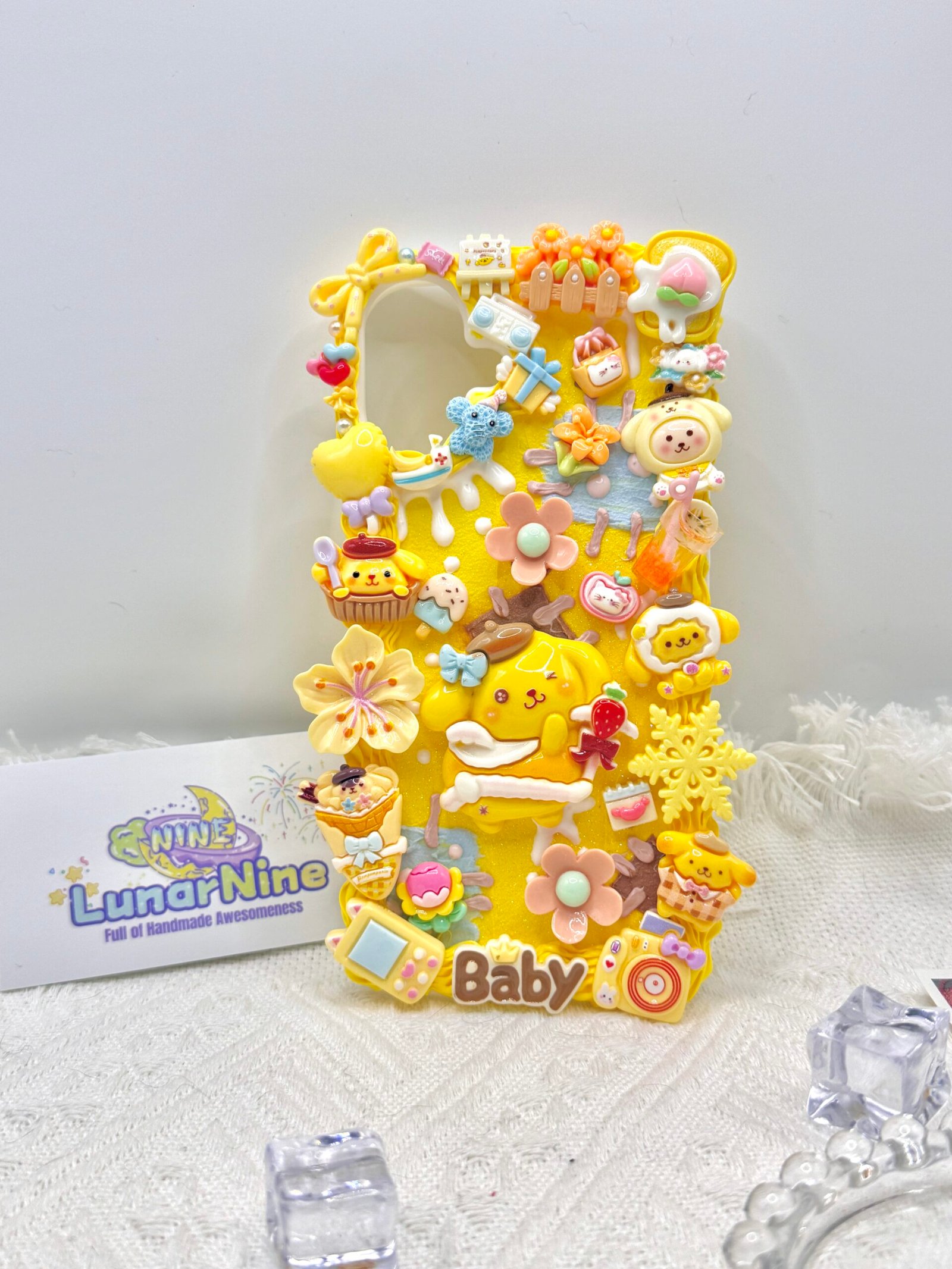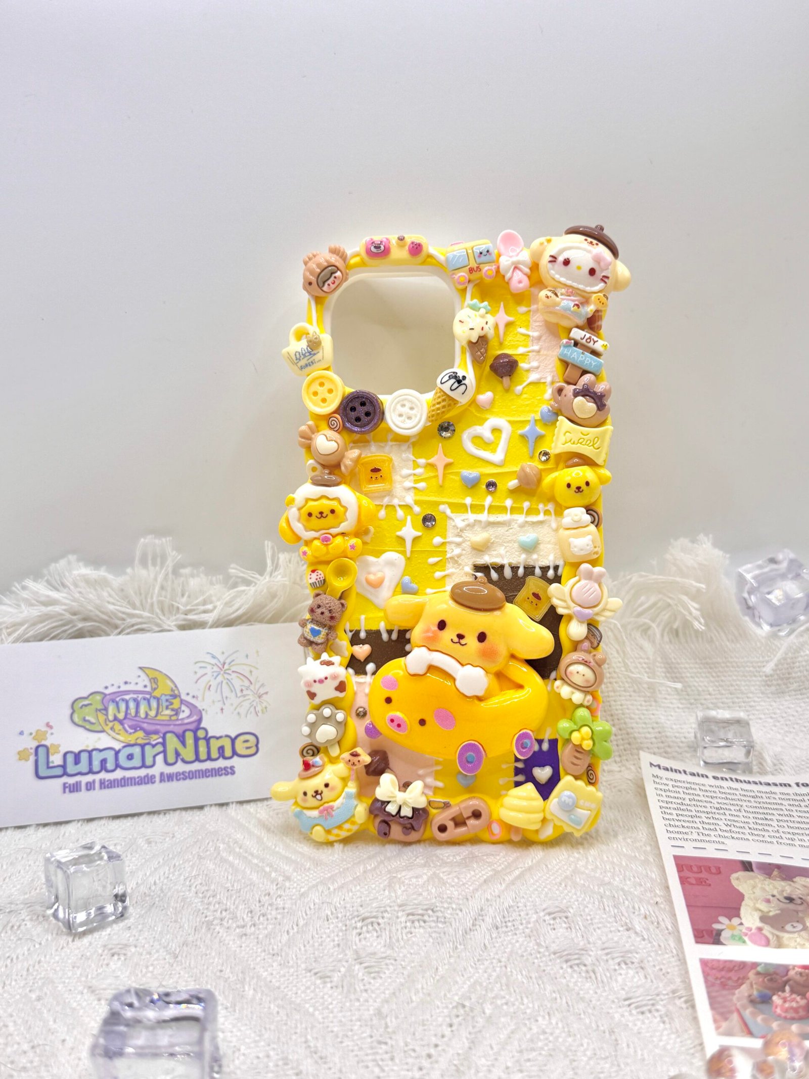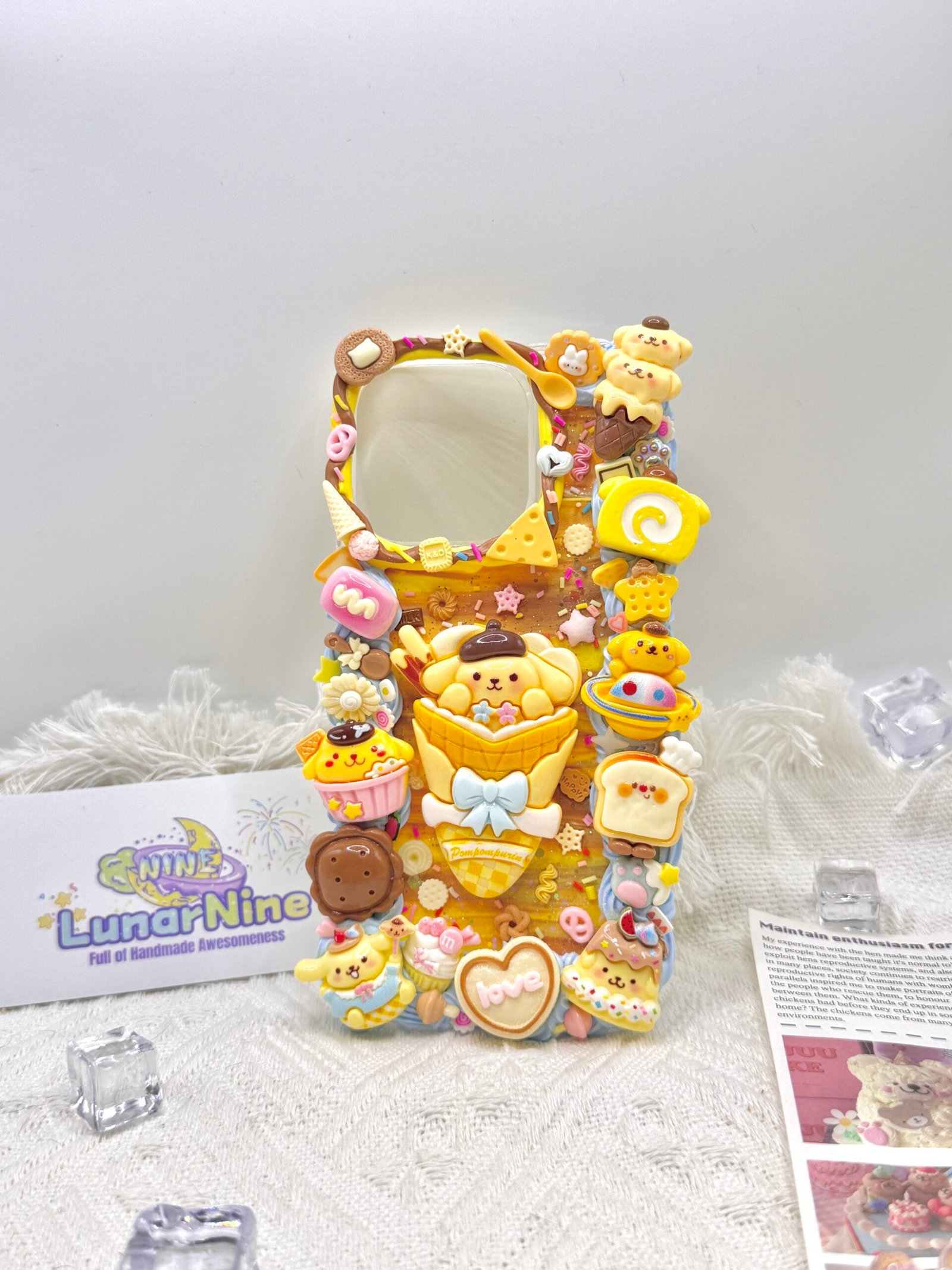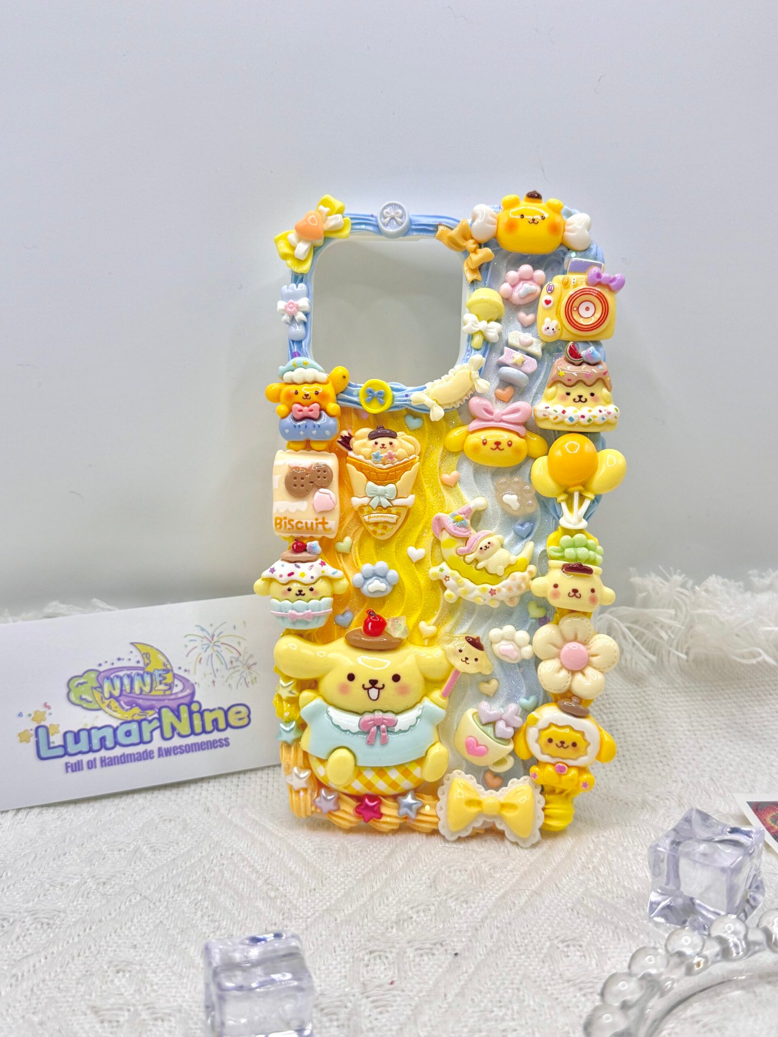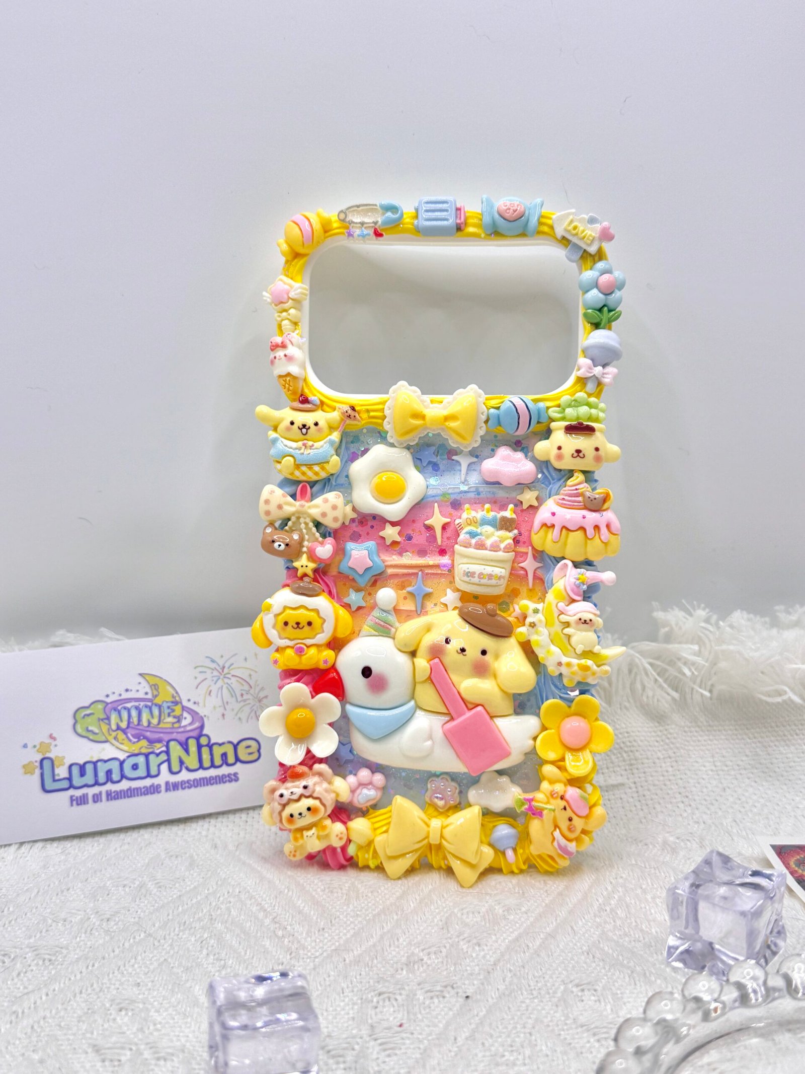 Carry a spoonful of sweetness with this Decoden Pompompurin Phone Case! Each case is handmade with fluffy cream glue, soft pastel colors, sparkly details, and adorable Pompompurin charms for the perfect pudding-themed kawaii look.
