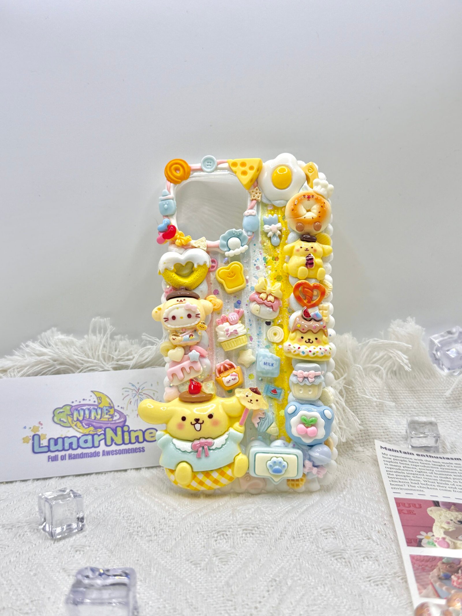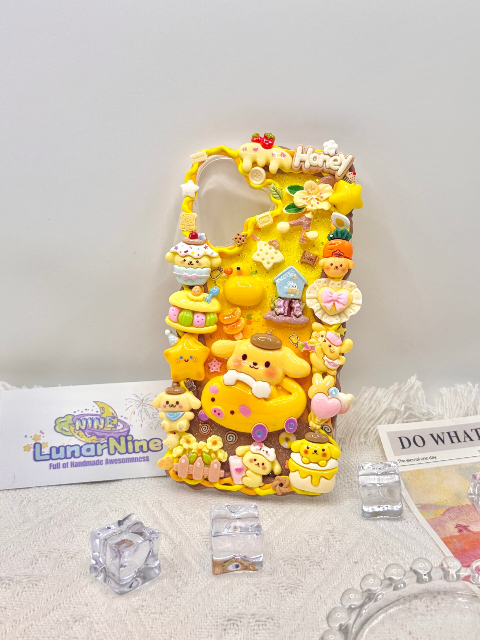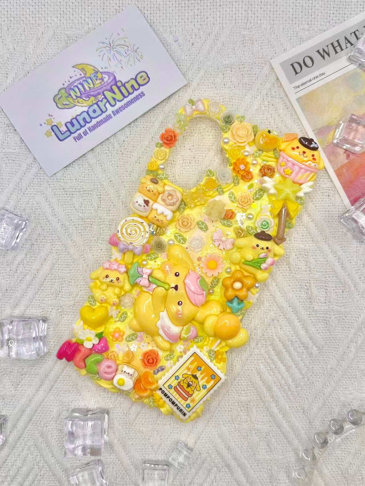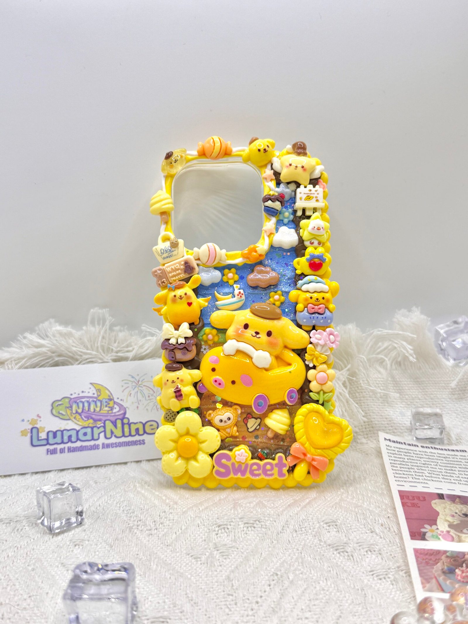 Carry a spoonful of sweetness with this Decoden Pompompurin Phone Case! Each case is handmade with fluffy cream glue, soft pastel colors, sparkly details, and adorable Pompompurin charms for the perfect pudding-themed kawaii look.