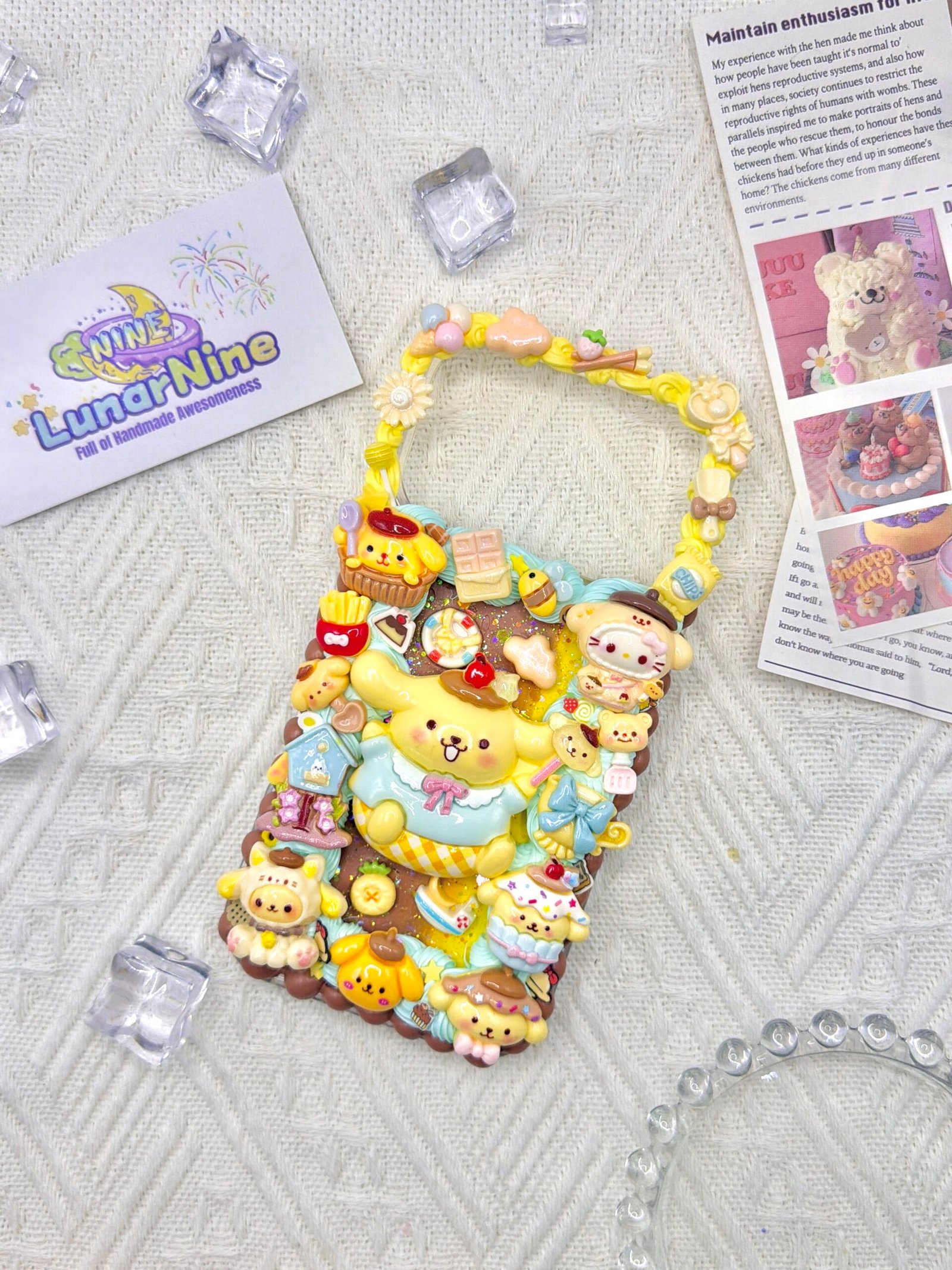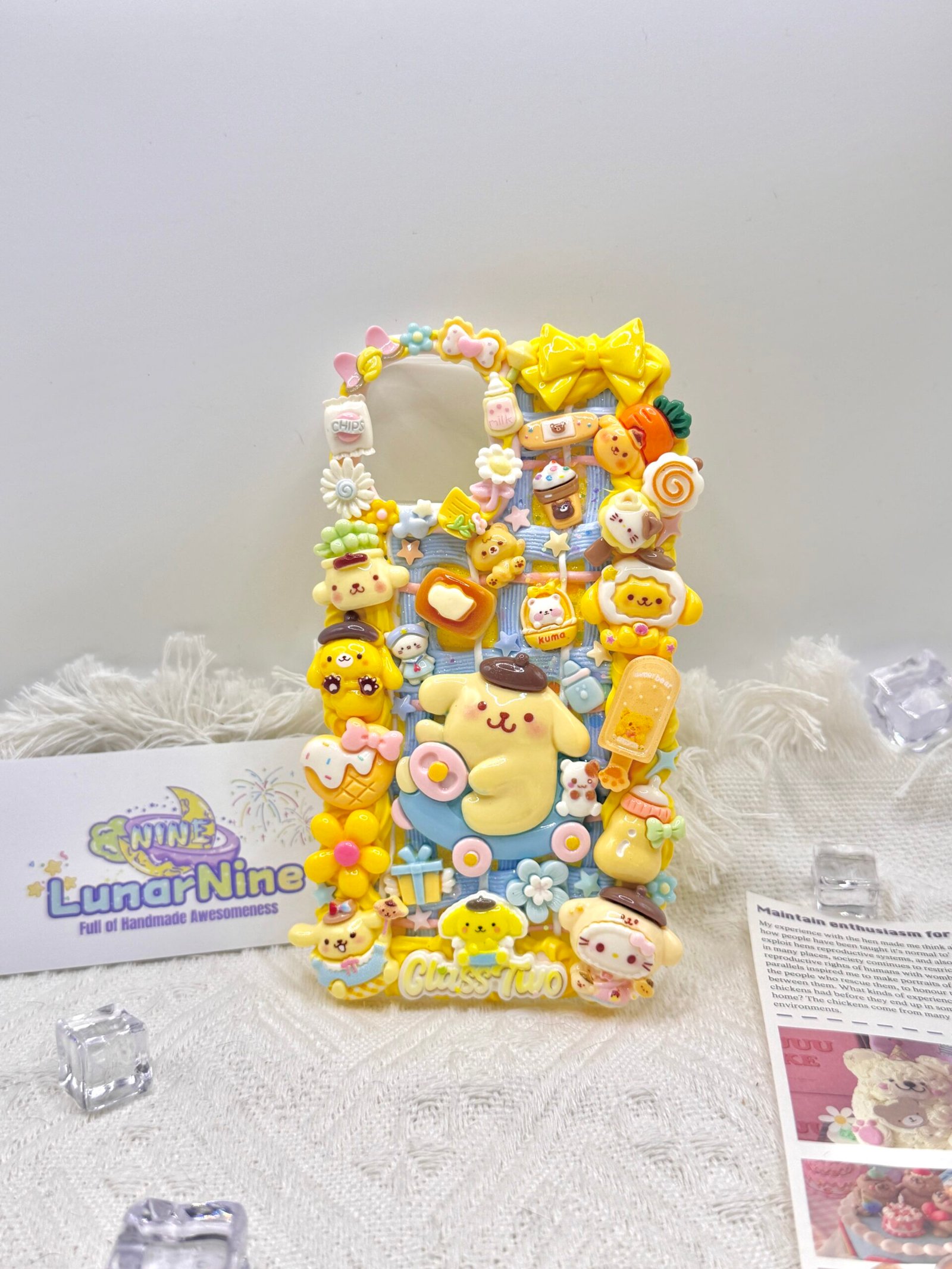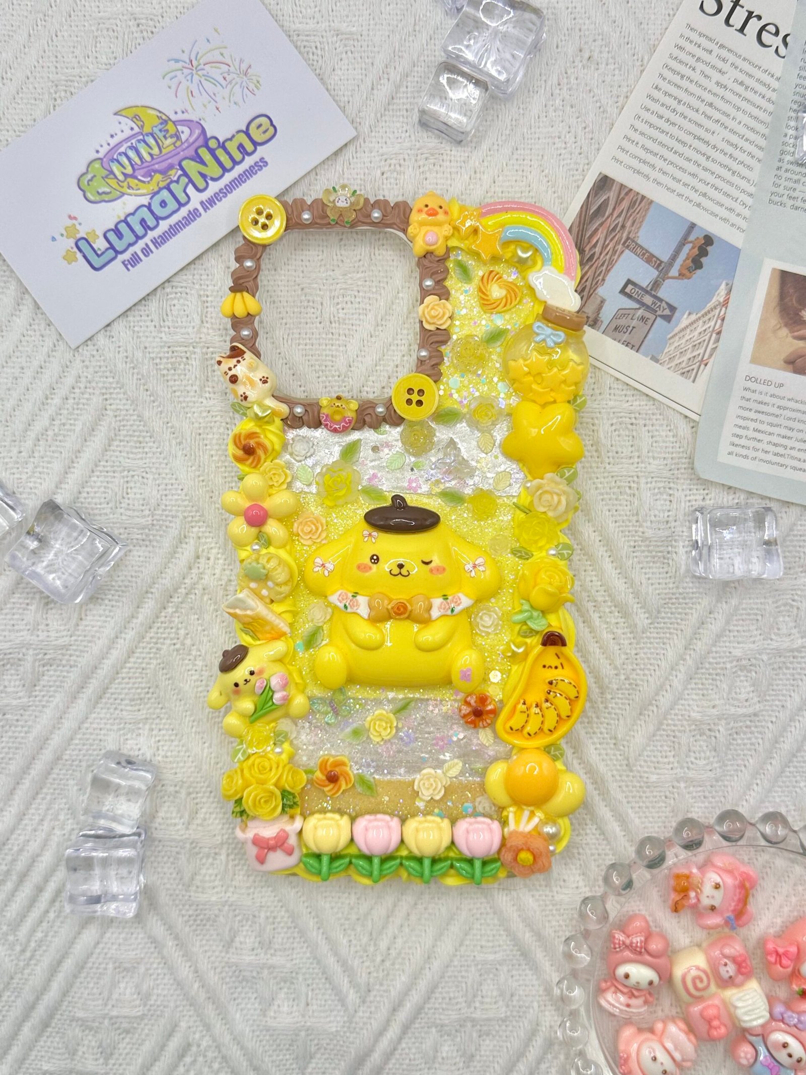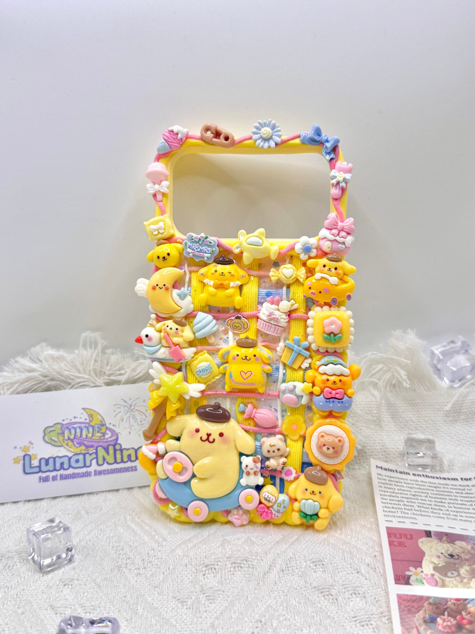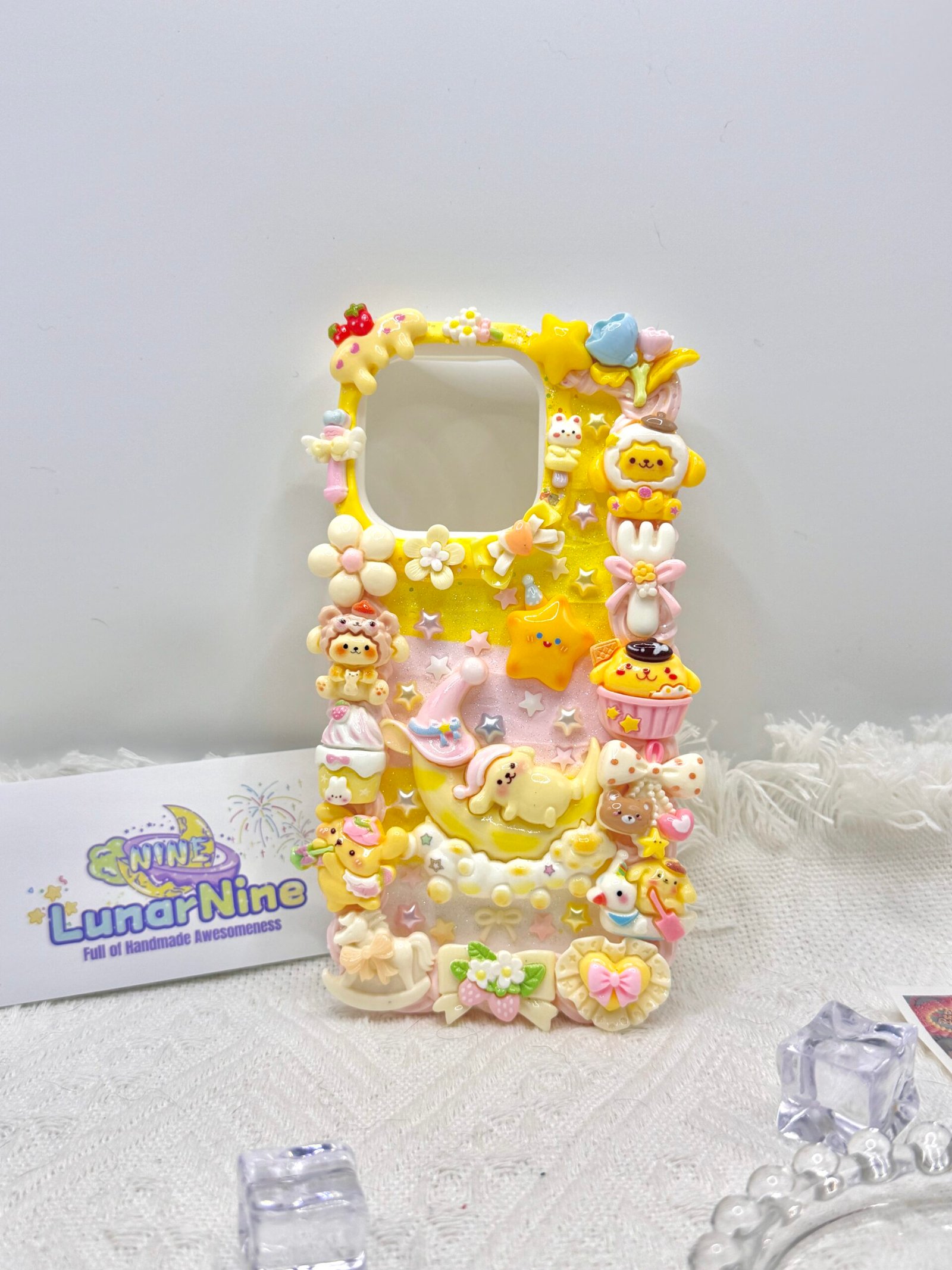 Carry a spoonful of sweetness with this Decoden Pompompurin Phone Case! Each case is handmade with fluffy cream glue, soft pastel colors, sparkly details, and adorable Pompompurin charms for the perfect pudding-themed kawaii look.