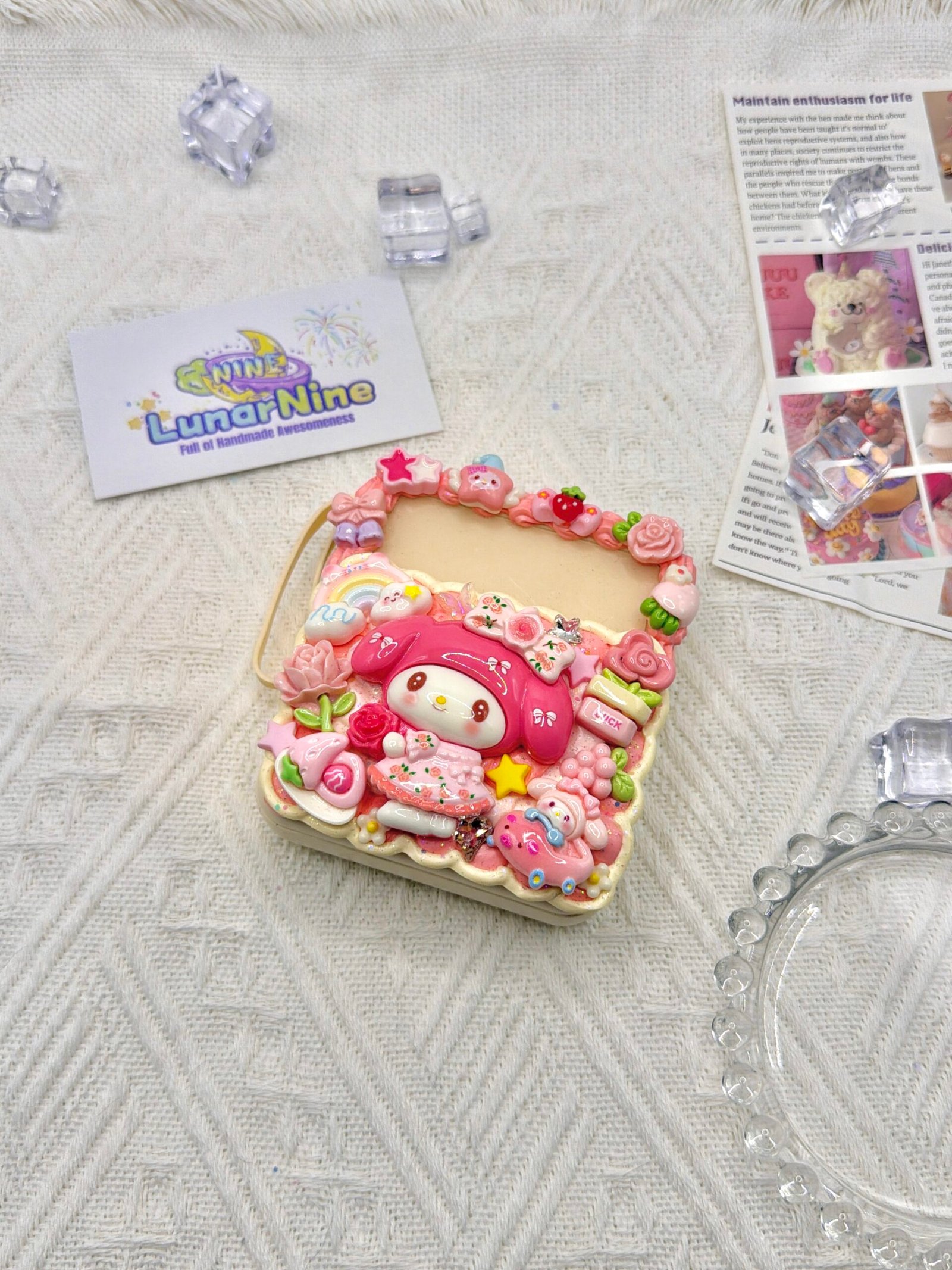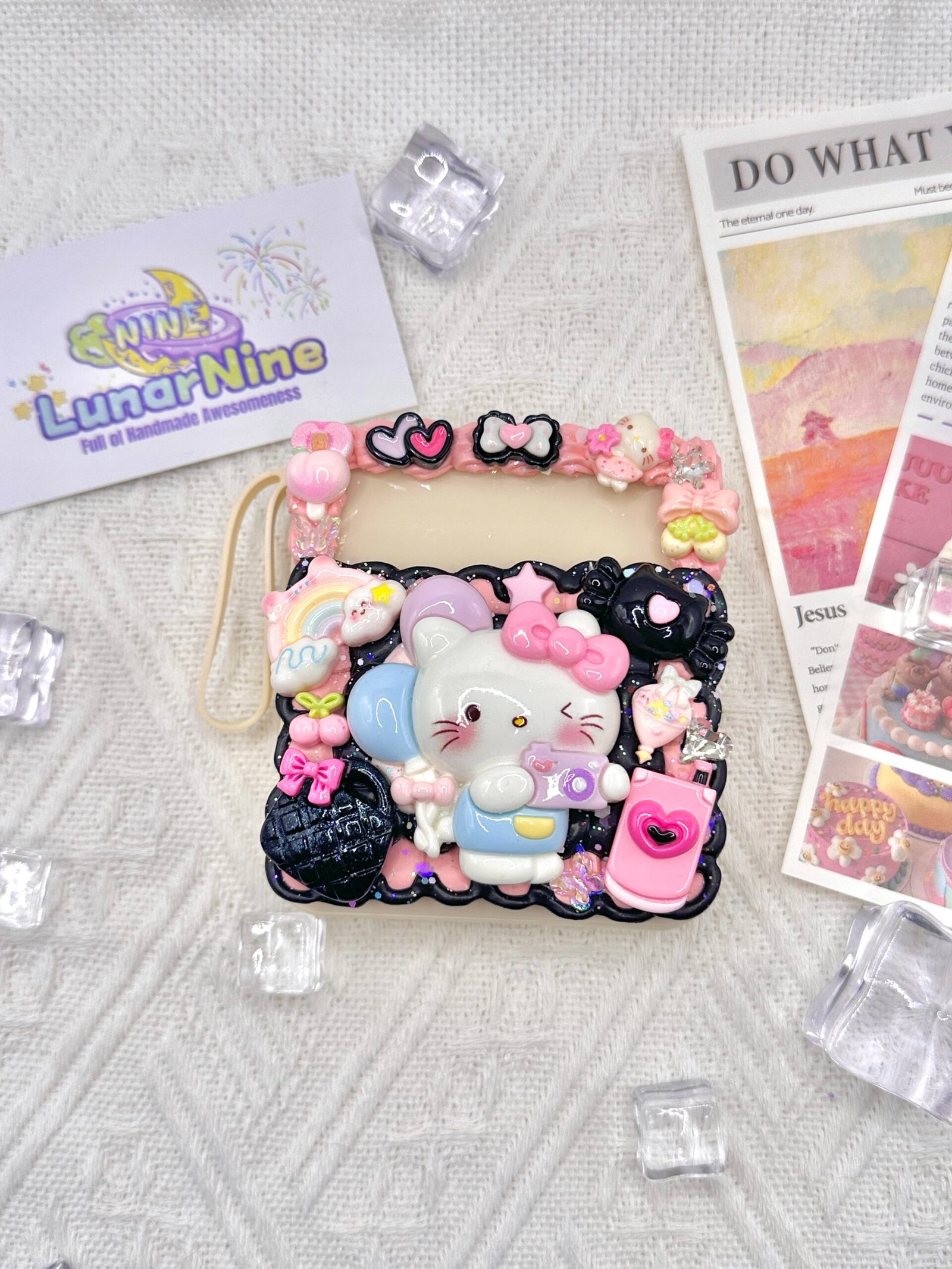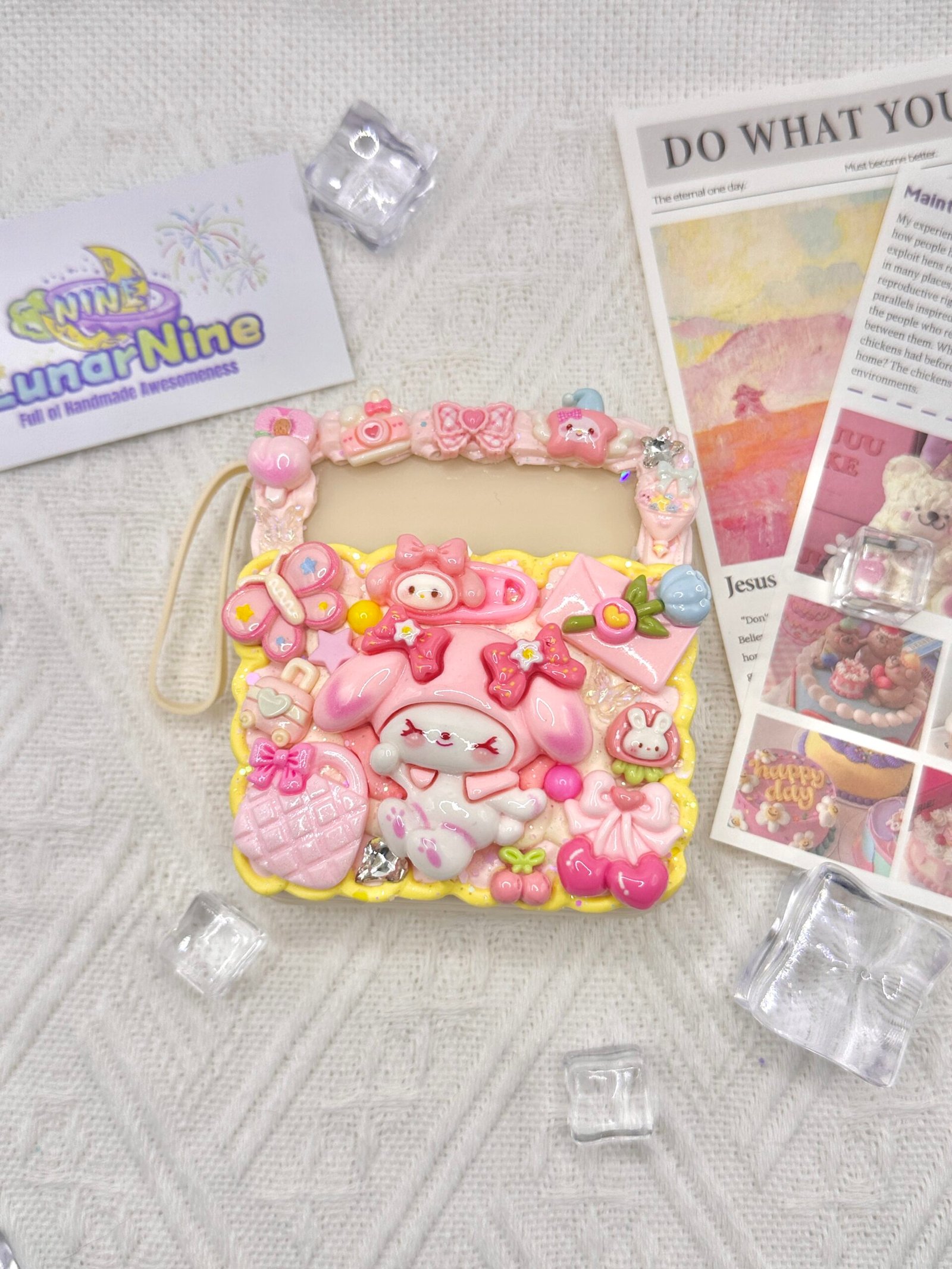 🎀 Hand-decorated with whipped cream glue, glitter charms, and pastel accents