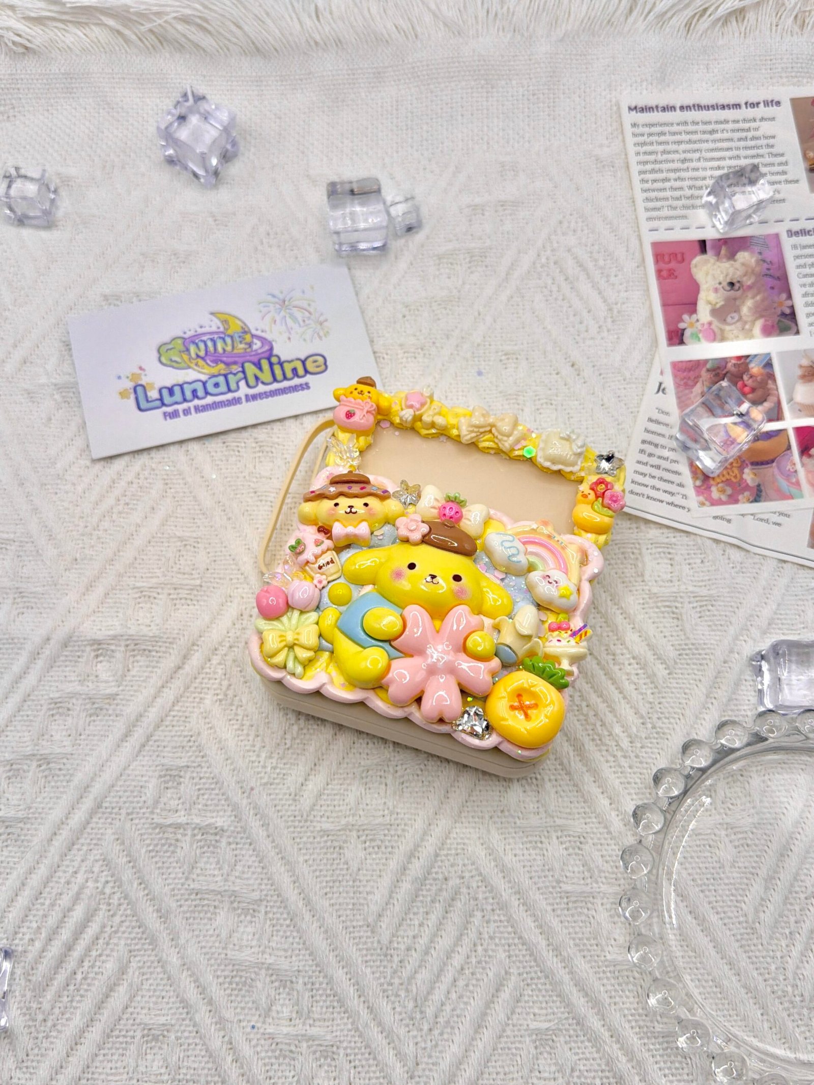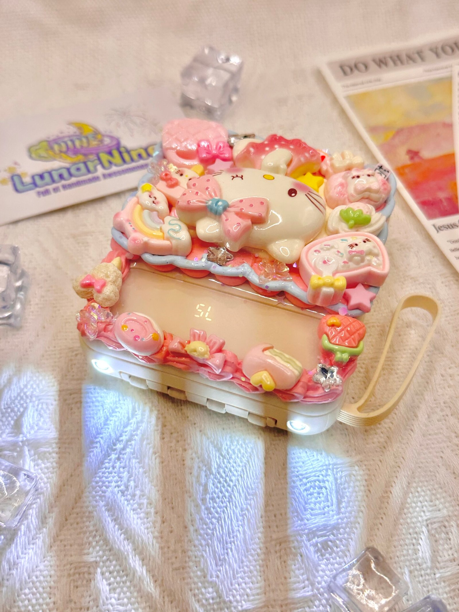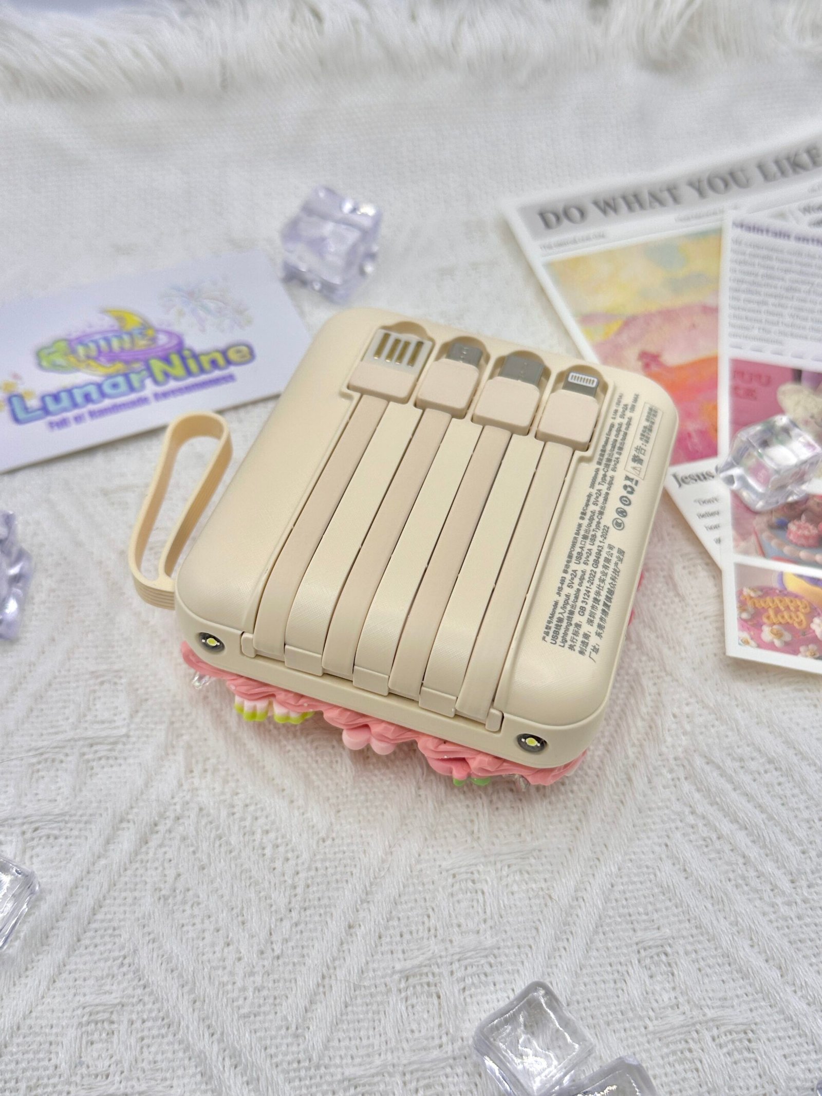 Stay sparkling and fully charged wherever you go with the Decoden Power Bank, where tech meets total cuteness! Hand-decorated with fluffy cream glue, rhinestones, and dreamy pastel charms, this power bank turns every recharge into a moment of joy.