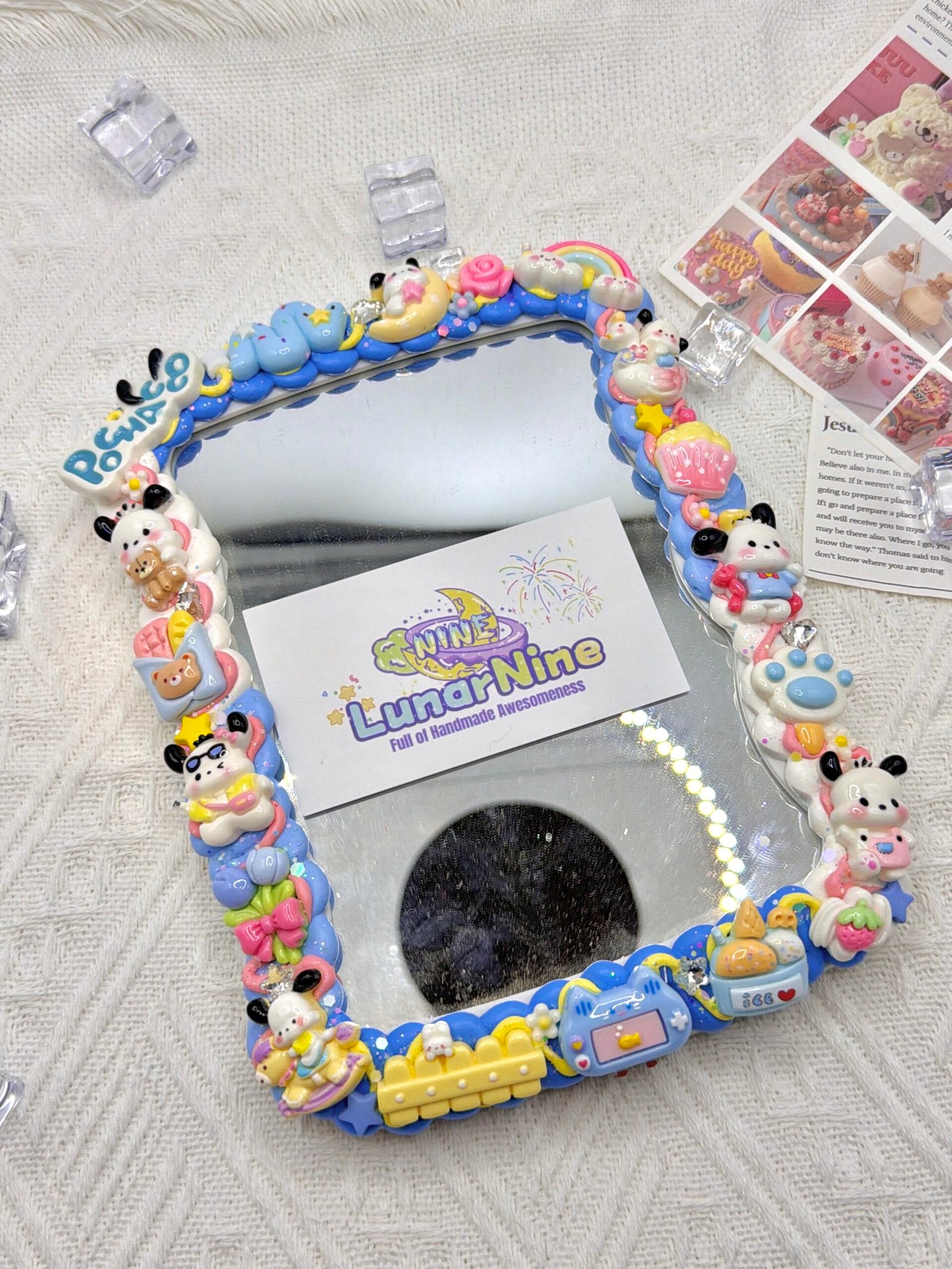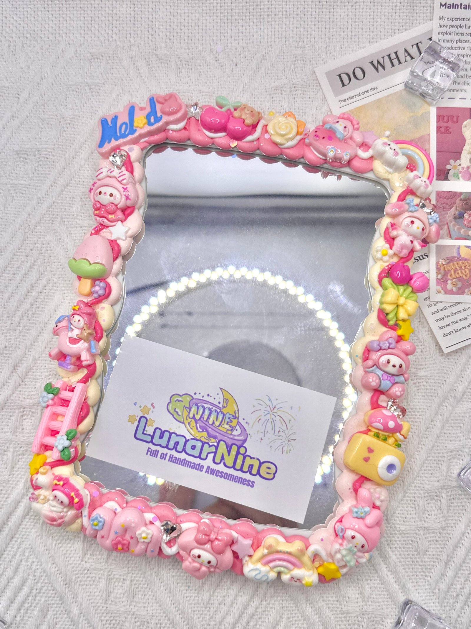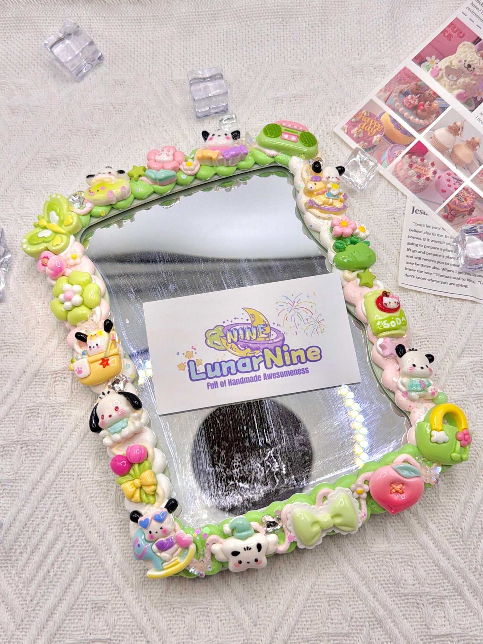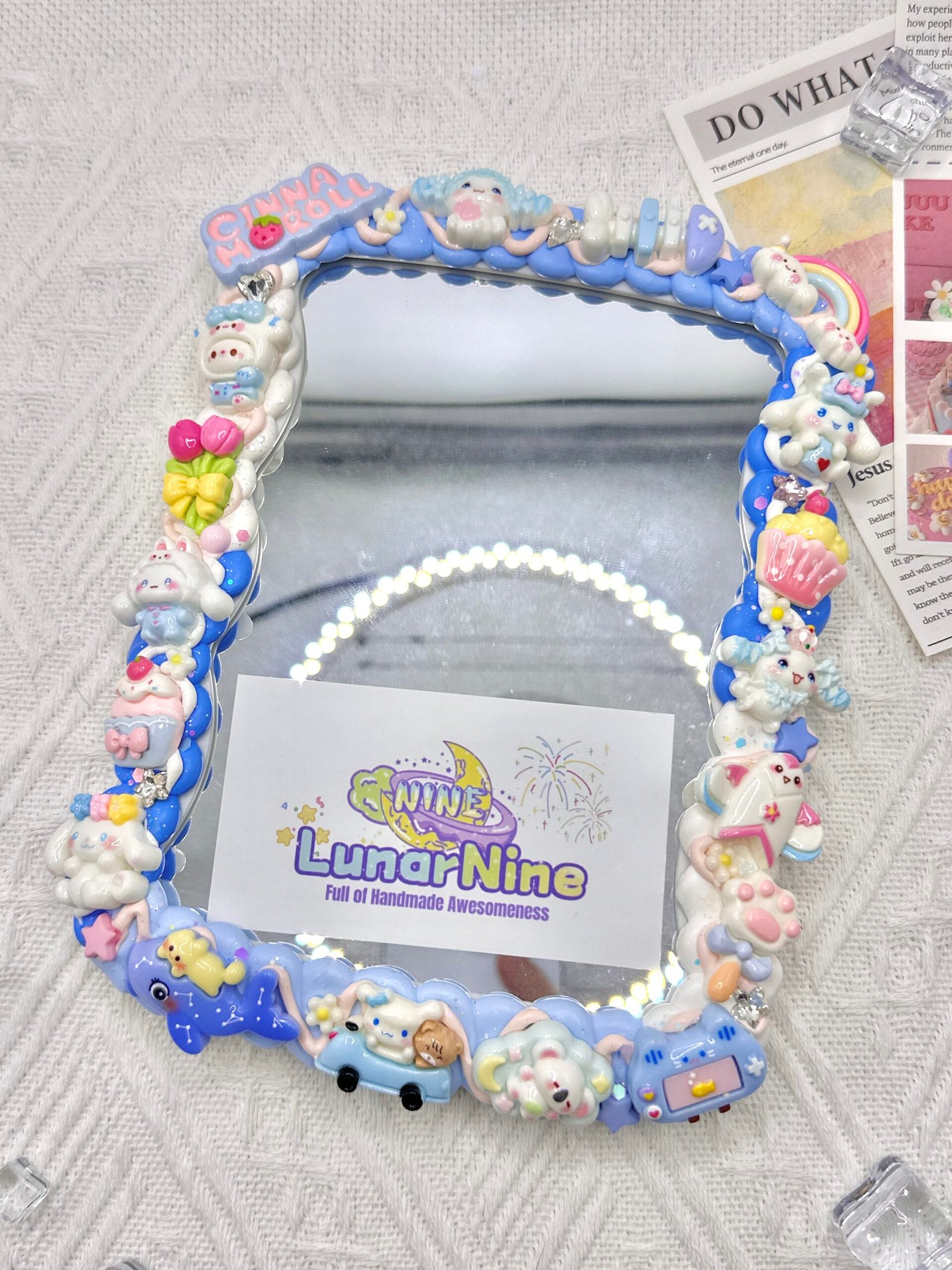 Each piece is lovingly hand-decorated with fluffy cream glue, glittering rhinestones, and dreamy pastel charms — turning an everyday mirror into a work of art. Compact yet eye-catching, it’s perfect for makeup touch-ups, selfies, or simply admiring your sparkle on the go!
