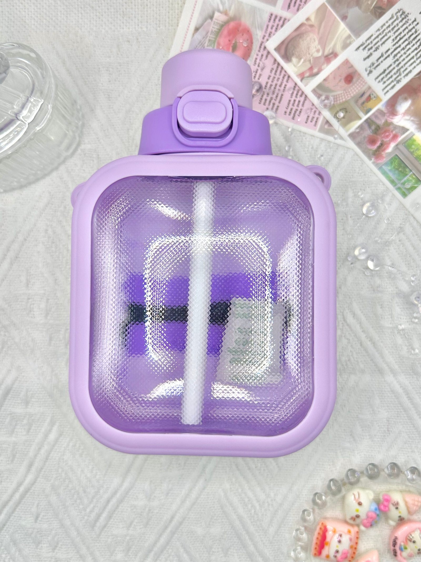 Turn everyday hydration into a cute statement with this Striped Decoden Water Bottle. Featuring a vibrant striped base topped with whipped cream glue and sparkly charms, each piece is uniquely crafted to reflect fun, flair, and your personal style.